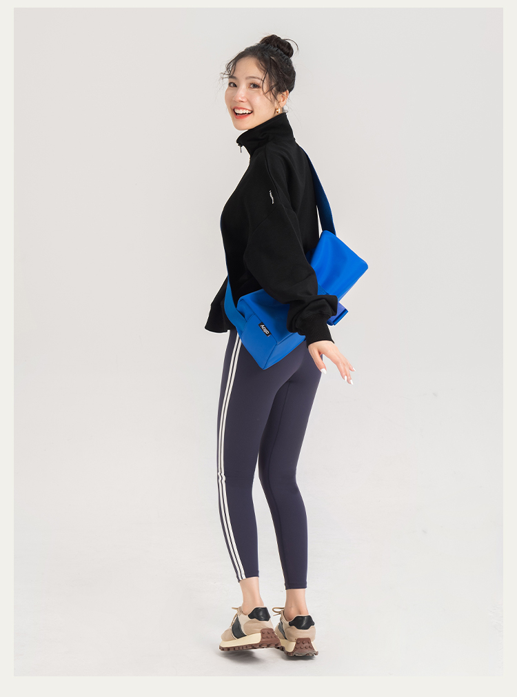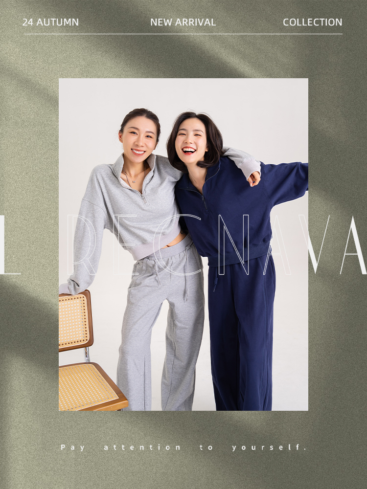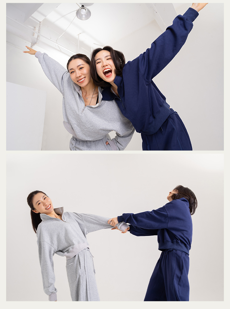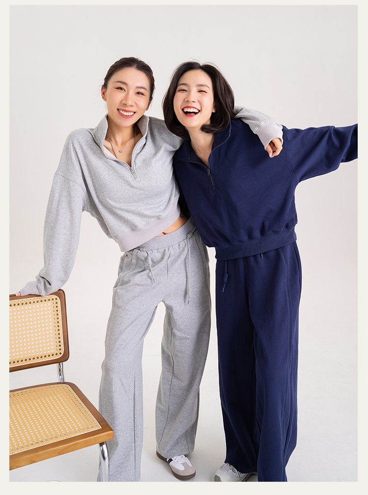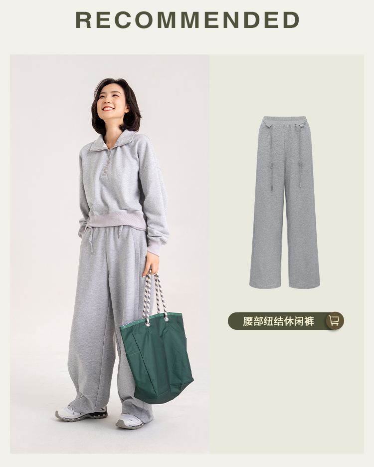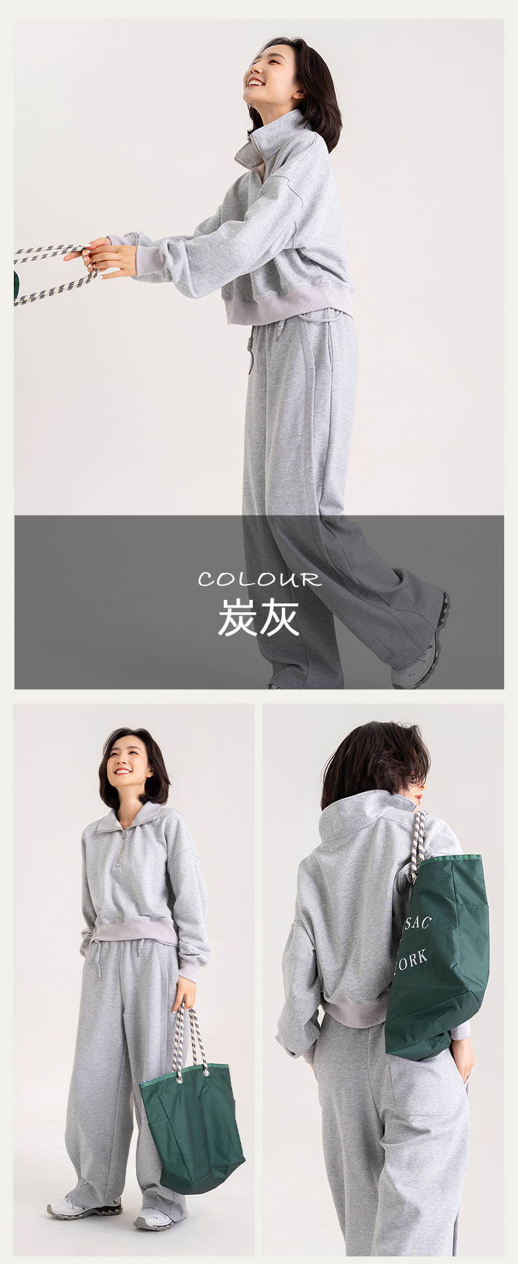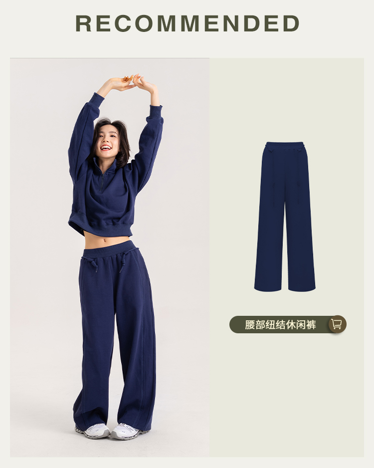 L RECNAVA [72%棉] 宽松运动套头卫衣 显瘦遮肉 半拉链高领休闲上衣