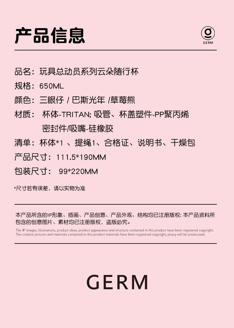 GERM迪士尼玩具总动员网红奶瓶直饮杯吸管防呛杯 AY