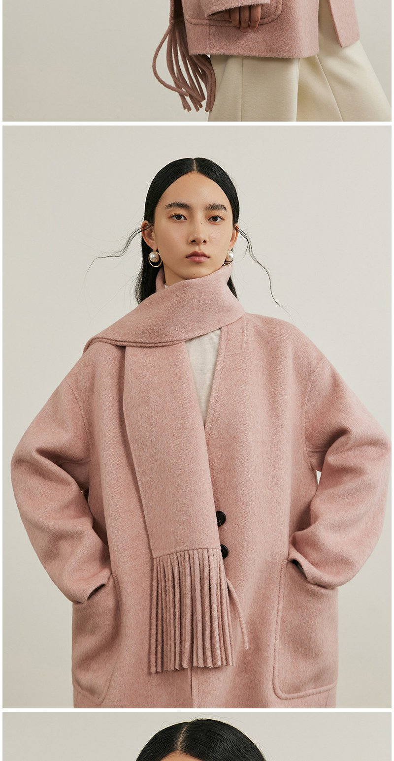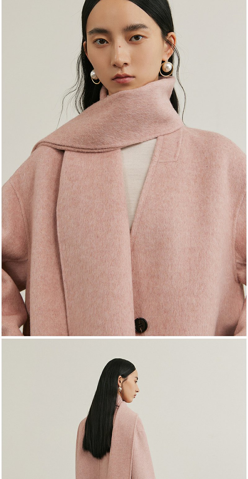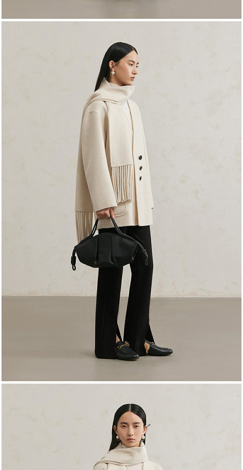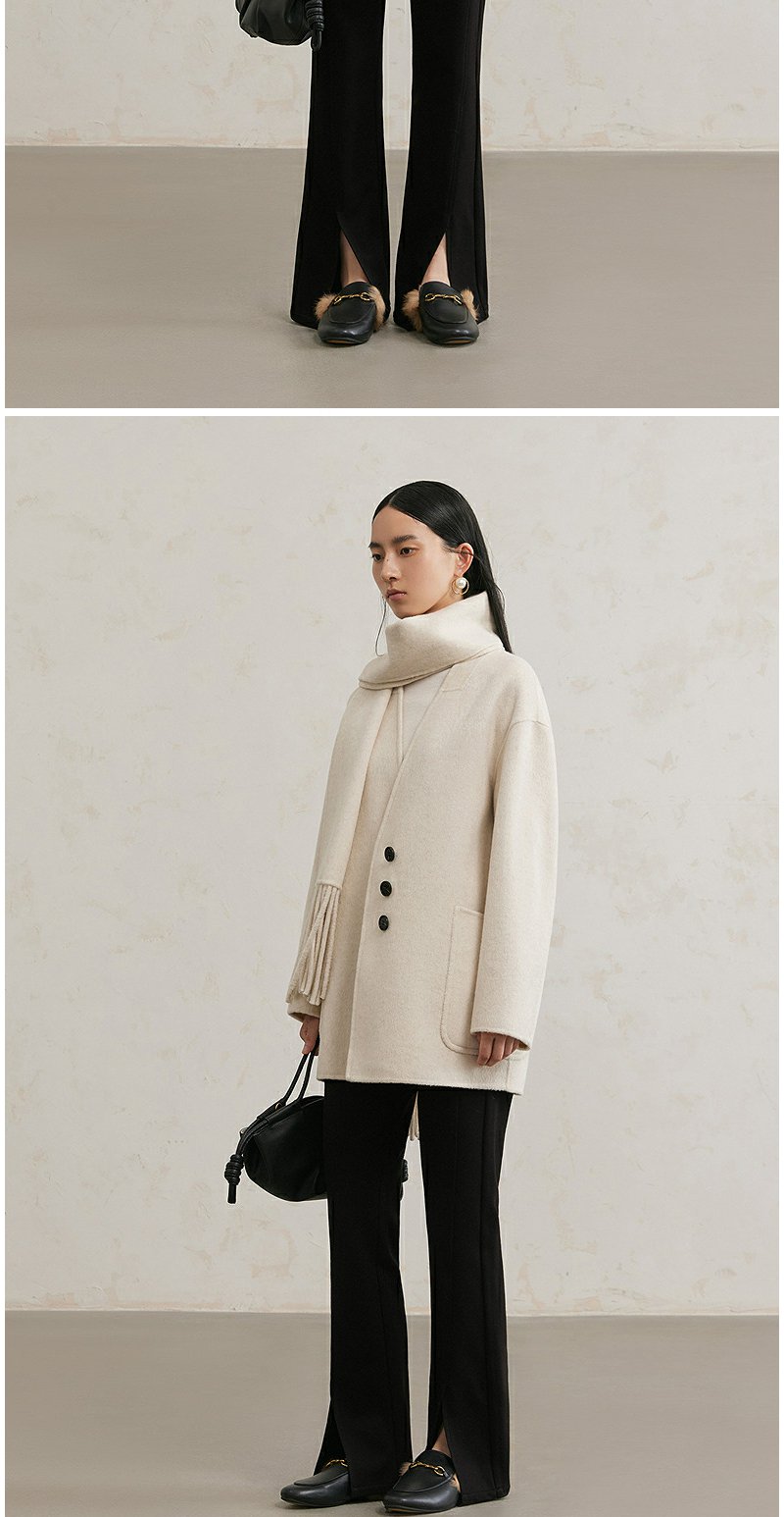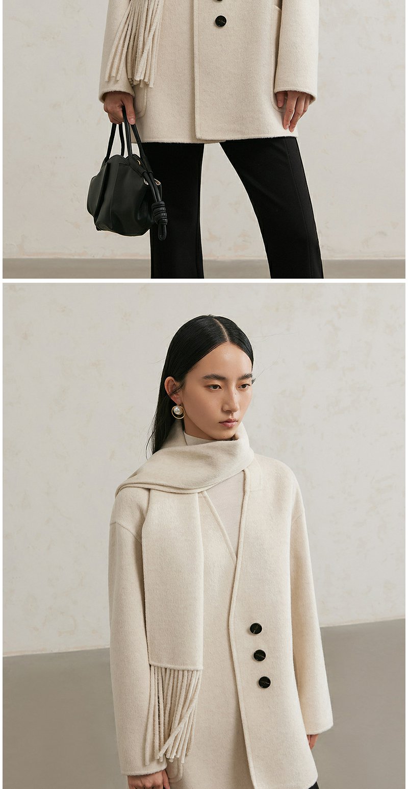 NEELLY纳俪商场同款冬季新款绵羊毛双面呢大衣女围巾领大衣外套N24111N01135