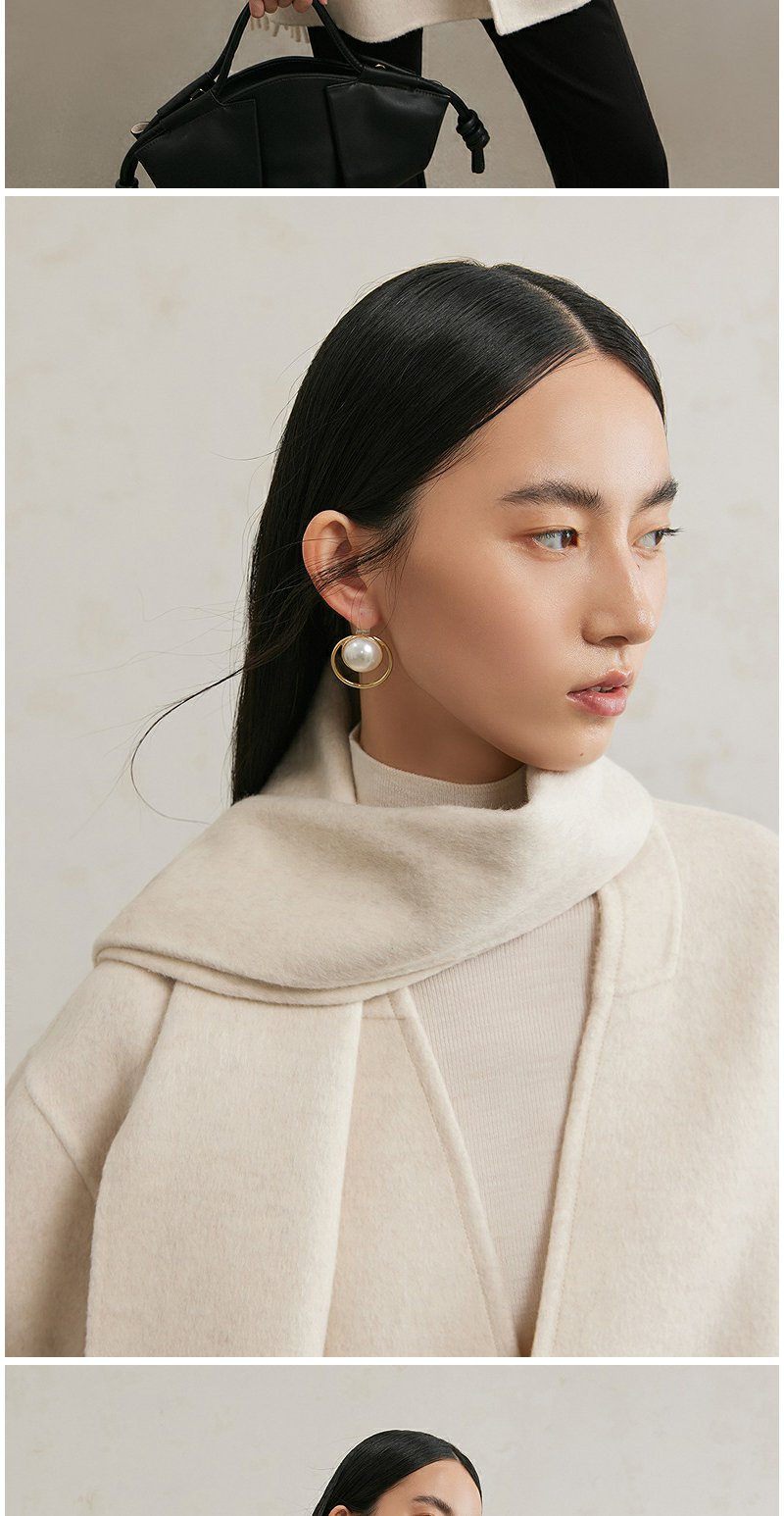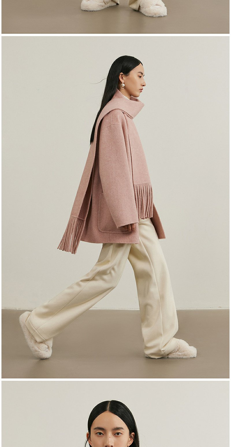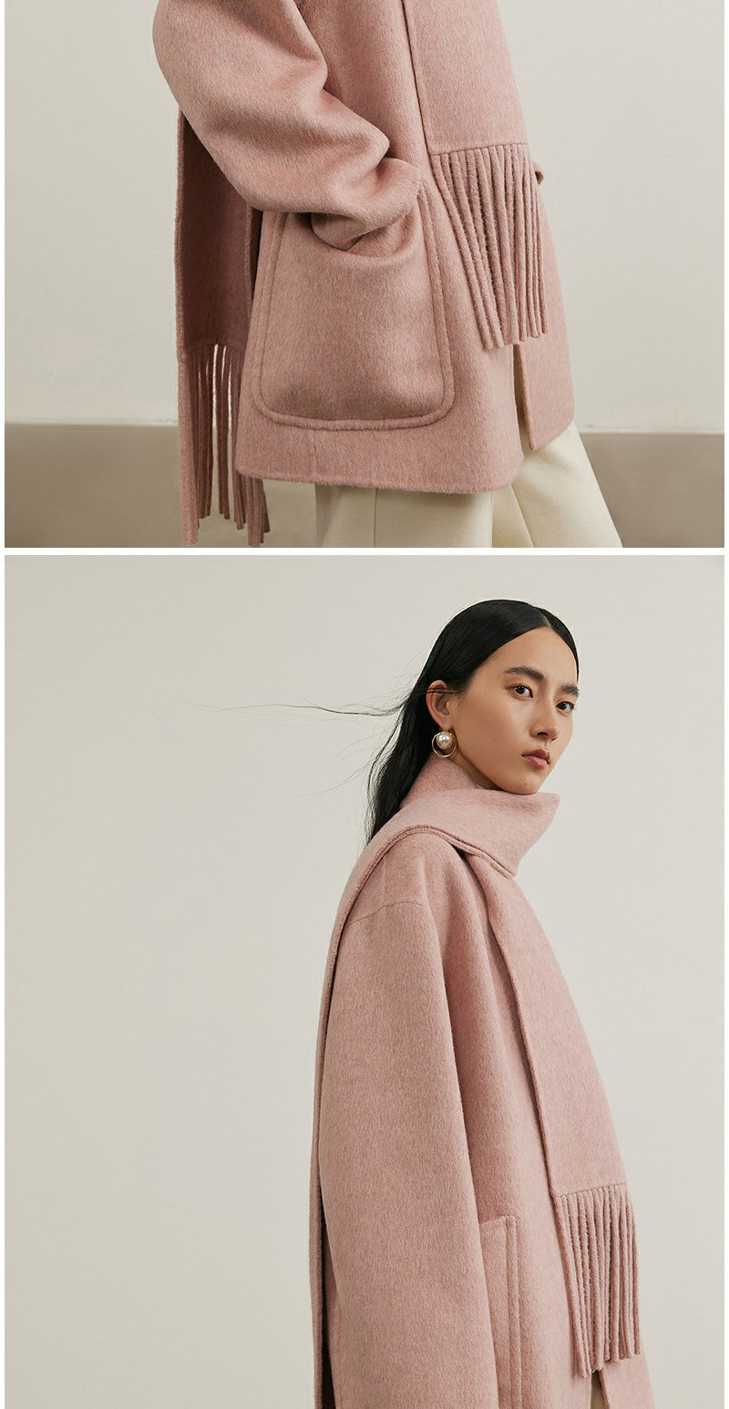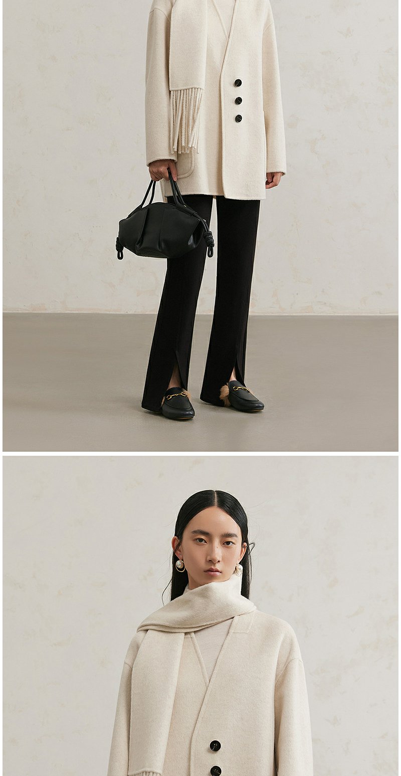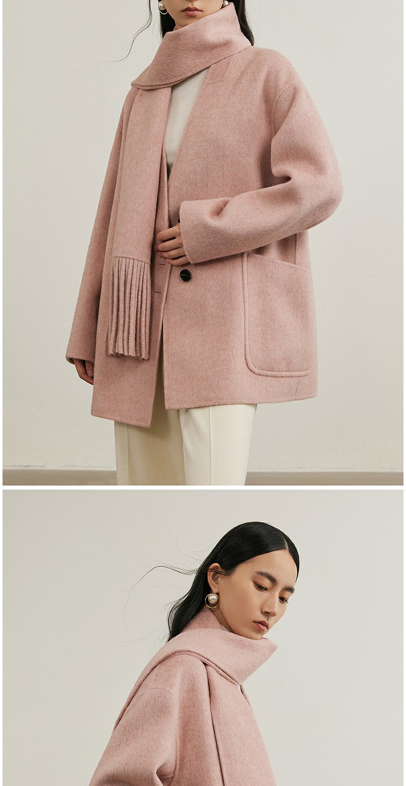 NEELLY纳俪商场同款冬季新款绵羊毛双面呢大衣女围巾领大衣外套N24111N01135