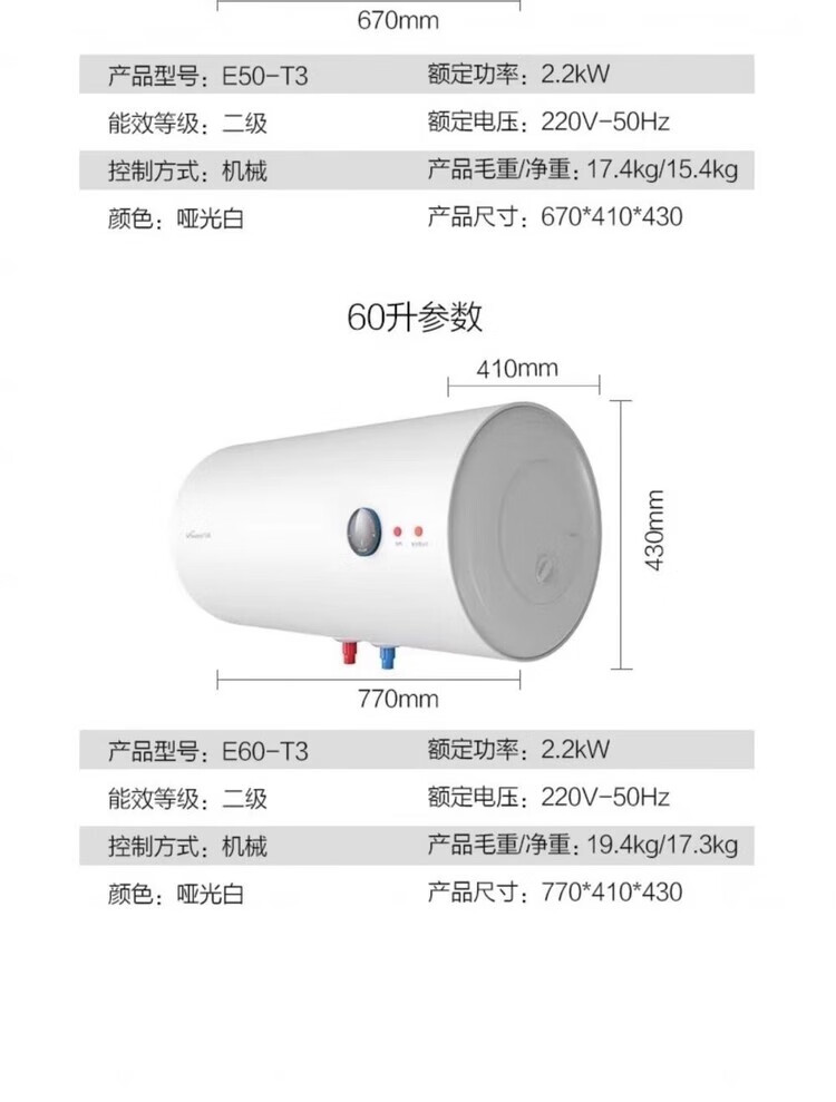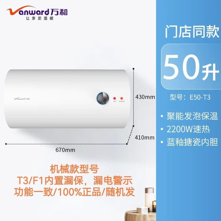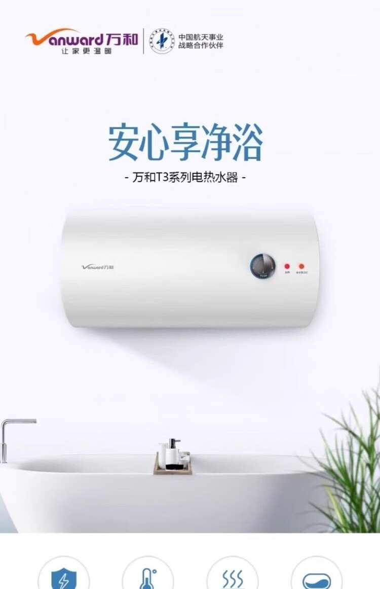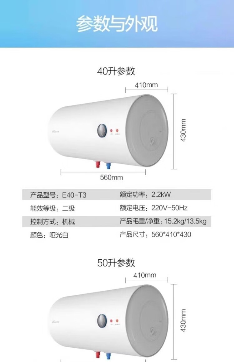 IBF艾博菲万和电热水器60升40升50家用储水式加长防电墙水电分离漏电提醒T3_40升机械款2200W_加长防电墙高湿抑菌【K】