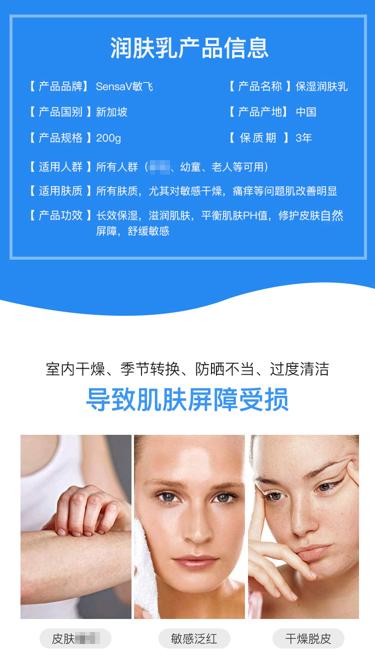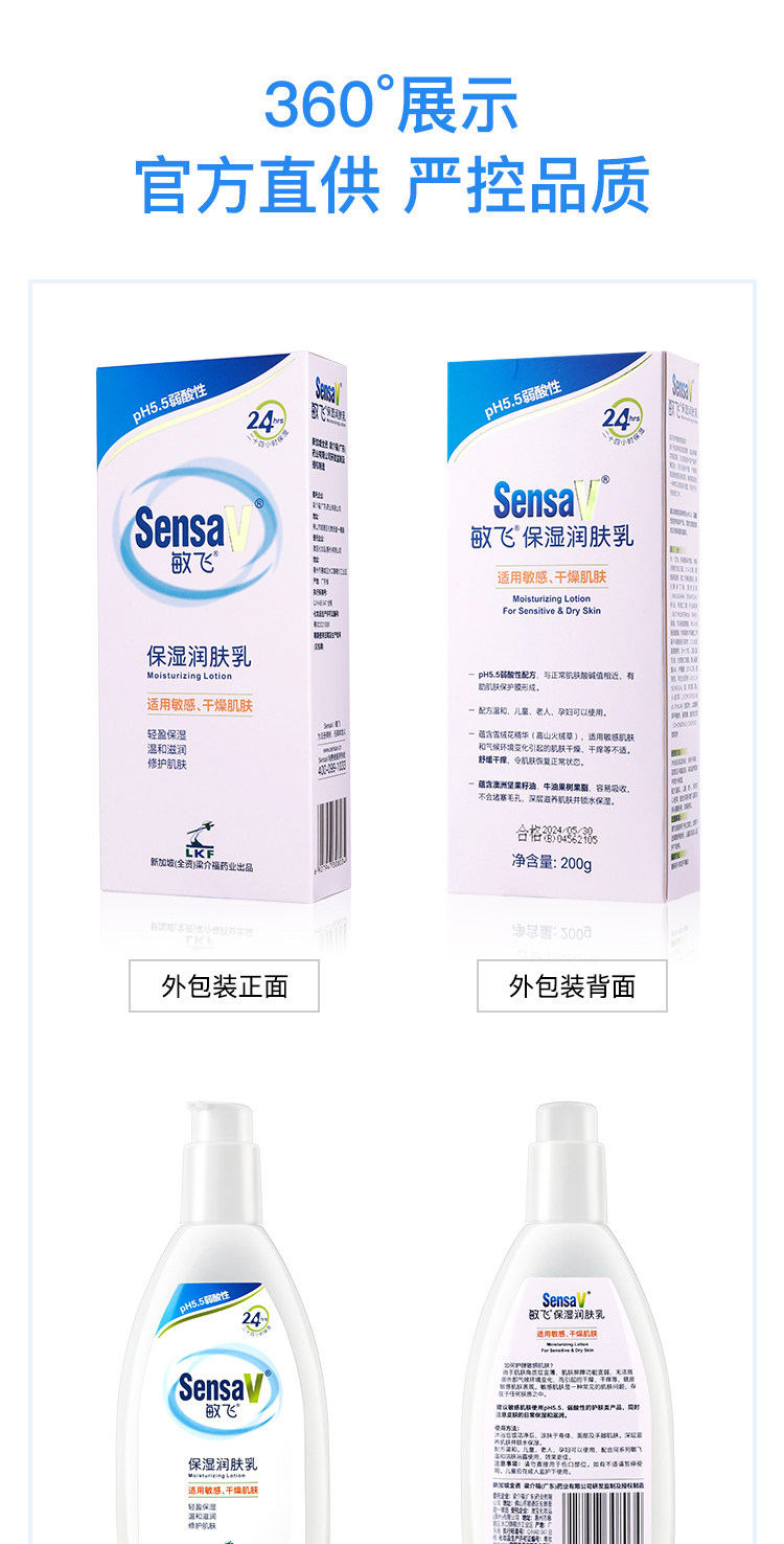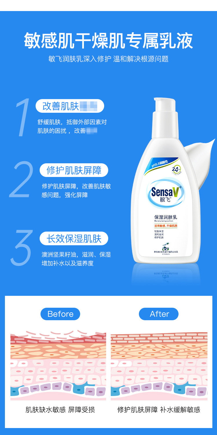 sensav敏飞身体乳润肤露秋冬干燥止痒补水保湿滋润不油腻弱酸性