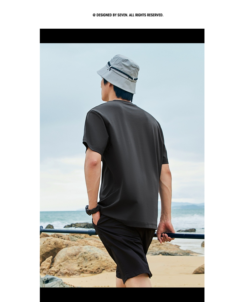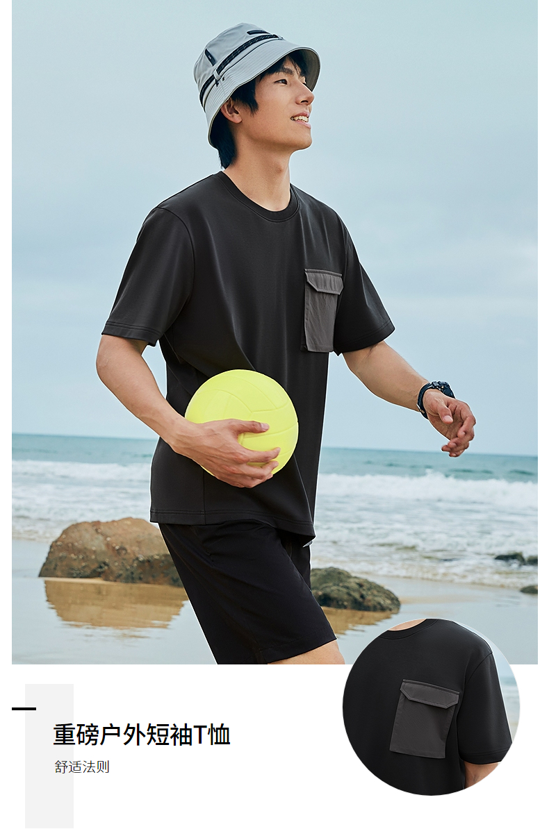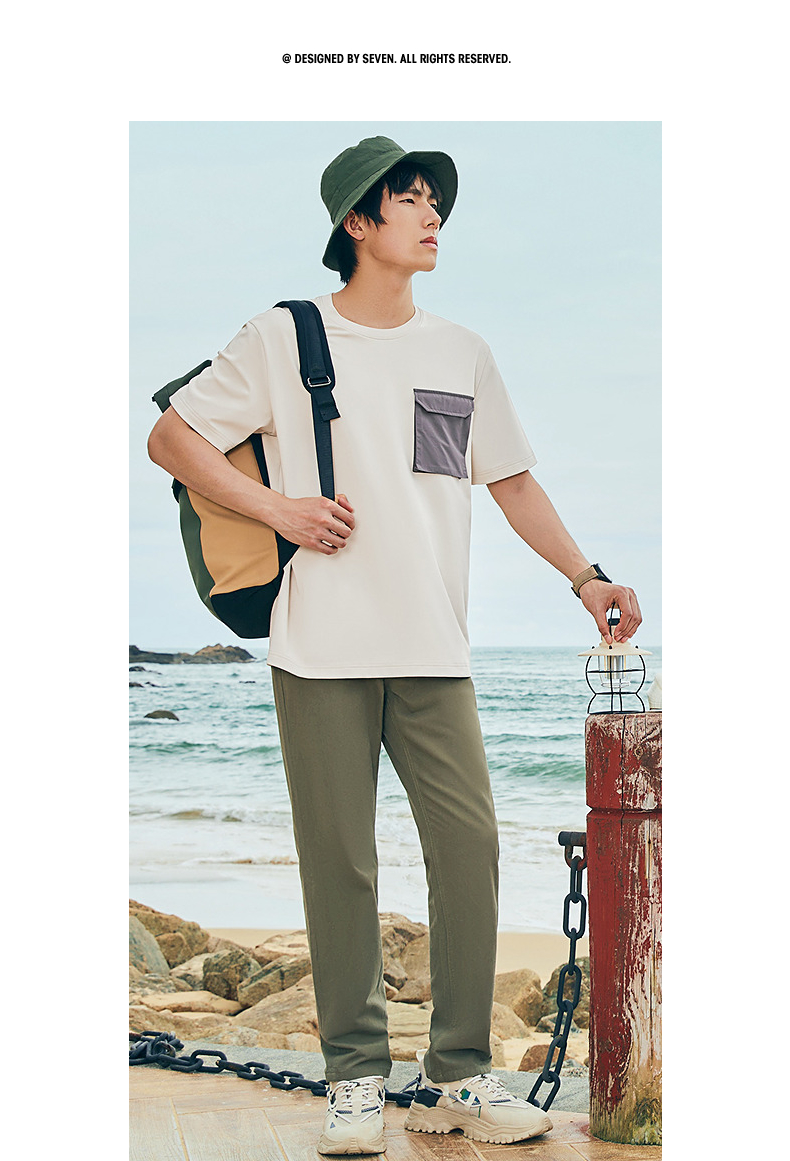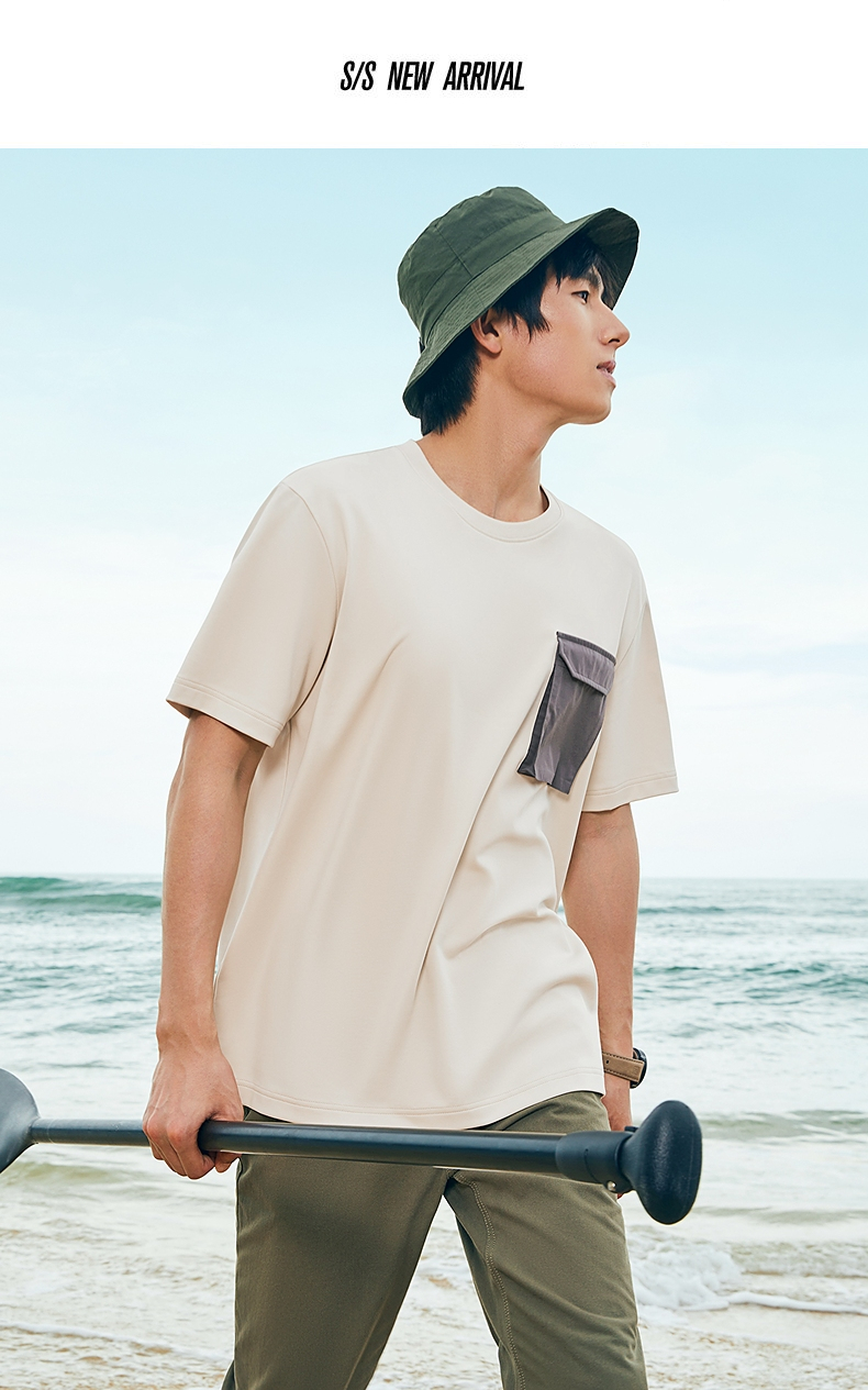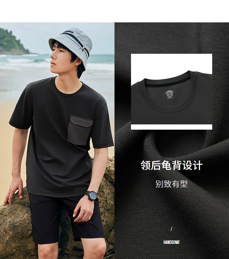 【高弹】柒牌短袖T恤男2024夏季新款时尚休闲工装风口袋圆领上衣 126T72860