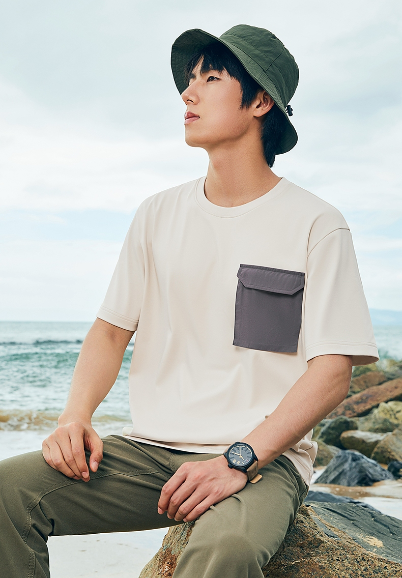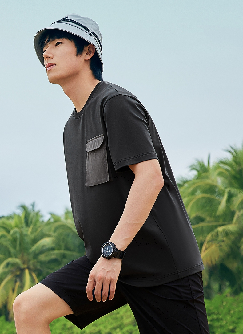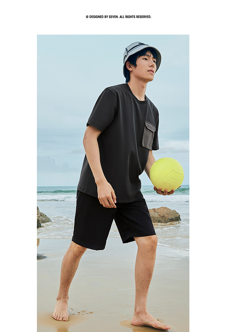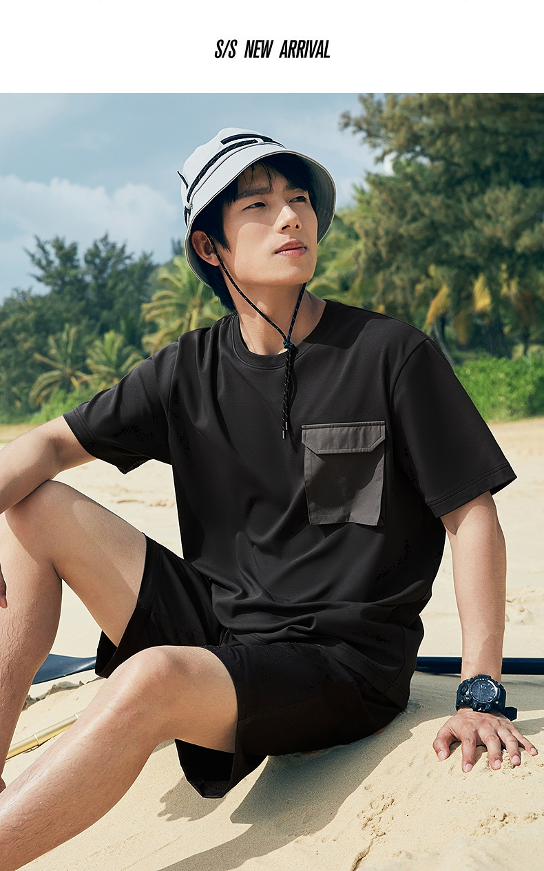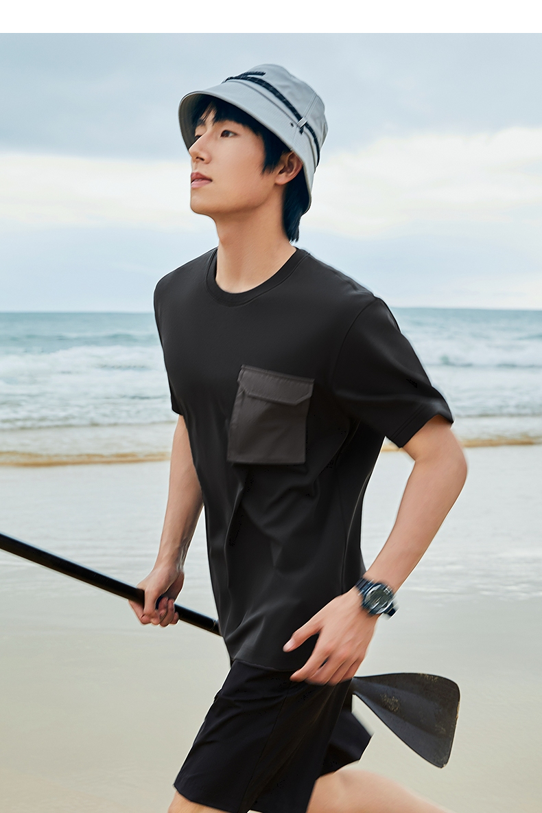 【高弹】柒牌短袖T恤男2024夏季新款时尚休闲工装风口袋圆领上衣 126T72860