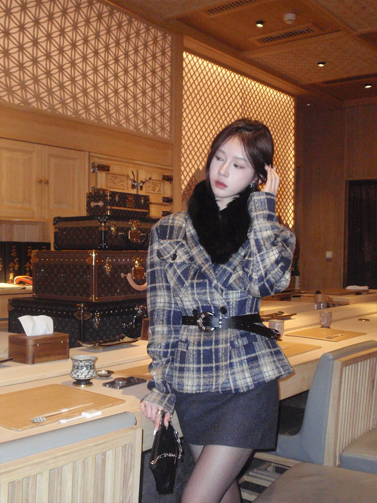 现货 温莎小姐 复古色织格纹/夹棉短款西装
