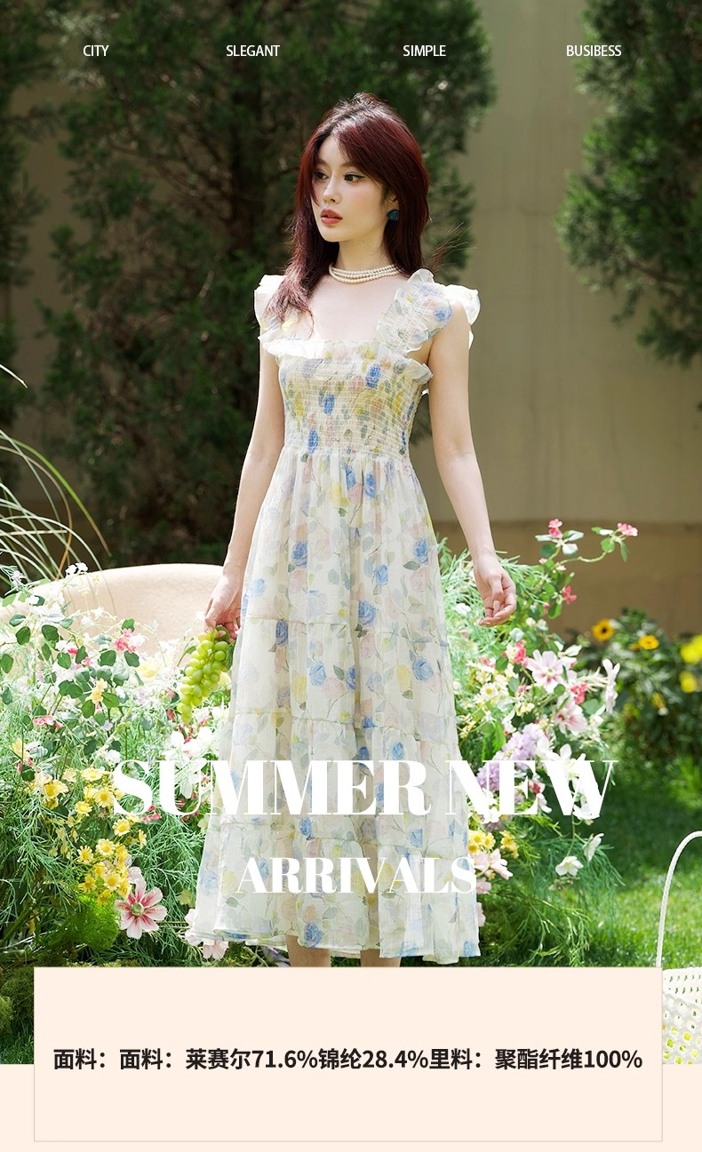 【门店同款】ENJOY夏季“悠然之境”莫奈花园飞袖裙 162343444