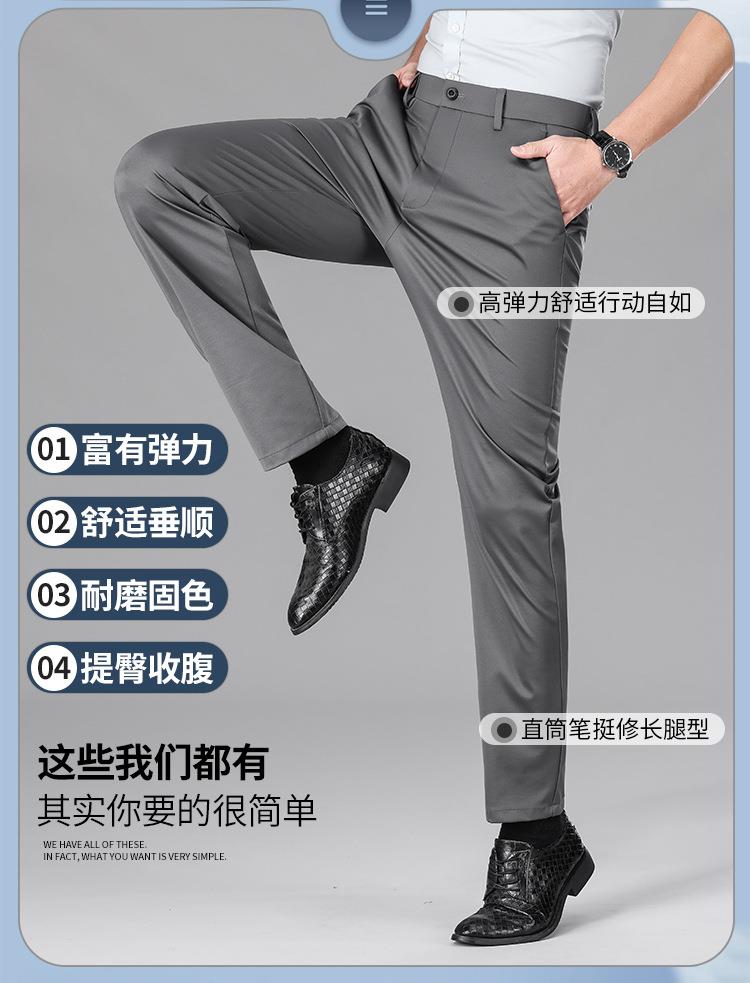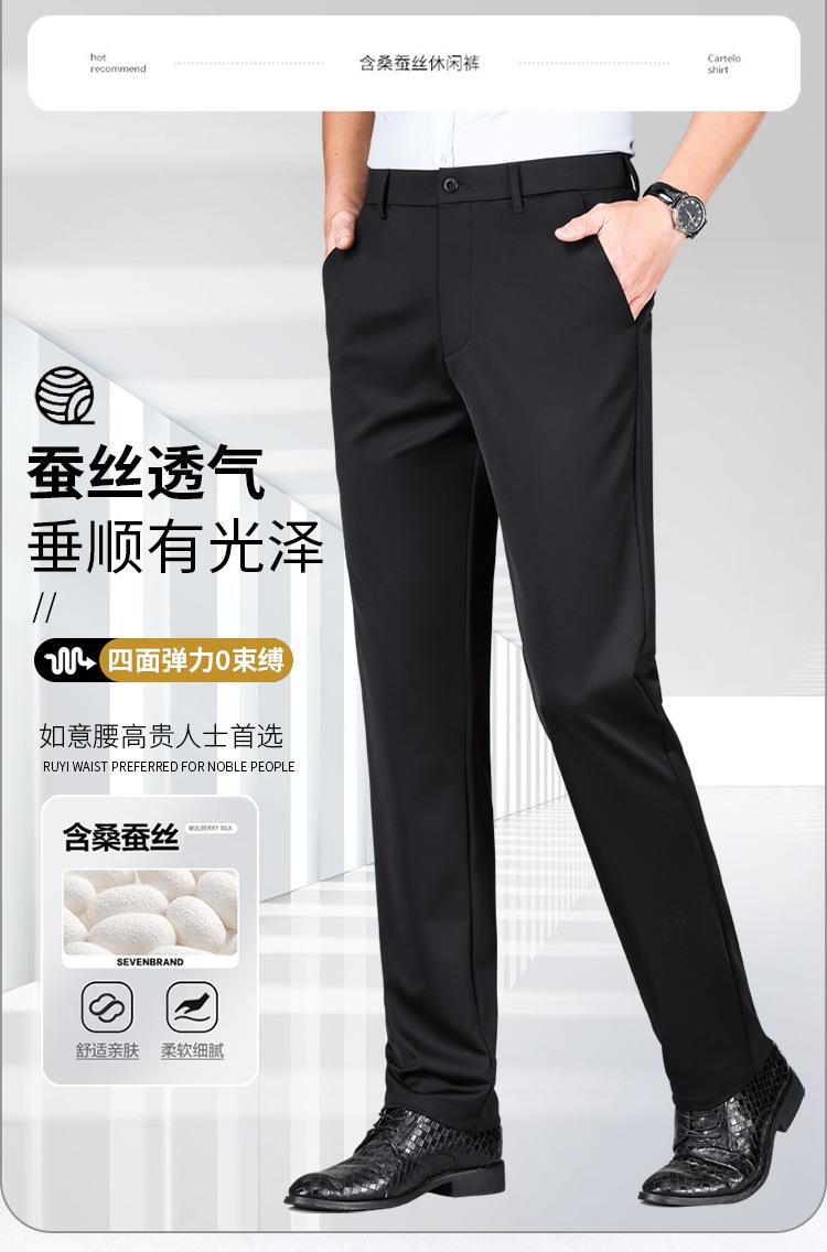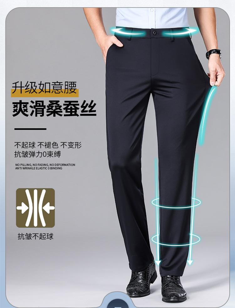 桑蚕丝休闲男式长裤春秋季新款冰丝透气弹力坠感西裤