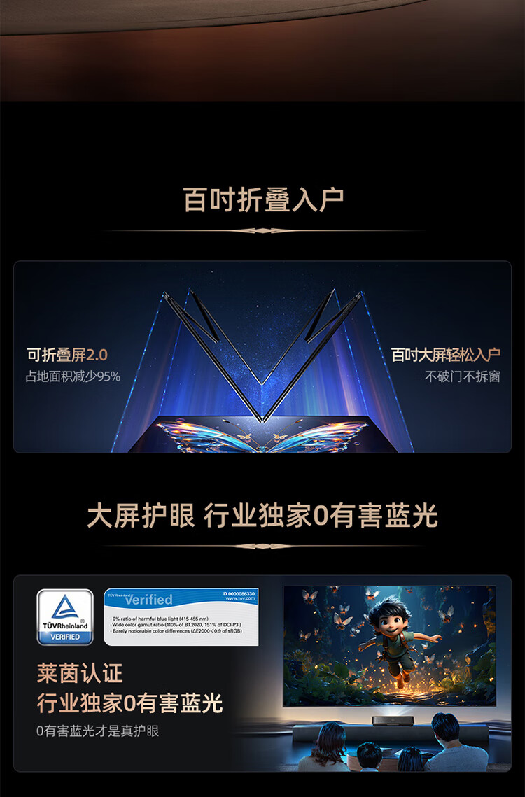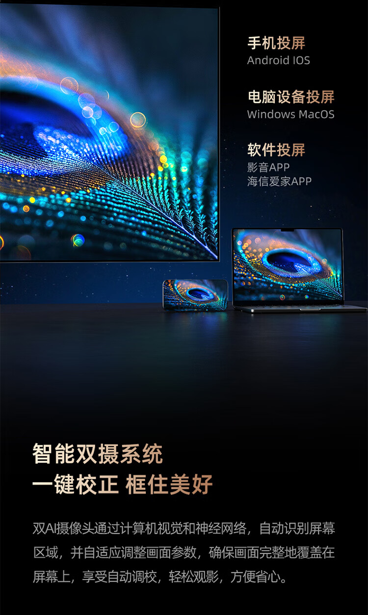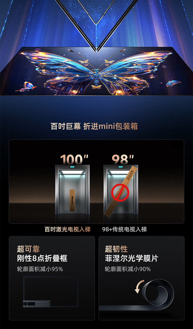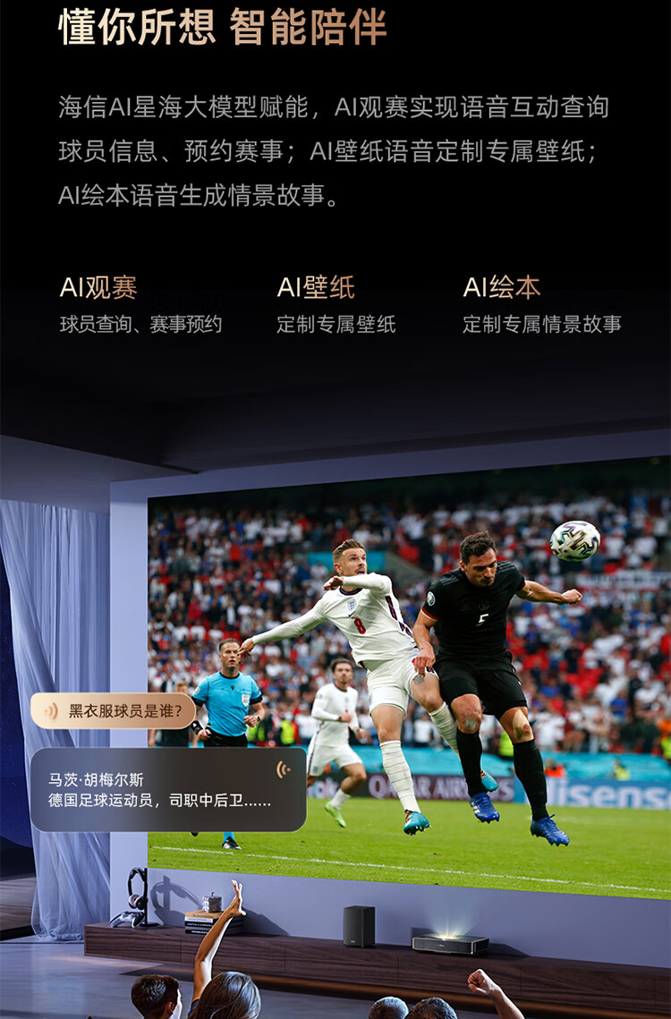 海信激光电视 星光S1Pro 100英寸三色激光家庭影院 大屏护眼 电影院同源技术 折叠入户 4K 以旧换新 100英寸