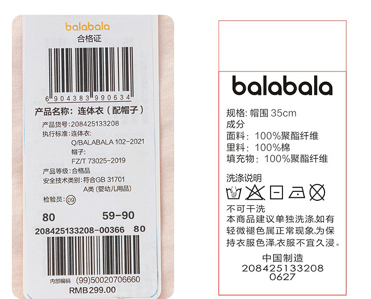 巴拉巴拉balaOne婴儿连体衣2025新款冬季宝宝爬服仿羊羔毛造型萌