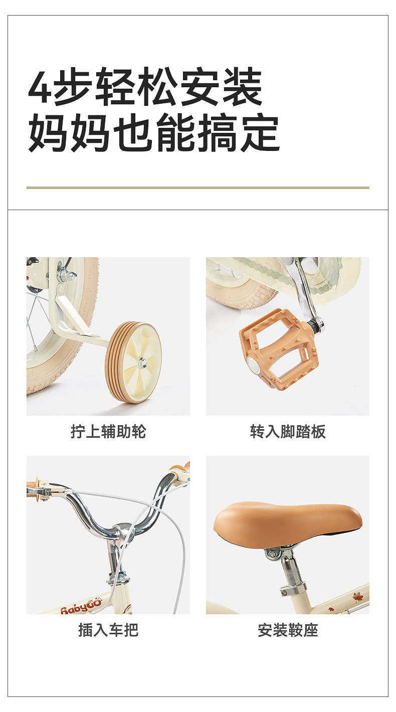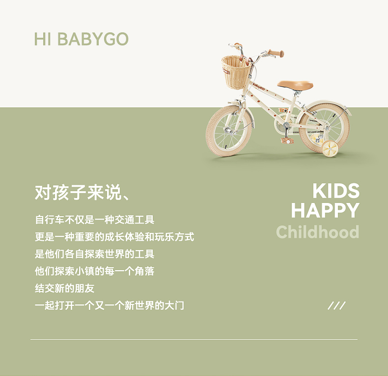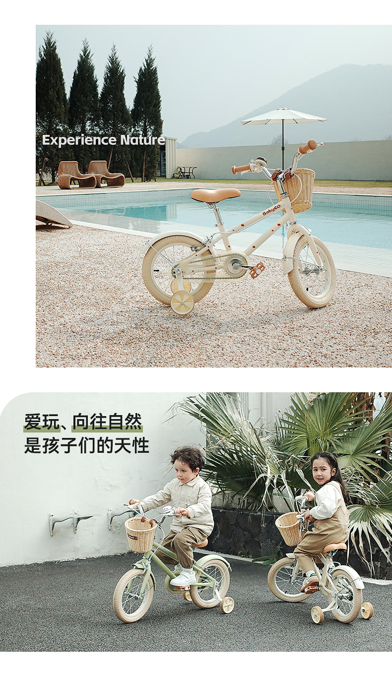 BABYGO牧野自行车大童男女孩脚踏车辅助轮单车14寸