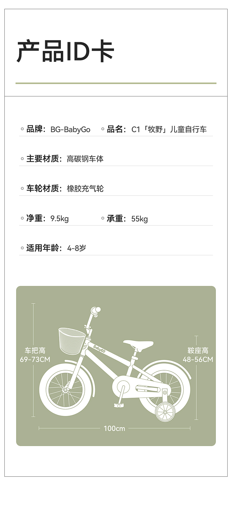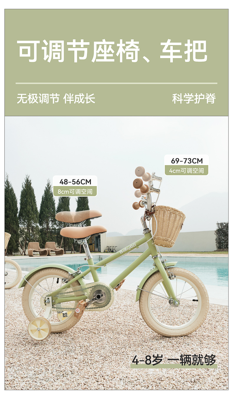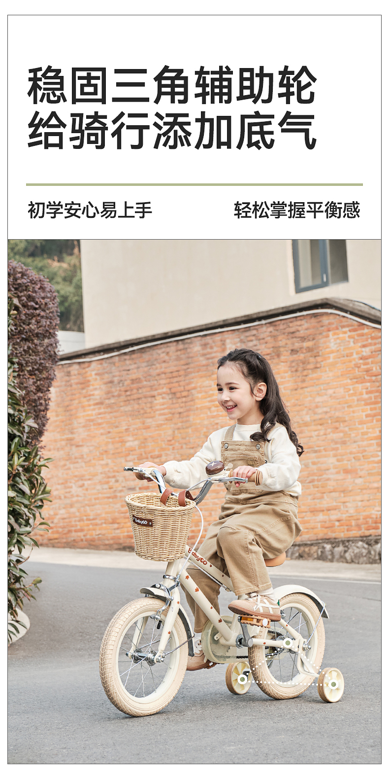 BABYGO牧野自行车大童男女孩脚踏车辅助轮单车14寸