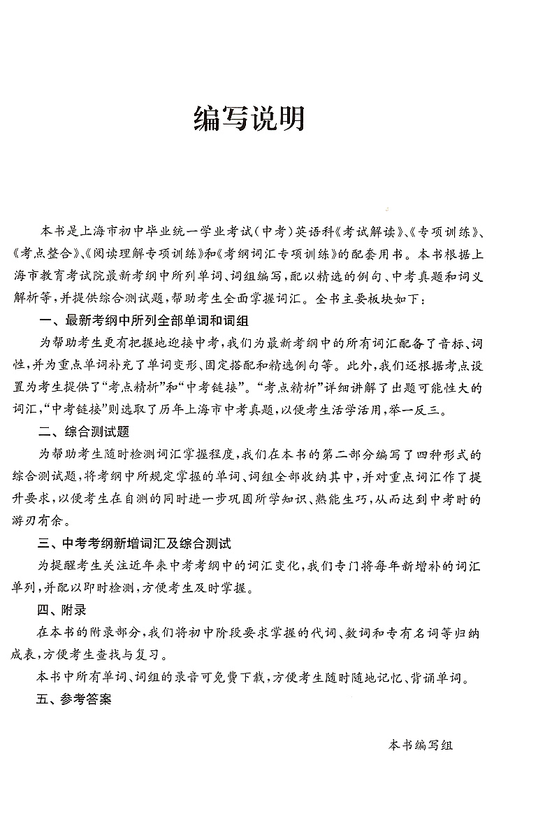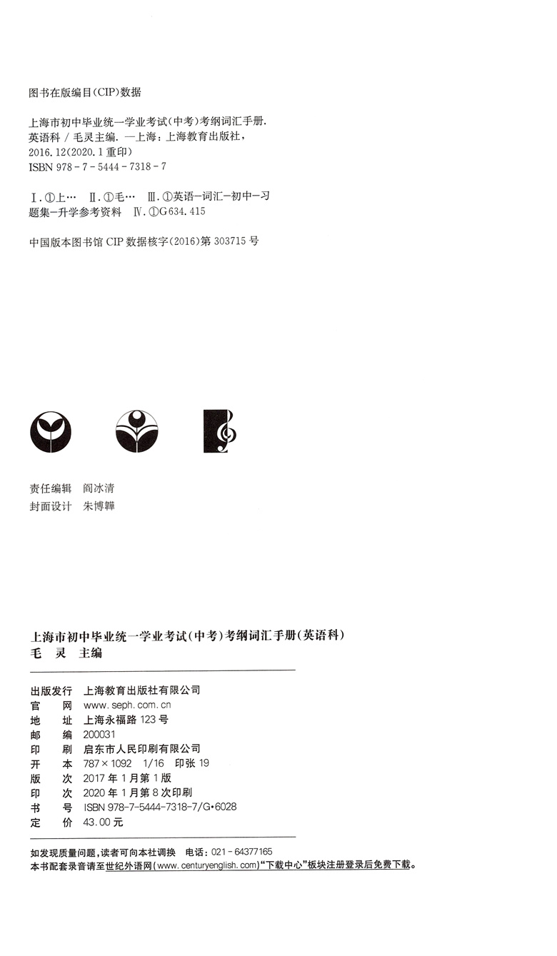 2020年上海市初中毕业统一学业考试(中考) 考纲词汇手册英语科 上海教育出版社 初中英语考纲词汇 上海中考英语词汇专项练习