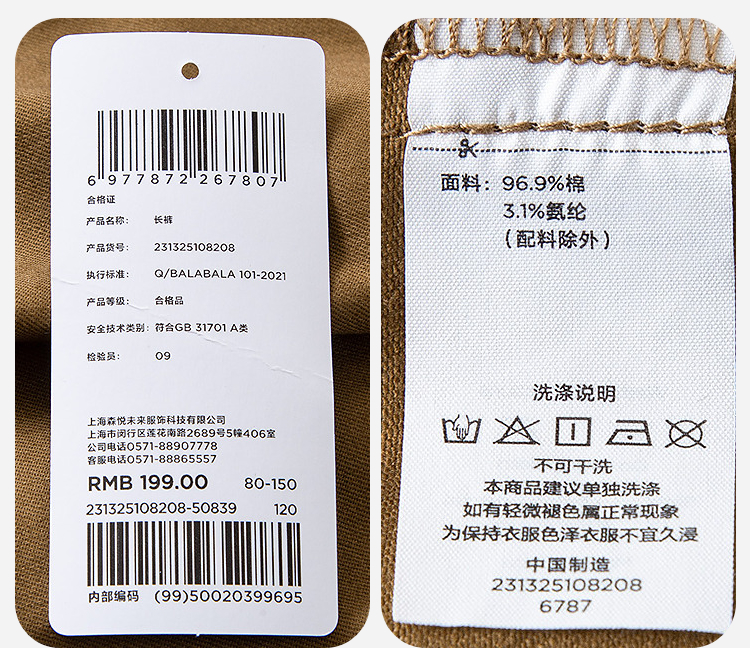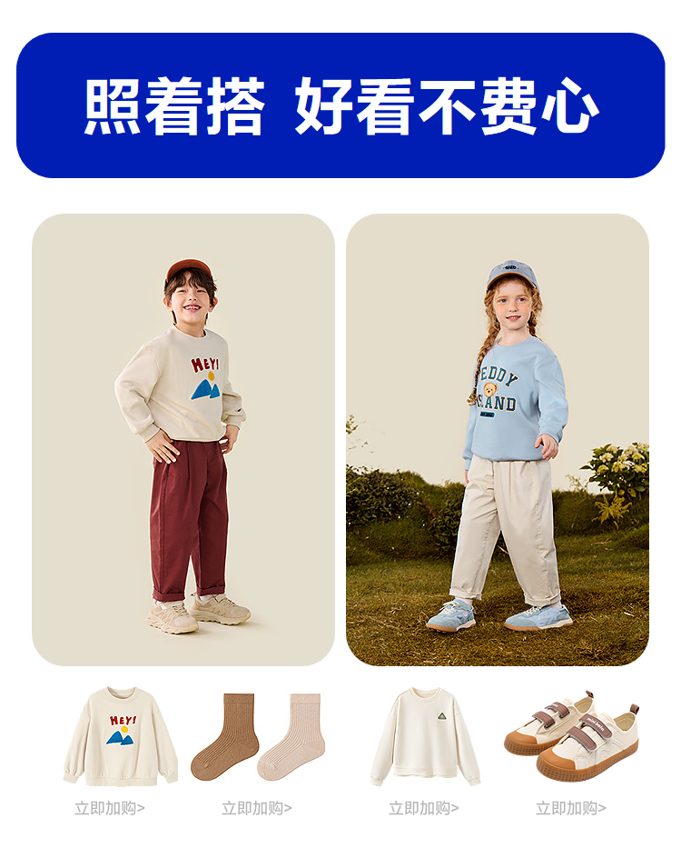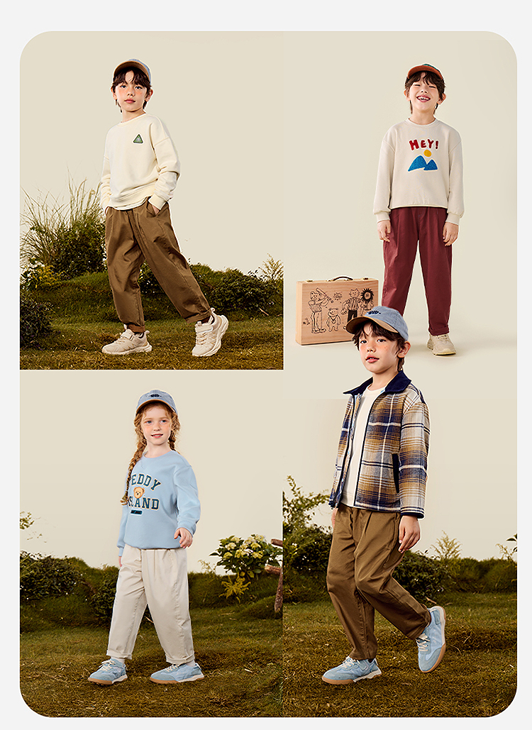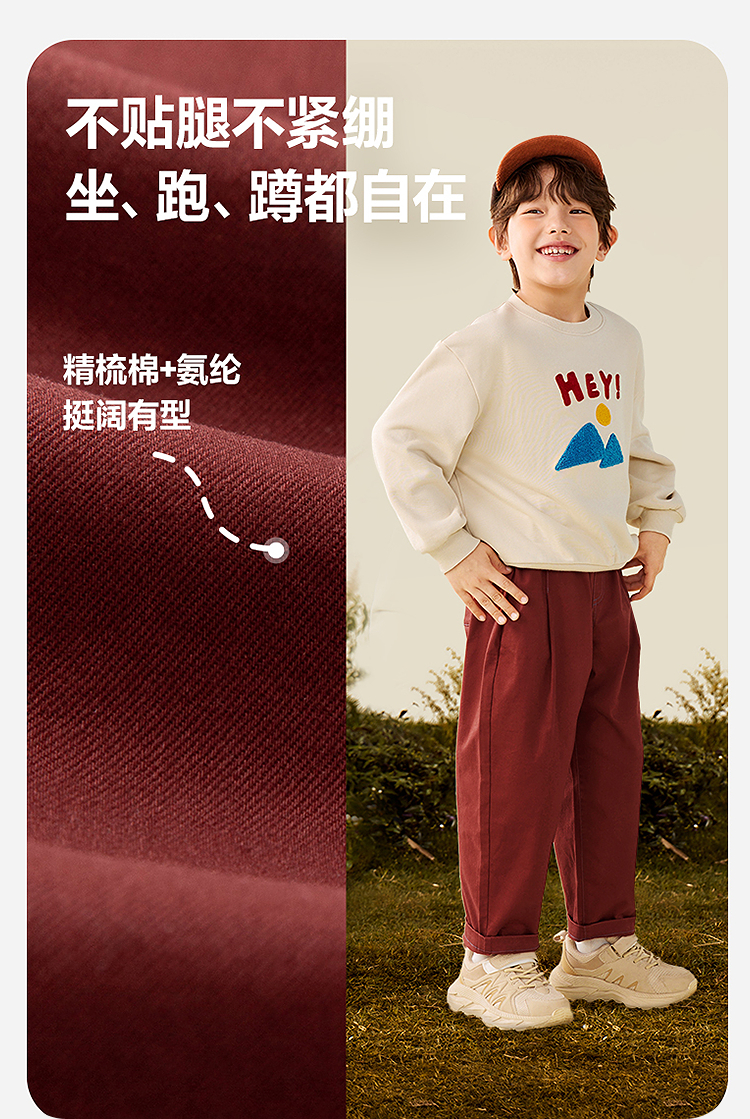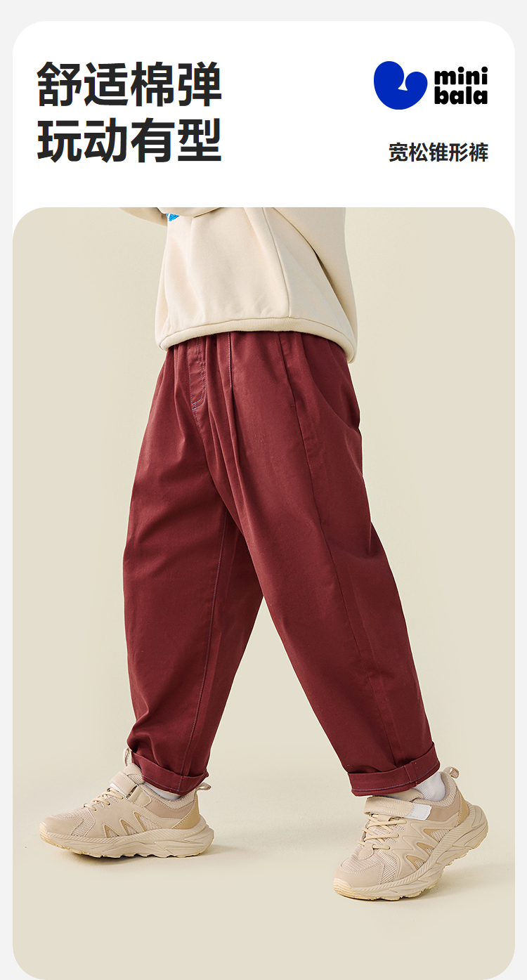 迷你巴拉男女童裤子秋儿童棉弹舒适挺阔长裤锥形裤
