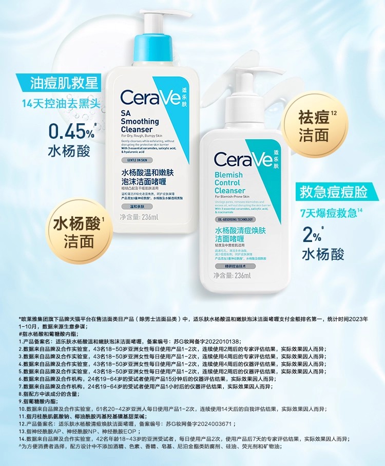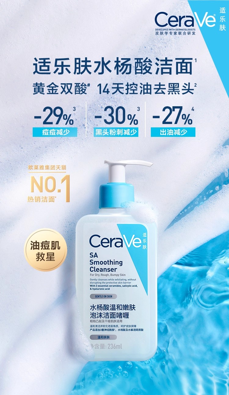 CeraVe适乐肤水杨酸洁面啫喱氨基酸痘肌油皮洗面奶祛痘控油男女