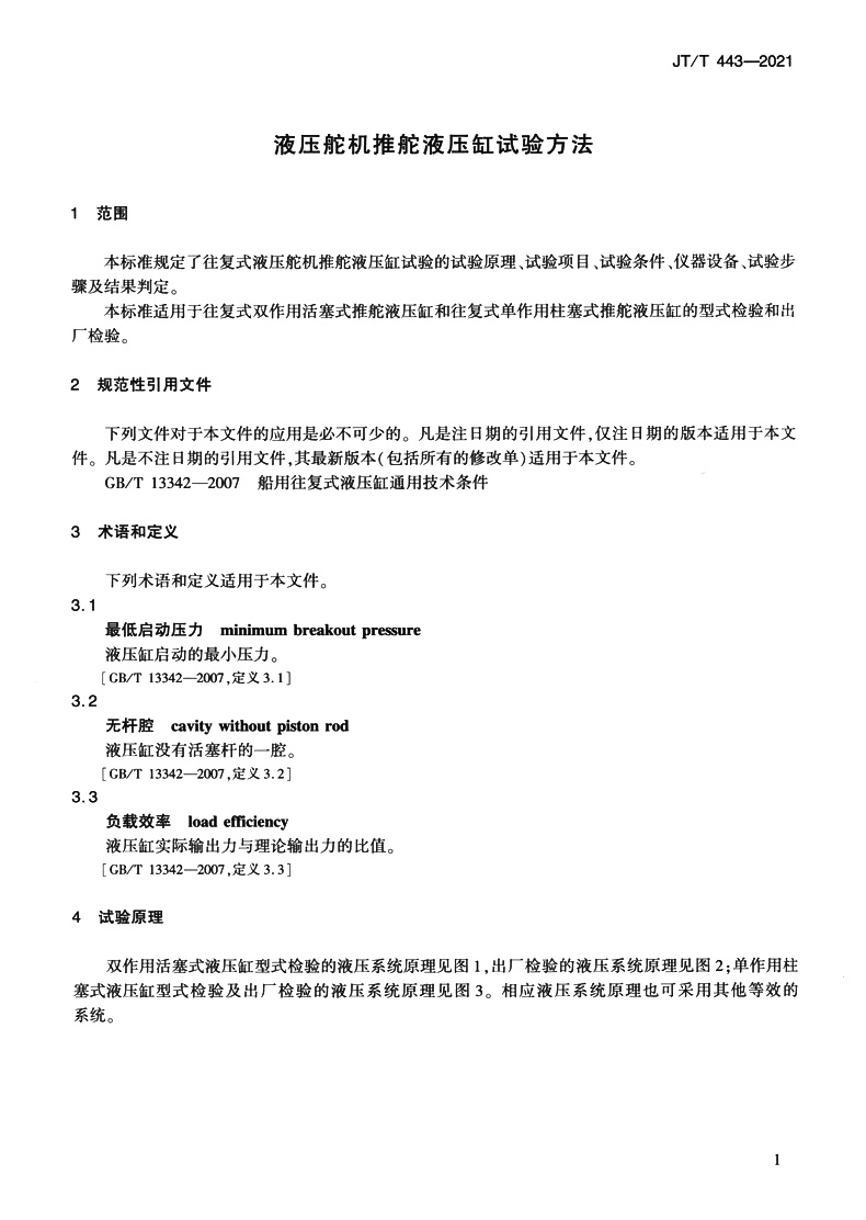 书名:液压舵机推舵液压缸试验方法(JT/T 443—2021)