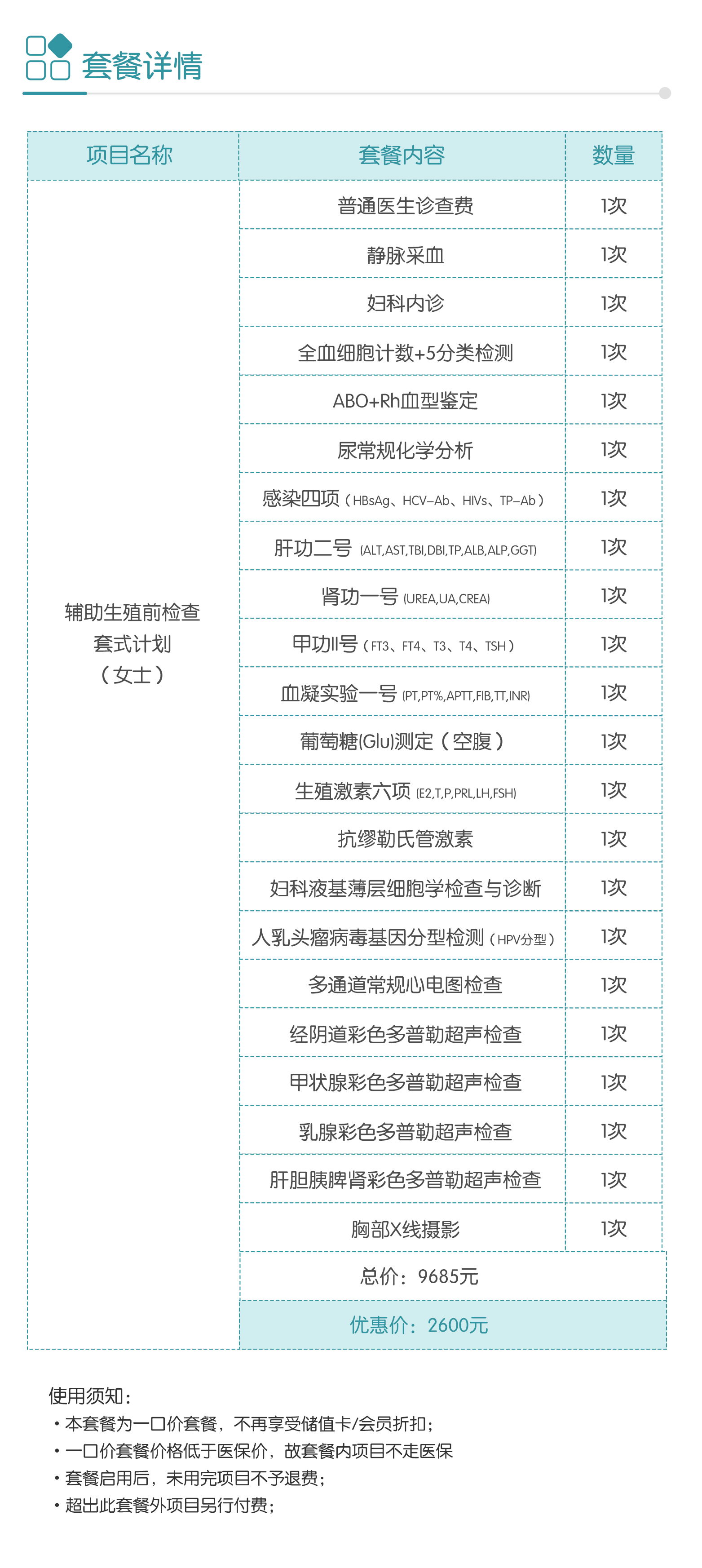 【北三环】辅助生殖前检查套式计划(女士)
