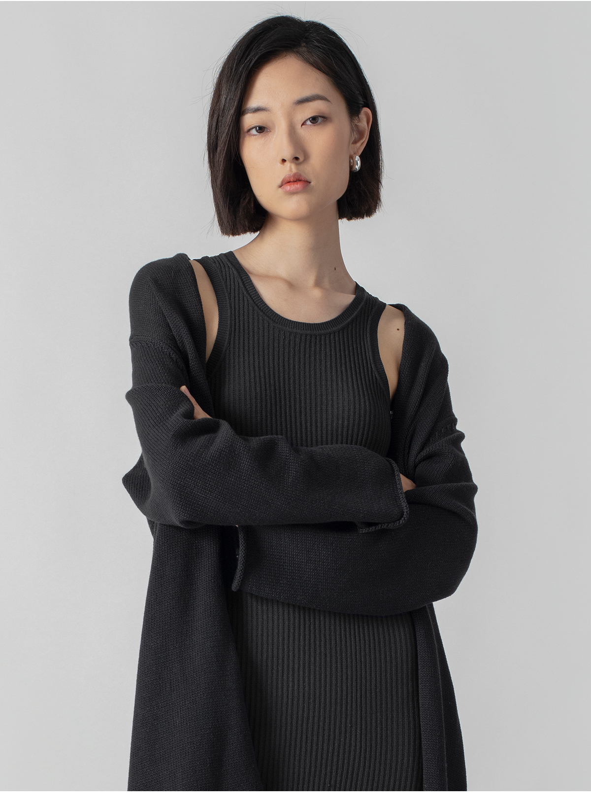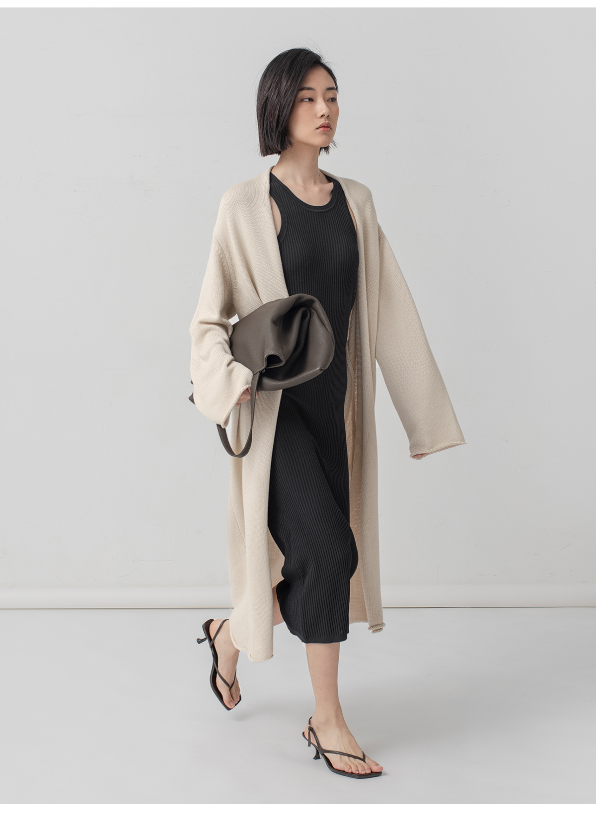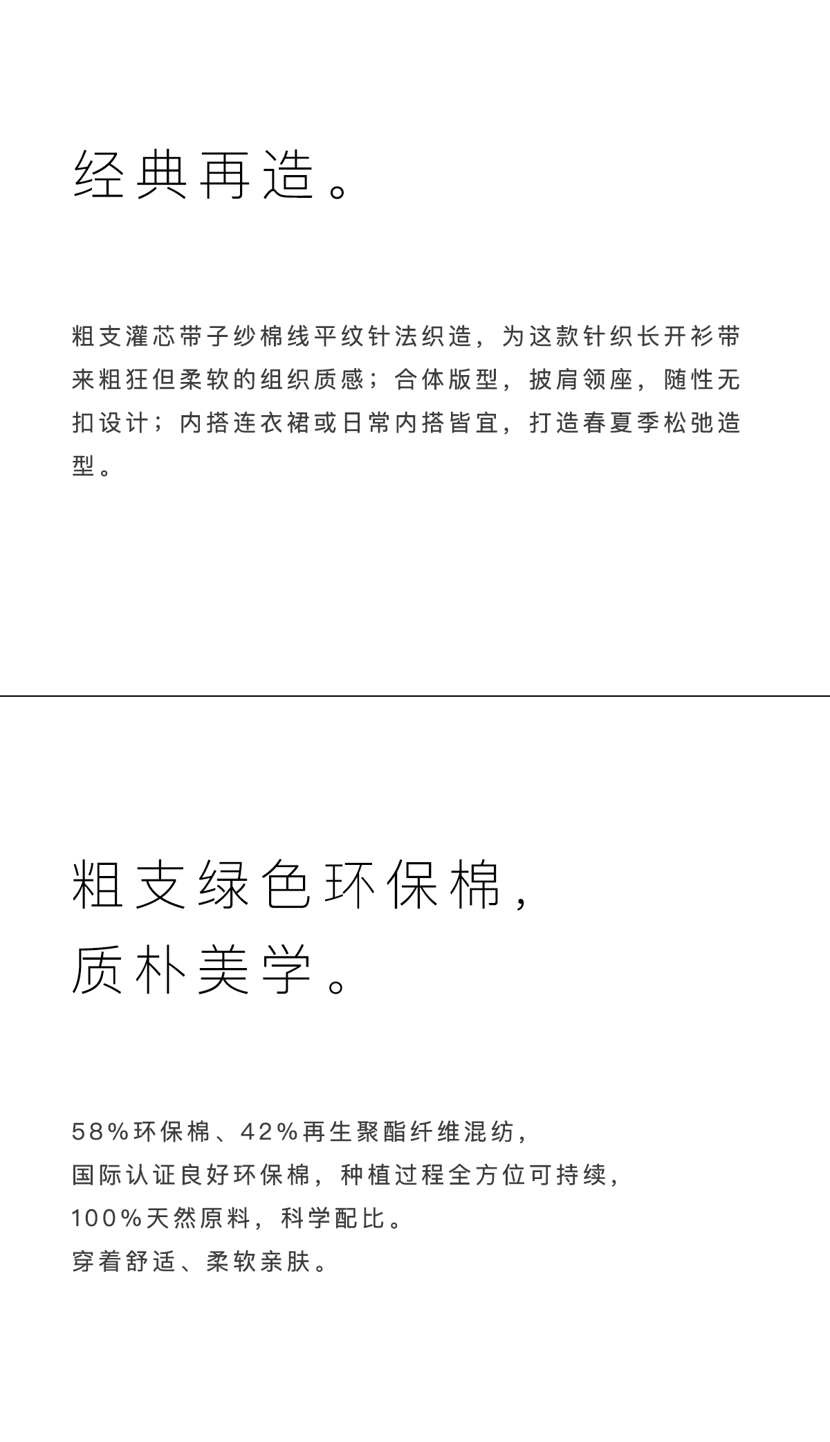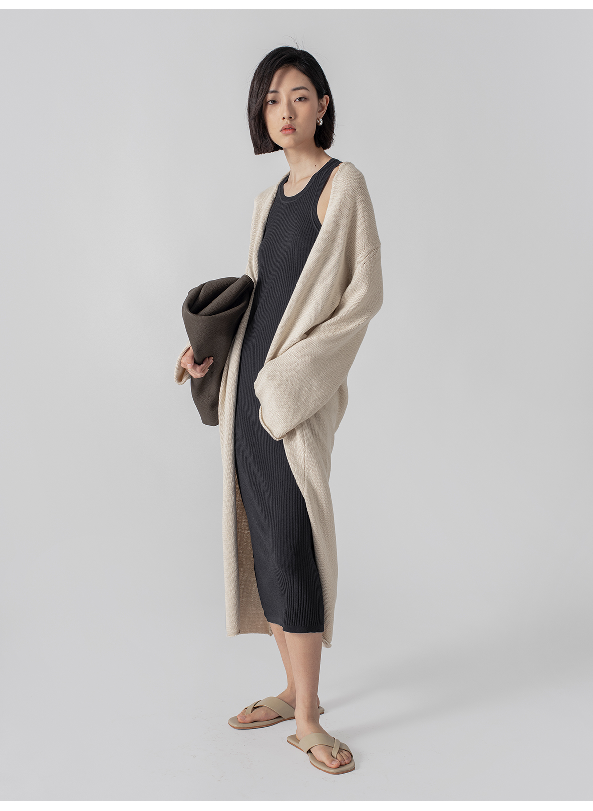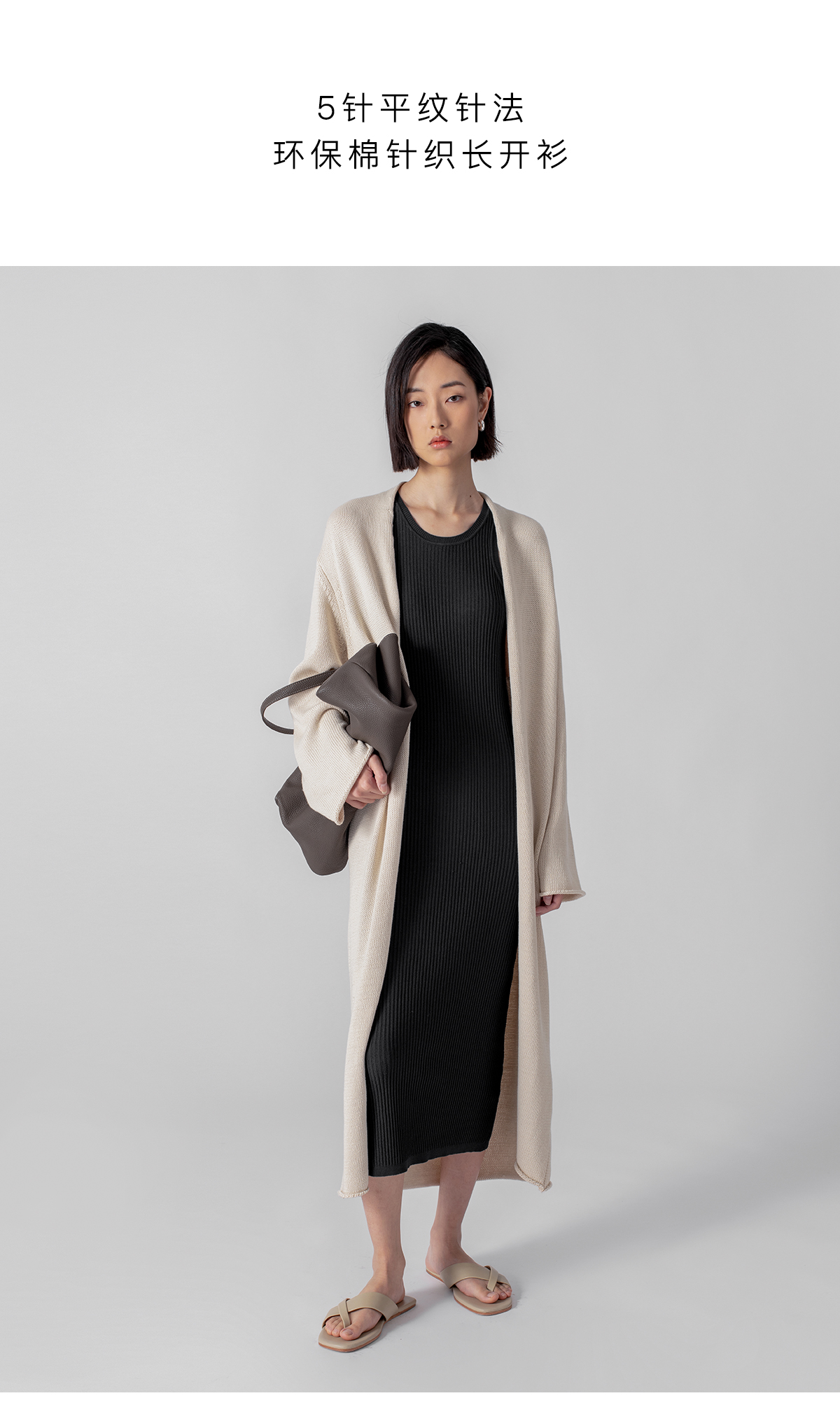322工房经典再造环保棉针织长开衫2023春夏款时髦宽松长外套B041