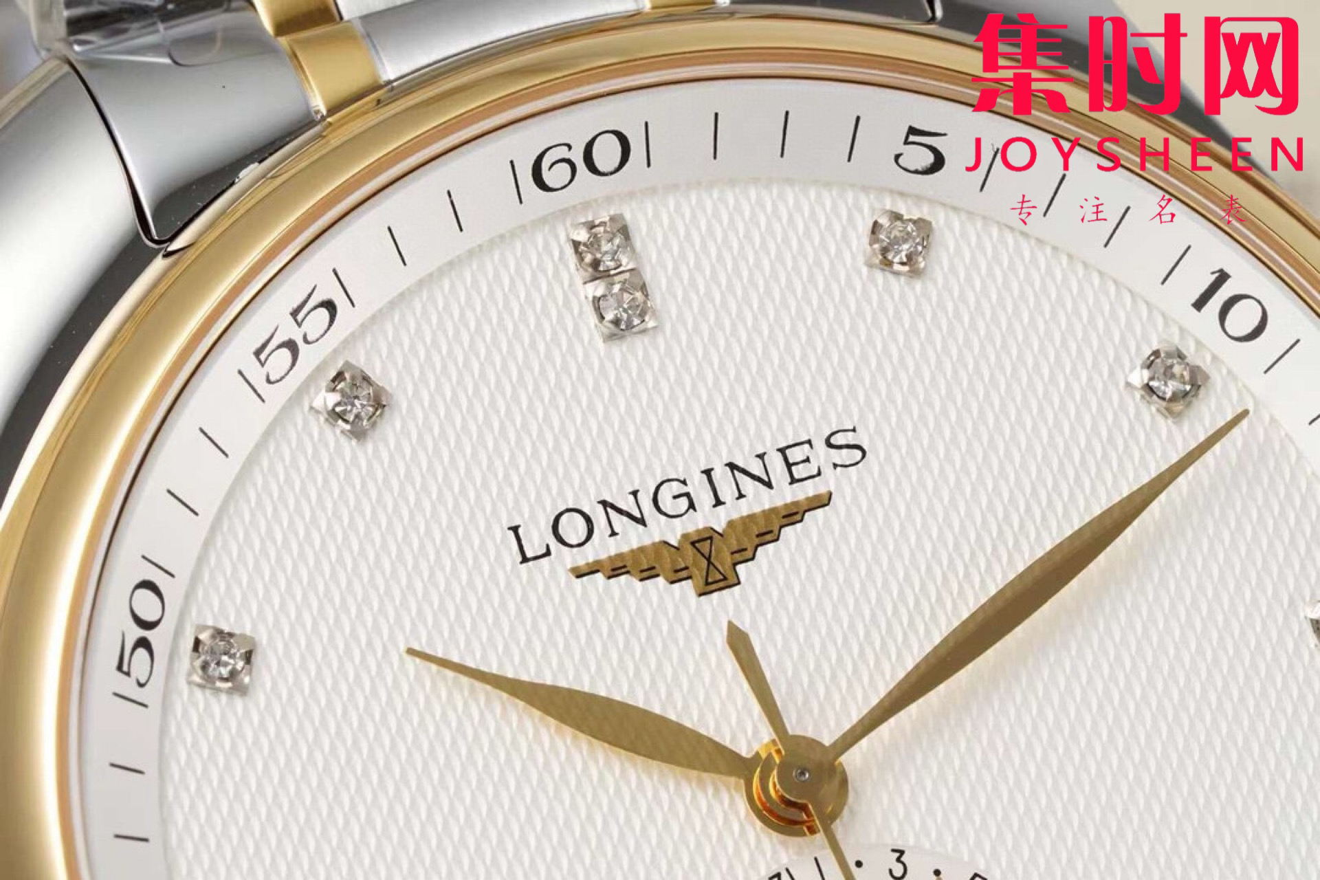 表盘材质:"麦粒"饰纹,钻面,镀金抛光指针