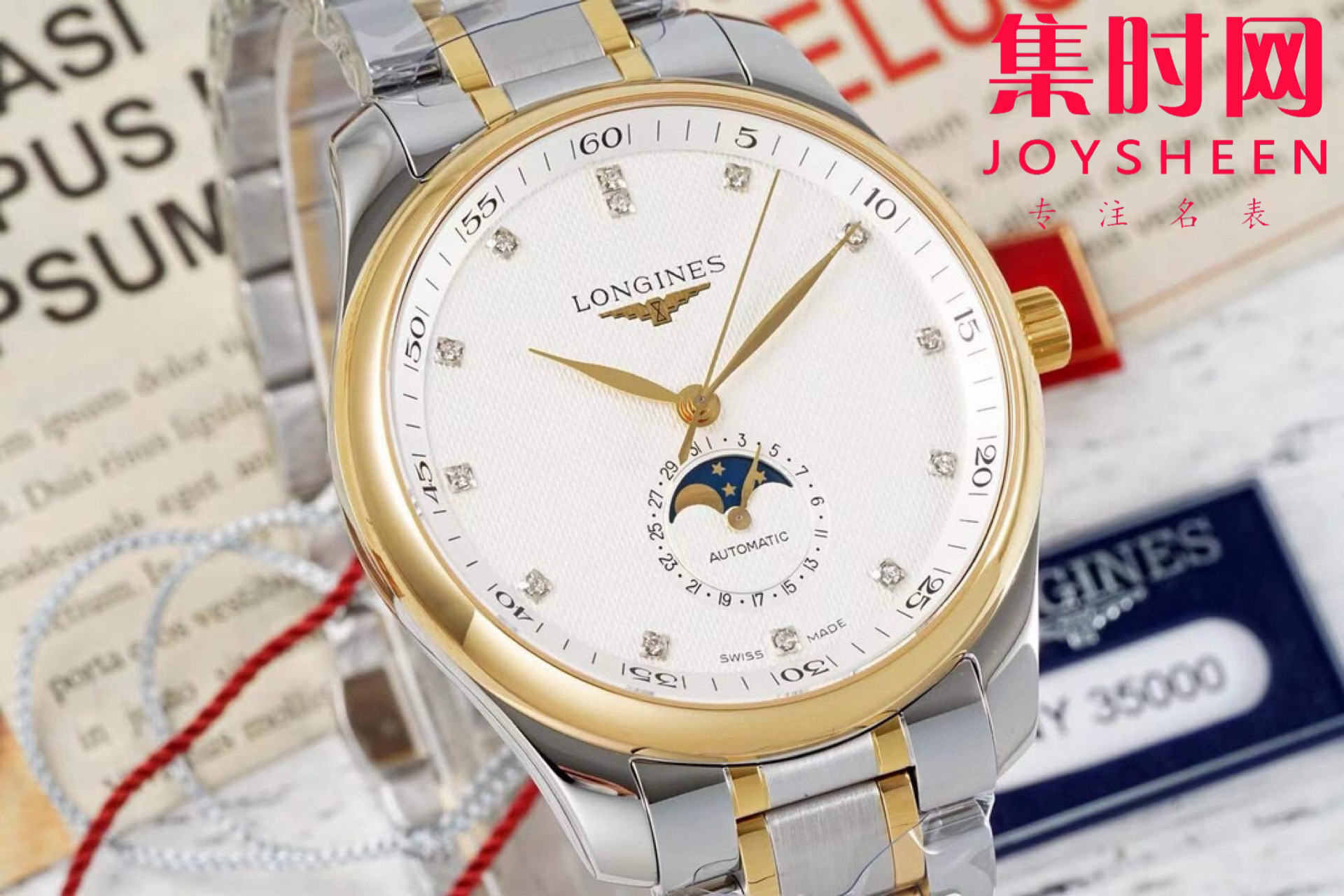 AF浪琴名匠月相系列 间金款 四针月相 名匠月相42mm 自动机械 男士腕表