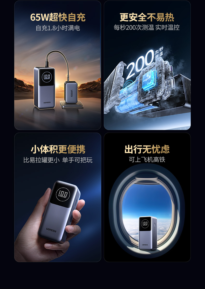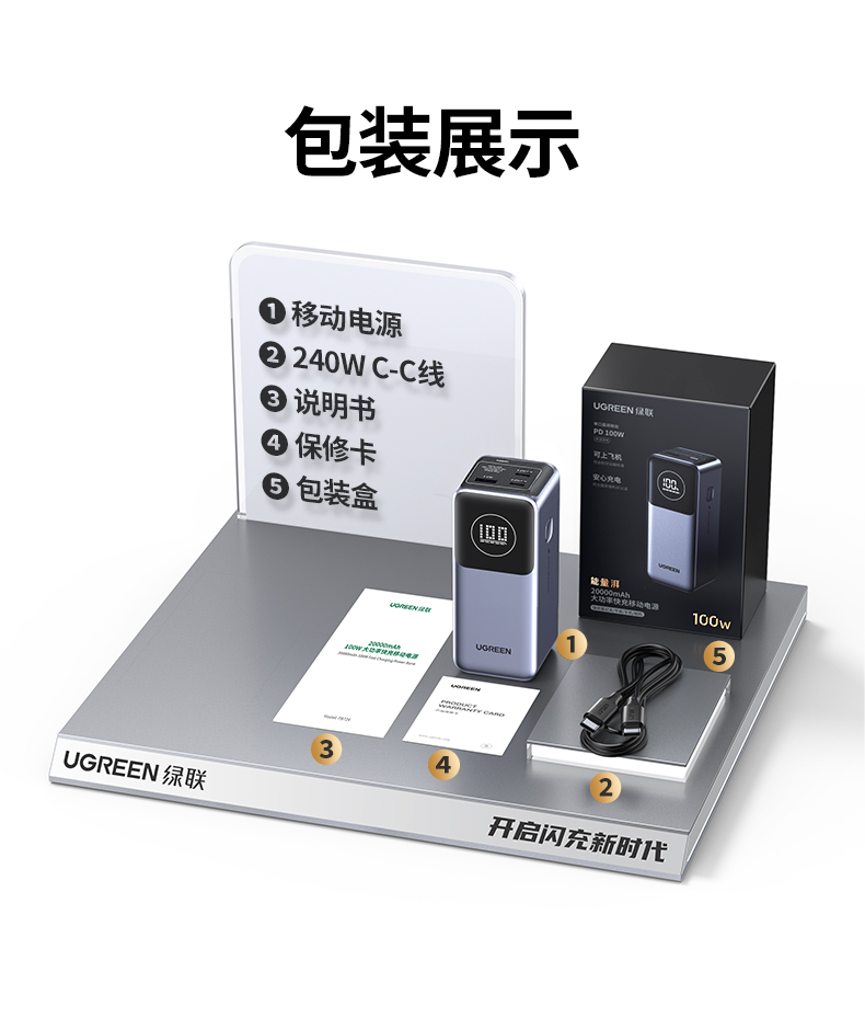 【充电宝3C认证可上飞机】[绿联]100W充电宝大容量20000毫安16适用苹果17快充移动电源