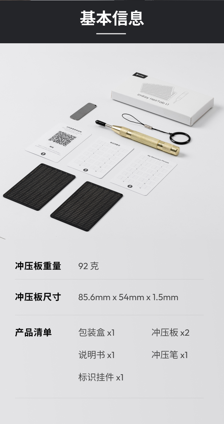【钱包必备】imKey冲压板L1, 助记词离线备份优选