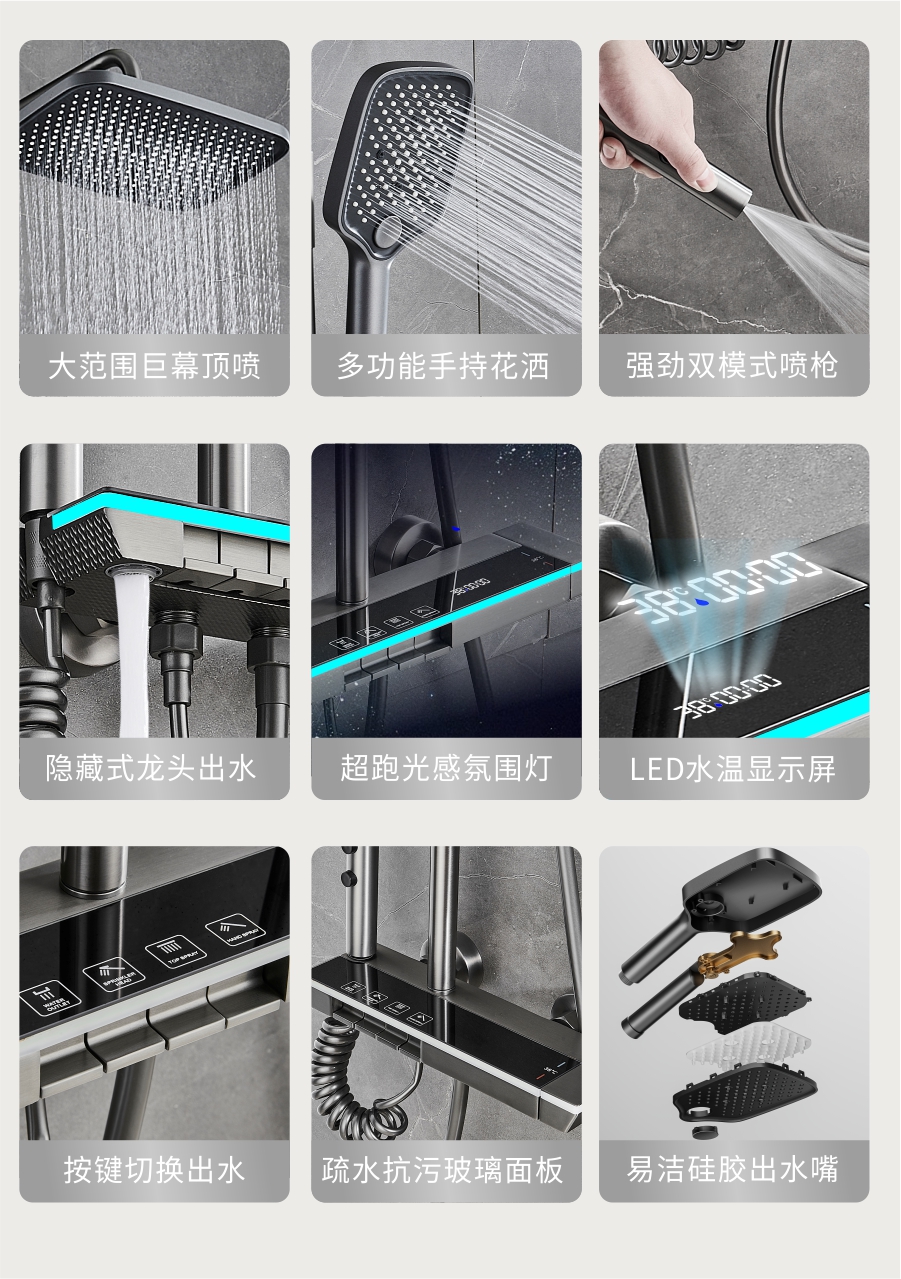 7385特洛伊全铜数显-水镀枪灰