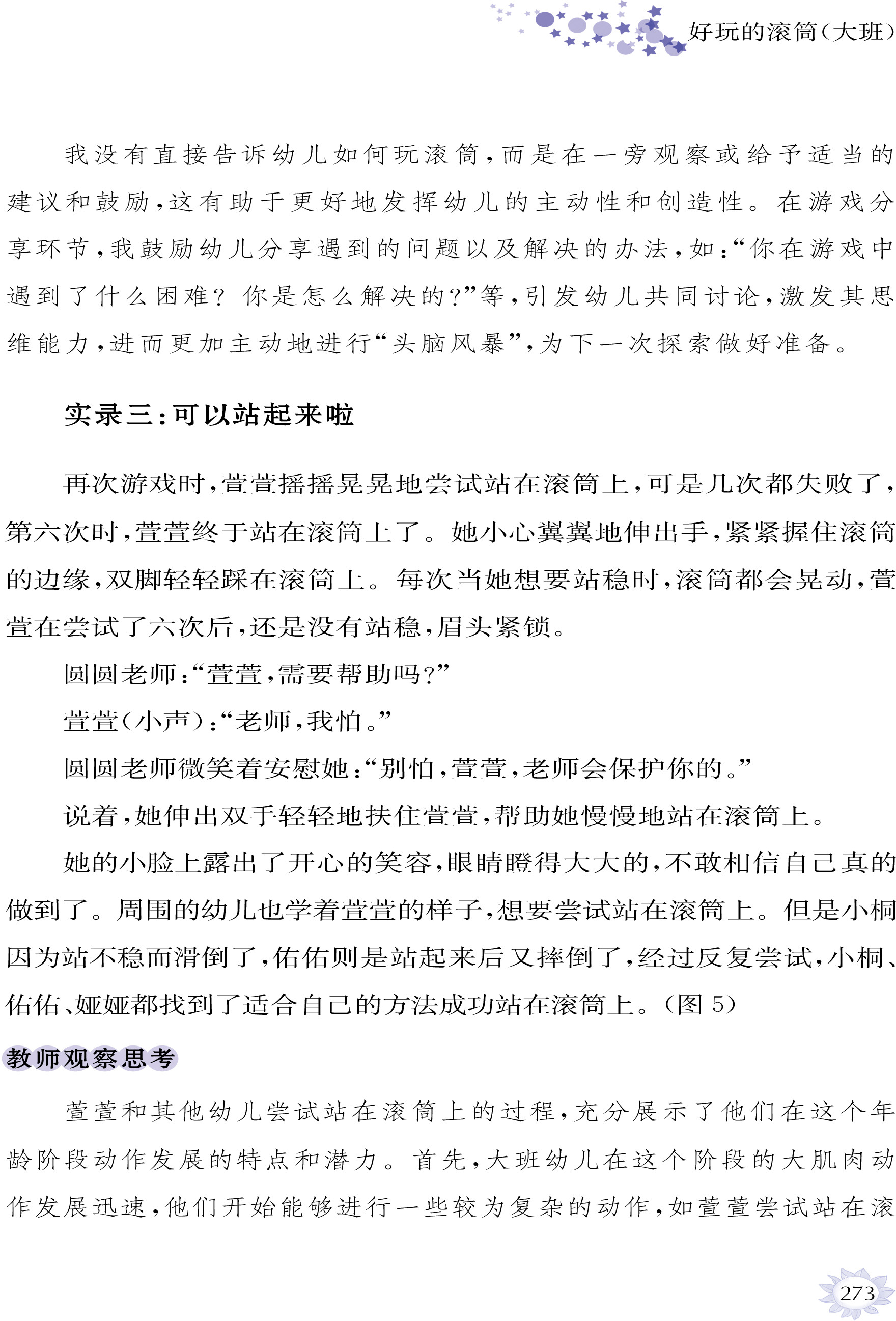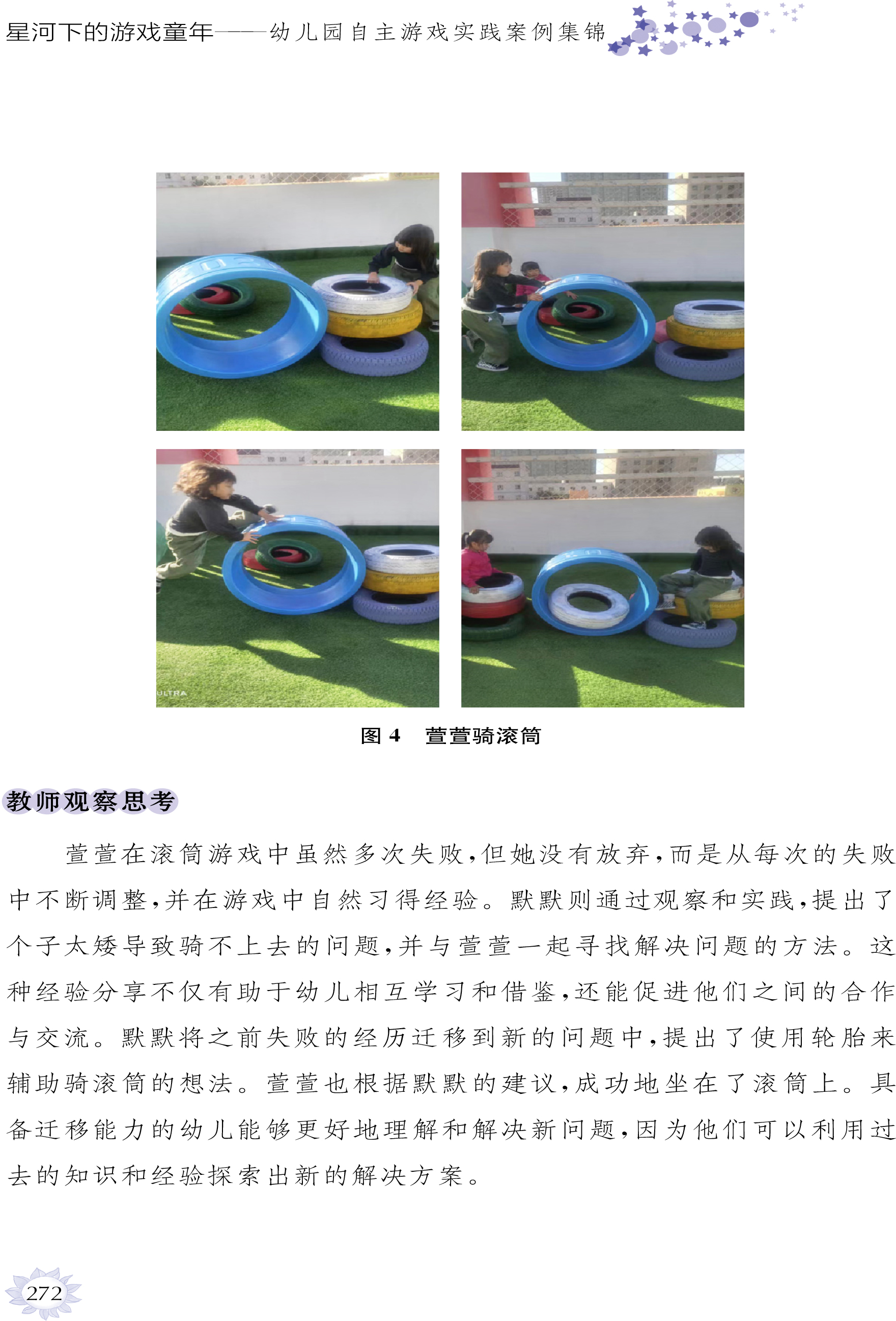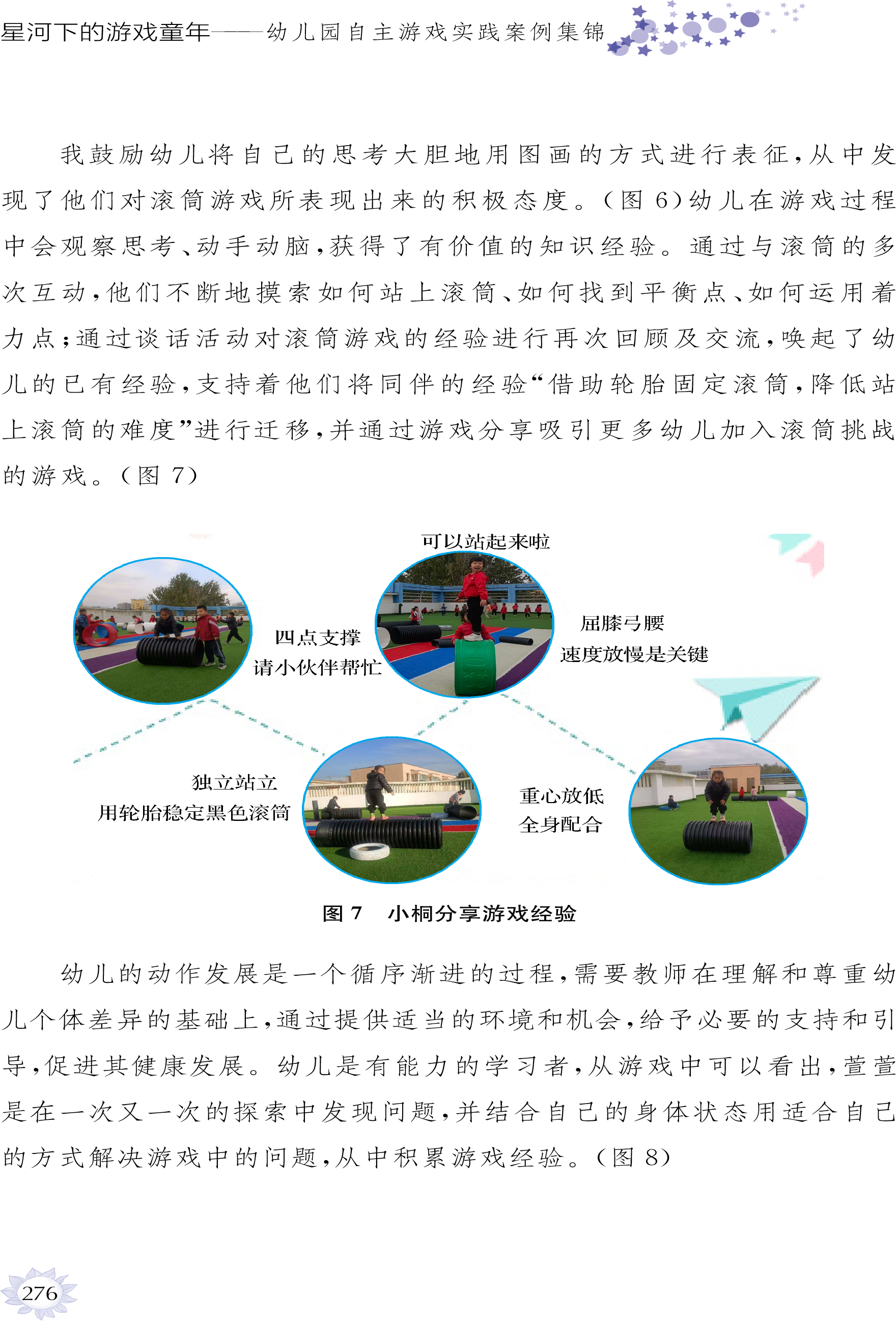 在这本游戏实践案例集锦中,一个个鲜活的游戏故事,每一张图片定格的专注神情,每一行文字描绘的探索轨迹和智慧火花,都在生动地诉说着幼儿如何在游戏中主动探究大自然和生活世界,在不断尝试、试错、迭代、重复中深度学习与全面发展。教师们敏锐地捕捉对游戏中幼儿深度学习与全面发展的支持情境、时机与条件,从环境创设的巧思到材料投放的巧妙,从情感共鸣的细腻到思维共享、经验拓展的深入,无不彰显着教师在“有准备的环境”与“有温度的支持”中师幼互动的智慧。