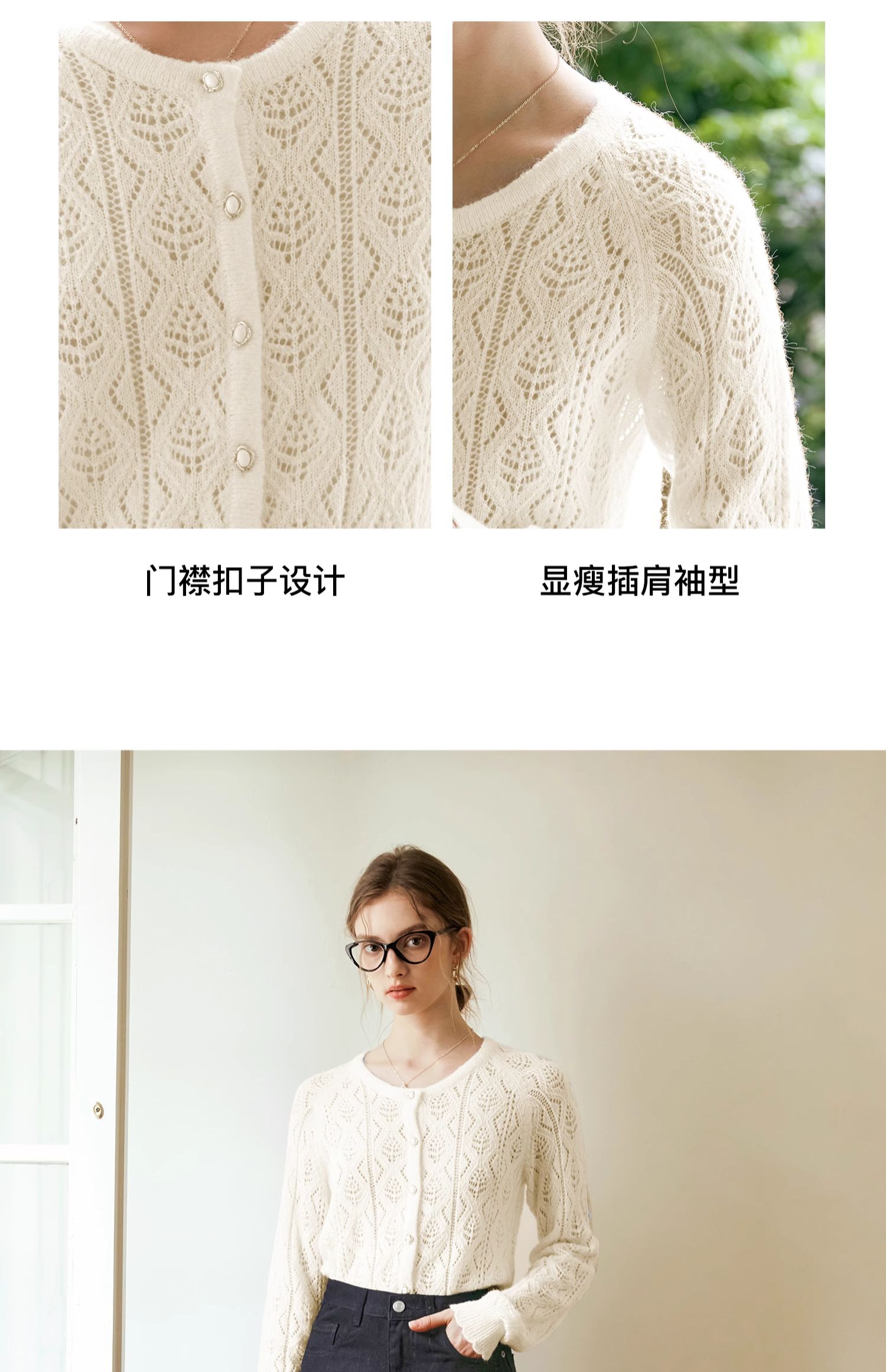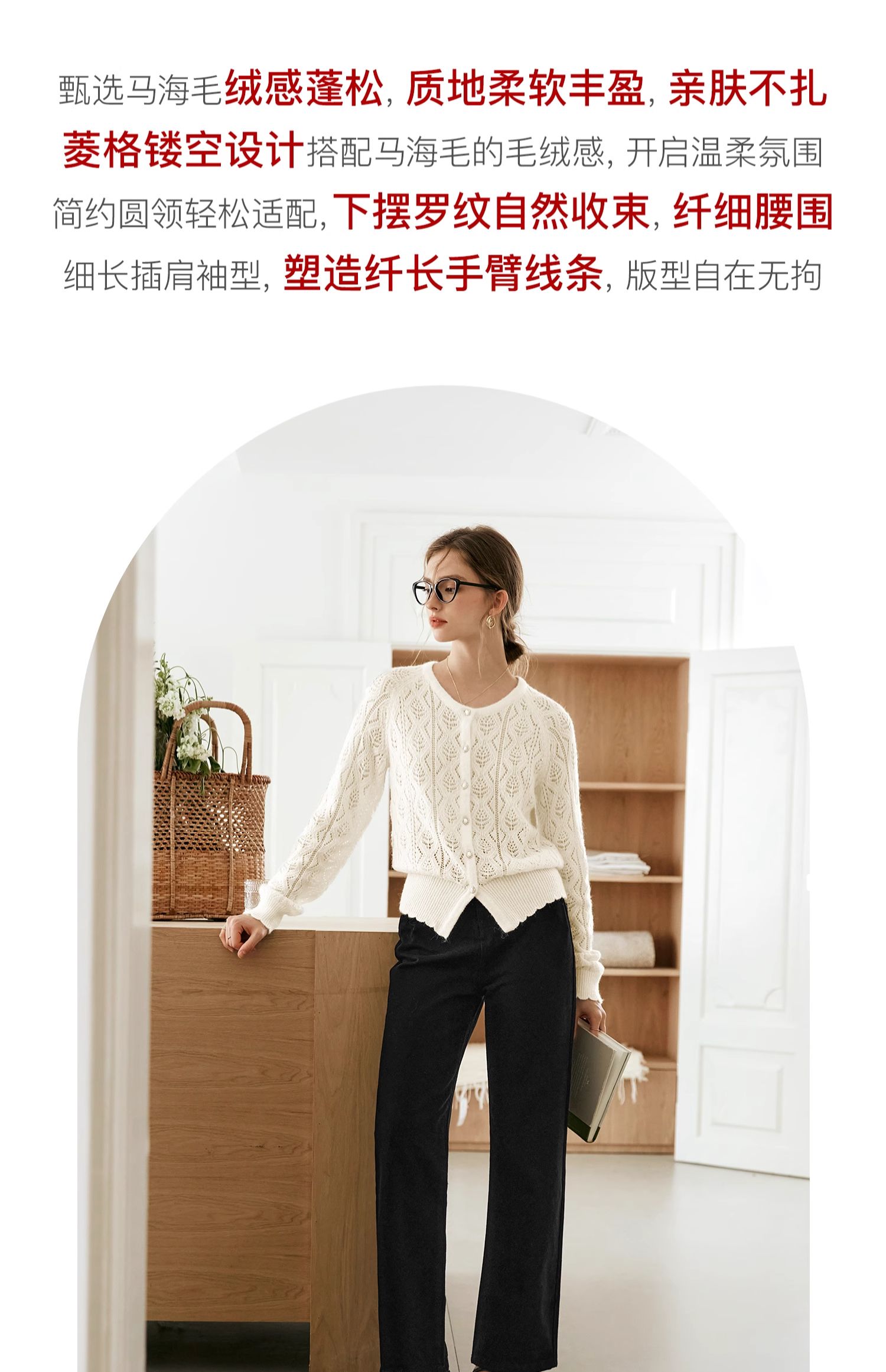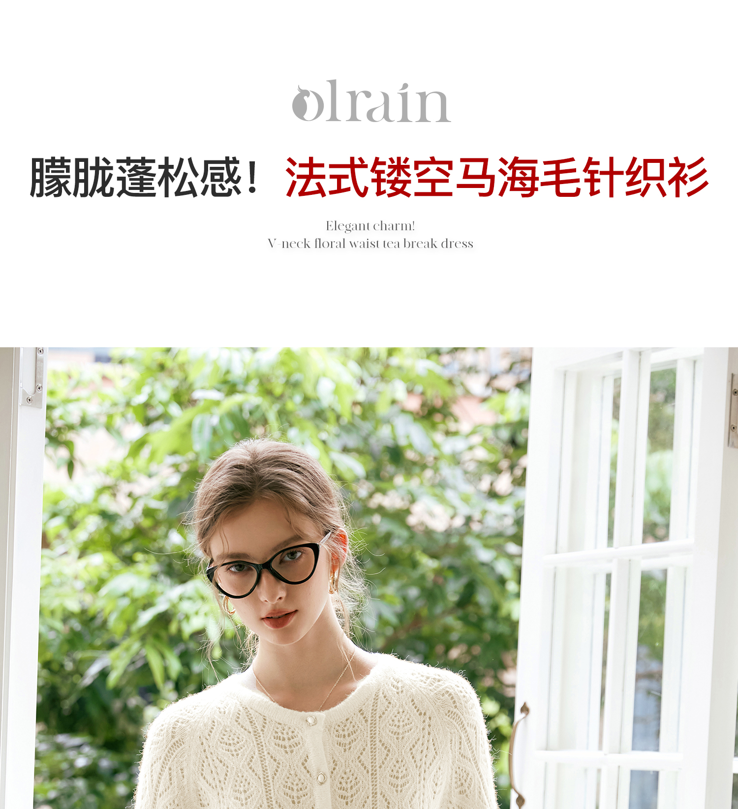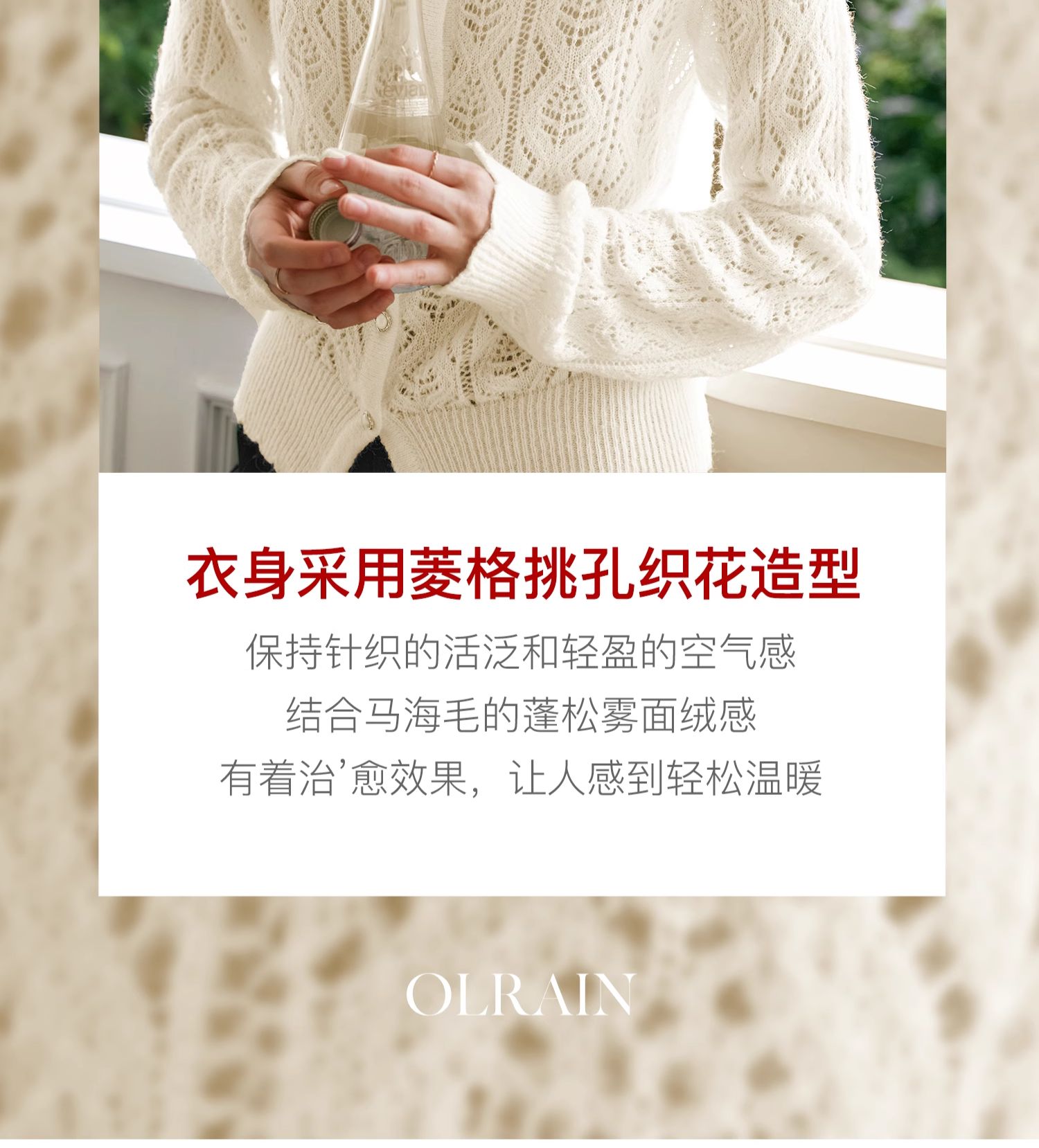 OLrain欧芮儿法式白色镂空针织开衫女秋季2024新款马海毛显瘦上衣