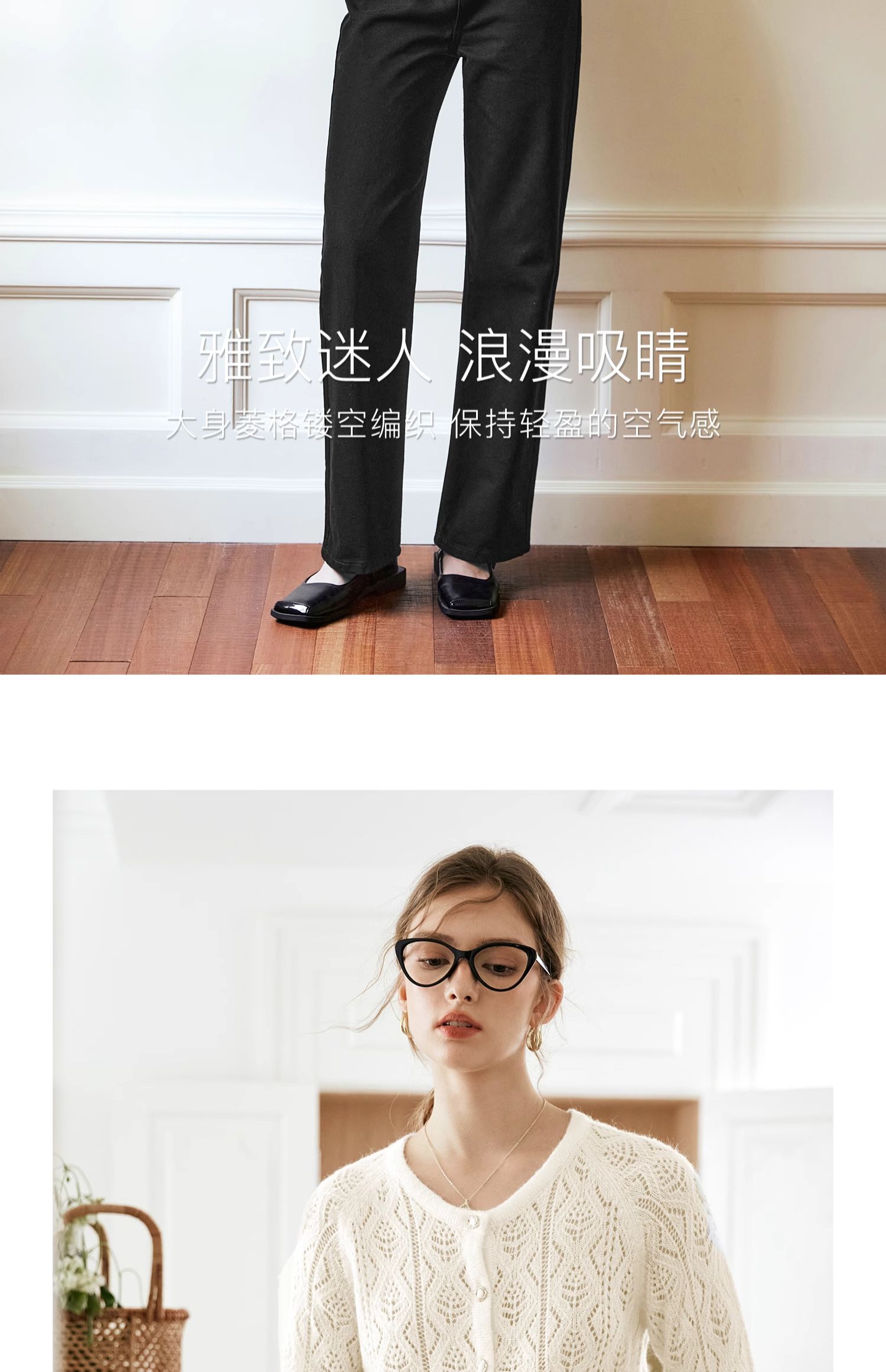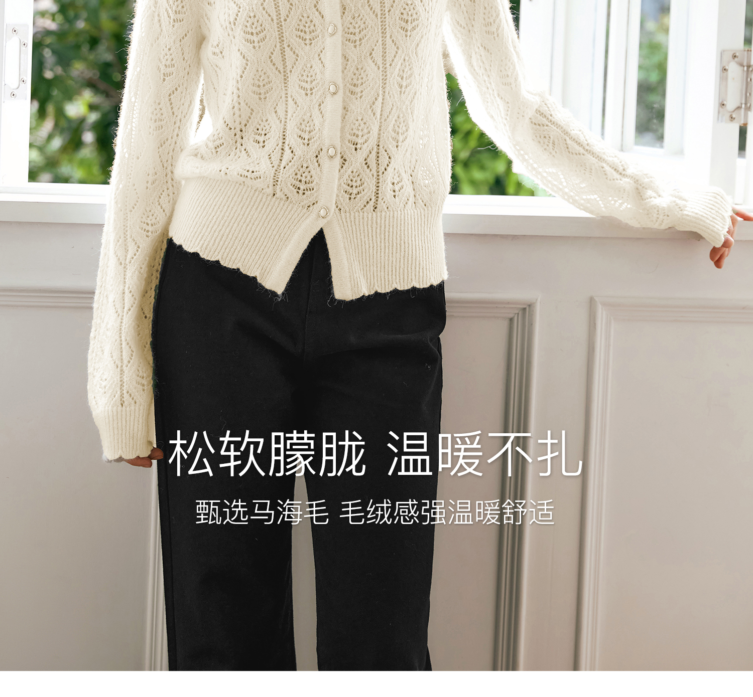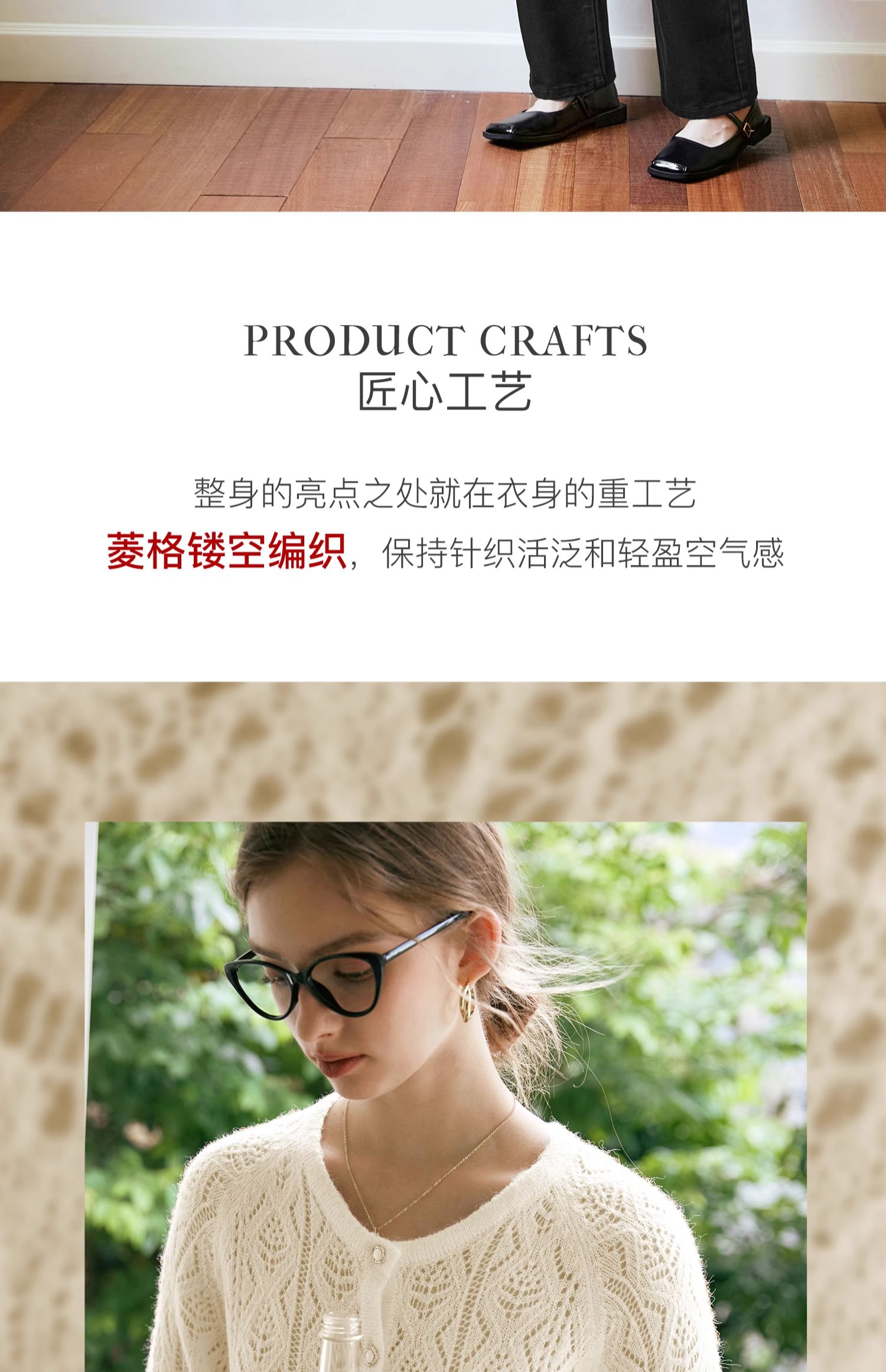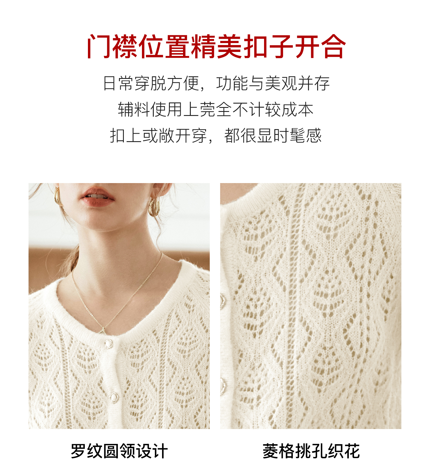 OLrain欧芮儿法式白色镂空针织开衫女秋季2024新款马海毛显瘦上衣
