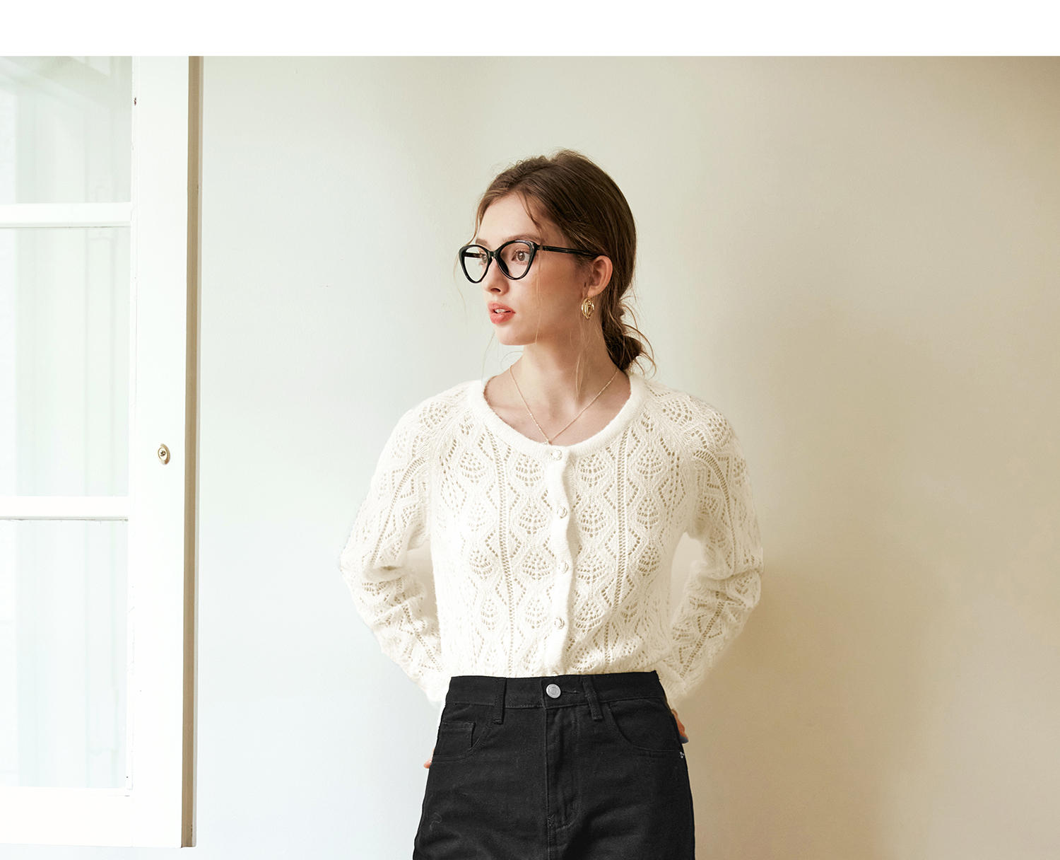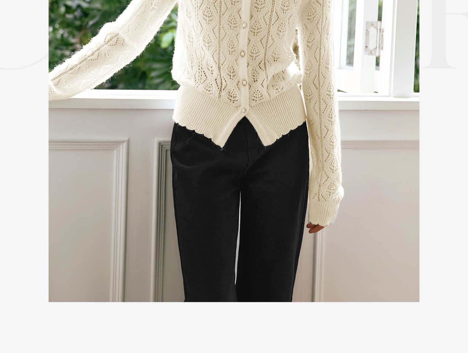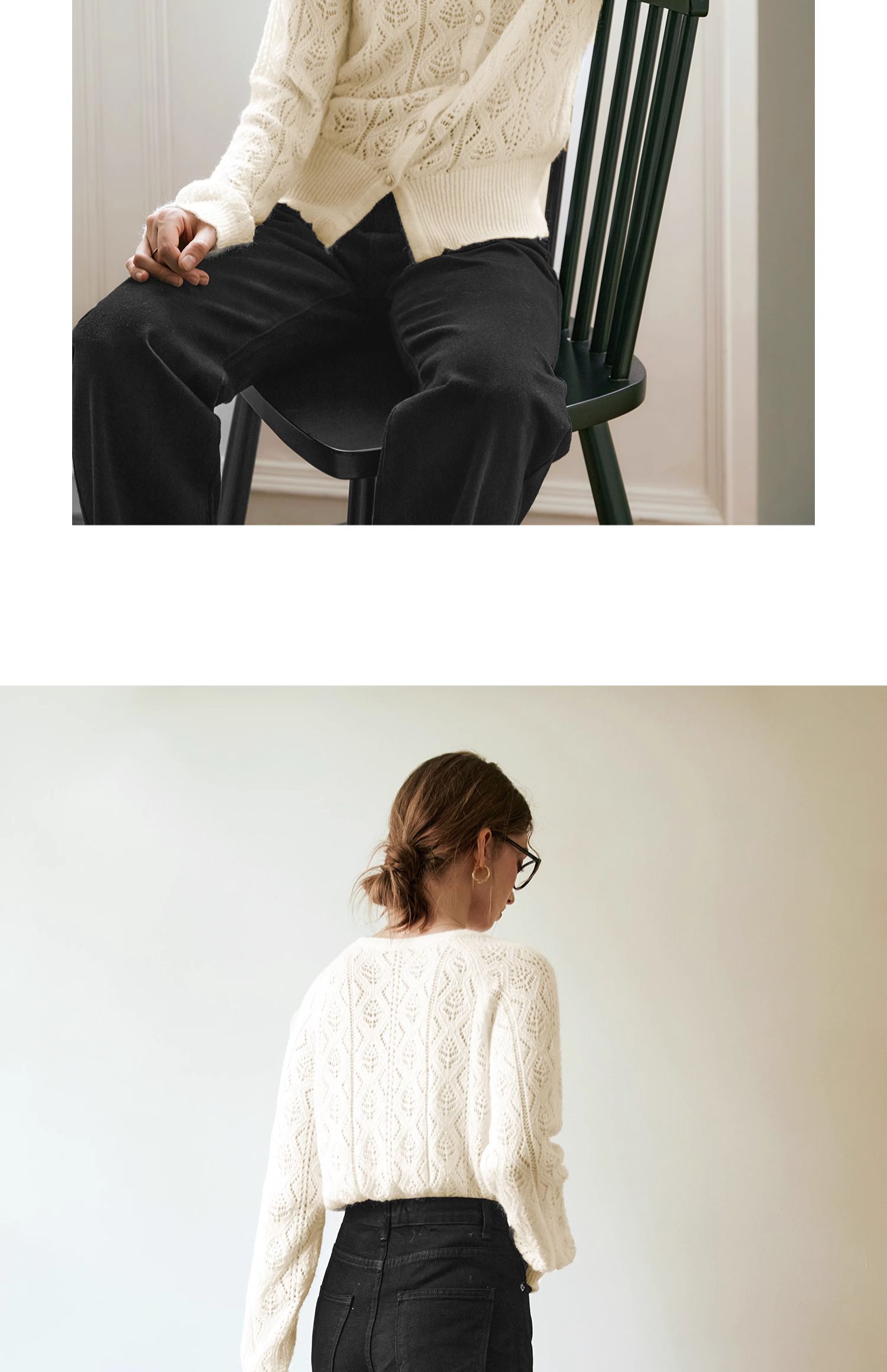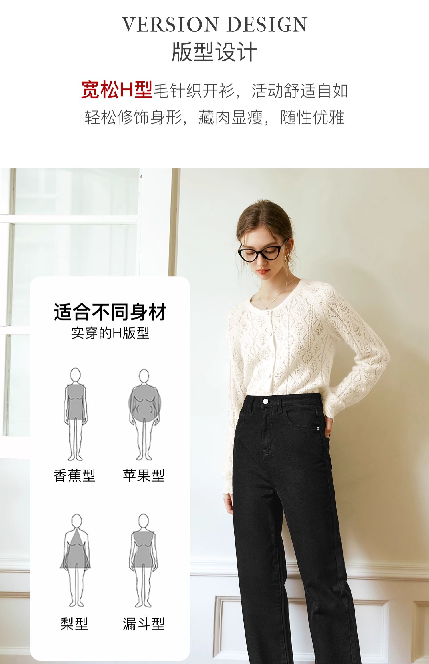 OLrain欧芮儿法式白色镂空针织开衫女秋季2024新款马海毛显瘦上衣