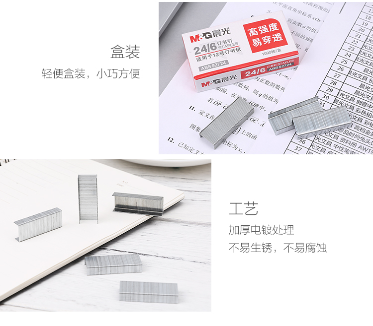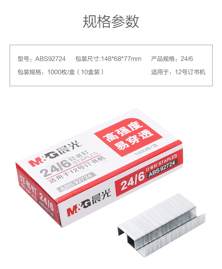 晨光(M&G)文具12#订书钉 高强度易穿透订书针 办公用品 1000枚/盒 10盒装ABS92724