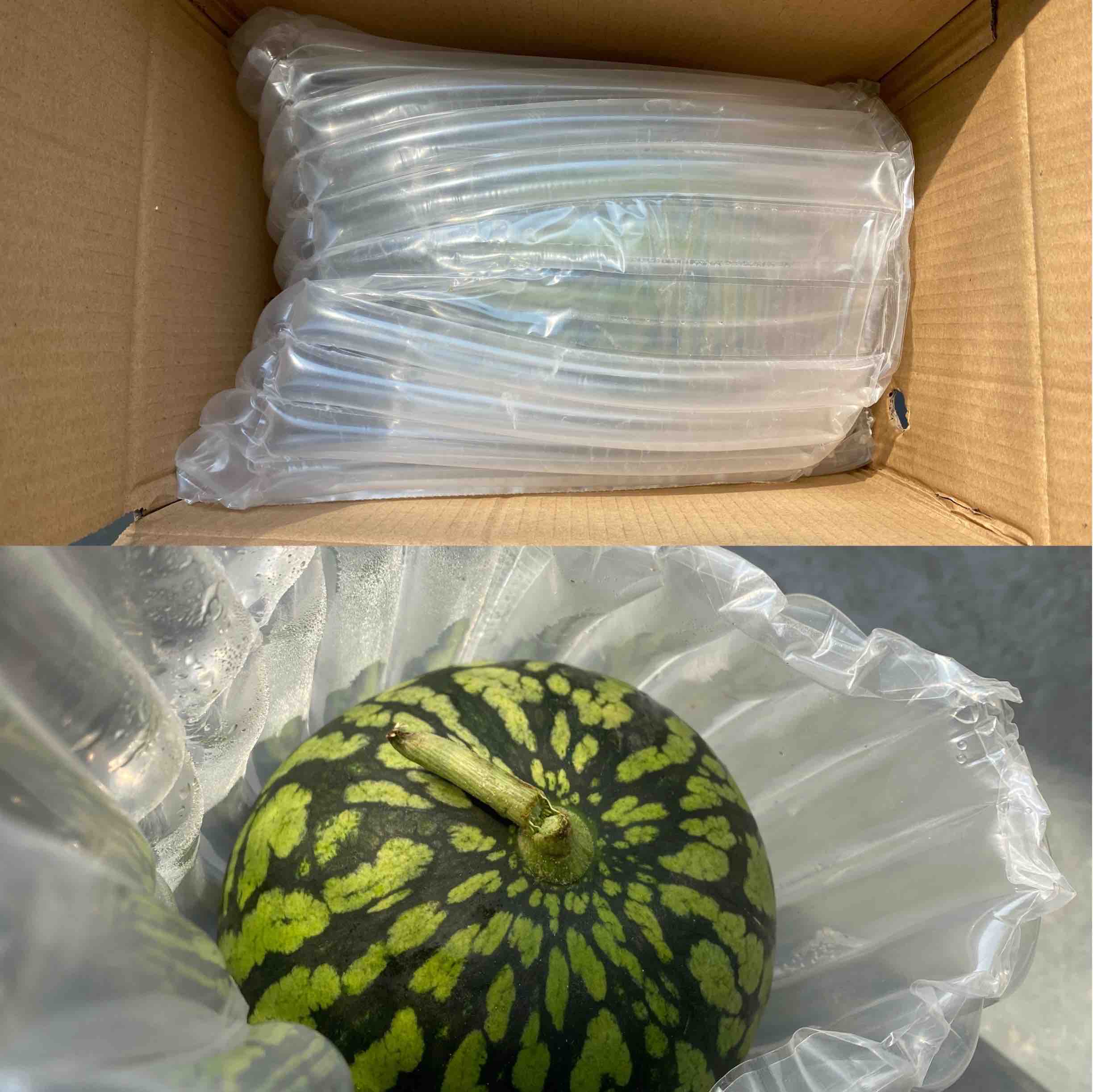 【基地直发】 山东珍珠红红瓤小西瓜,瓜皮翠绿,果肉红艳,皮薄且脆,可以徒手剥皮,吊瓜种植,净重4.5-5斤/2枚礼盒装