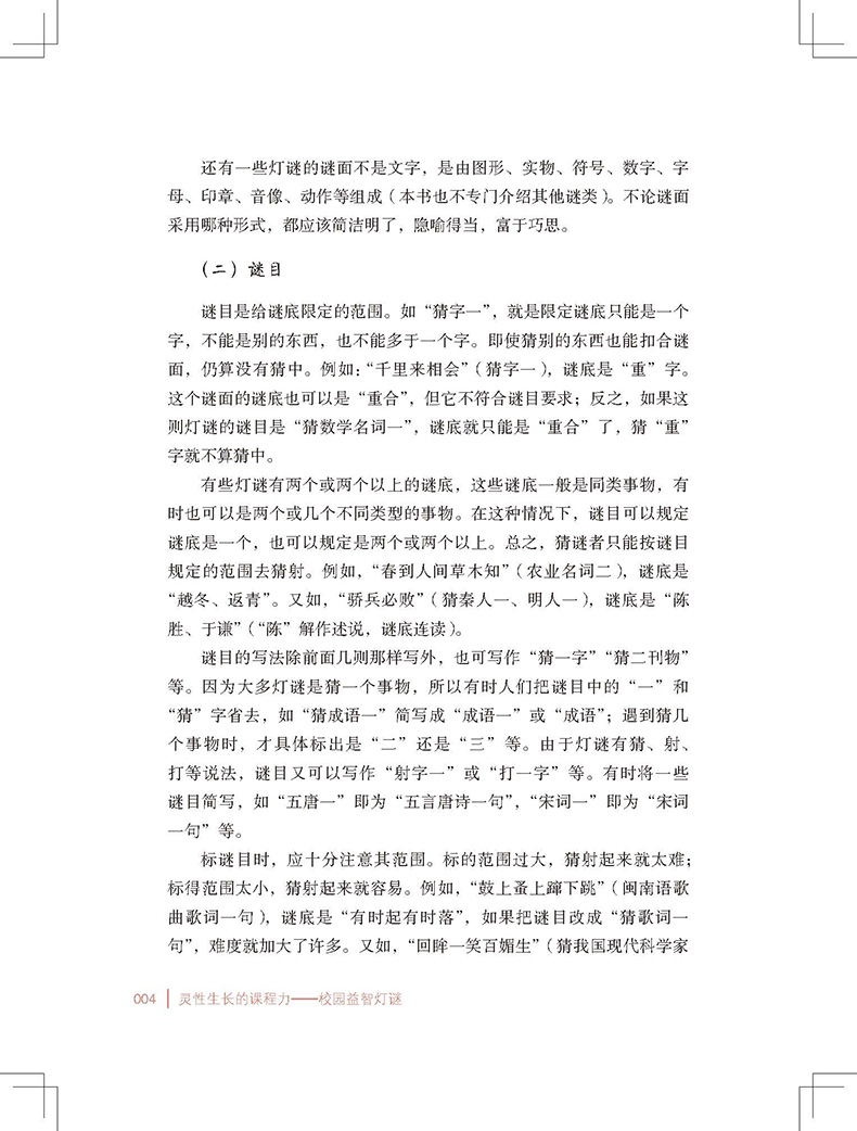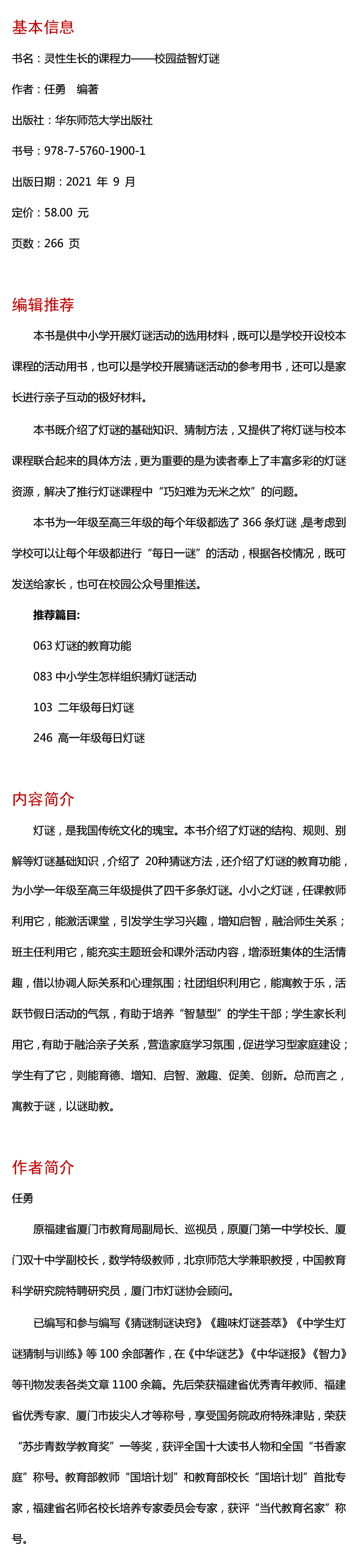 灵性生长的课程力 校园益智灯谜 任勇 编著 基础知识 猜制方法 中小学 每日一谜 共4000余则