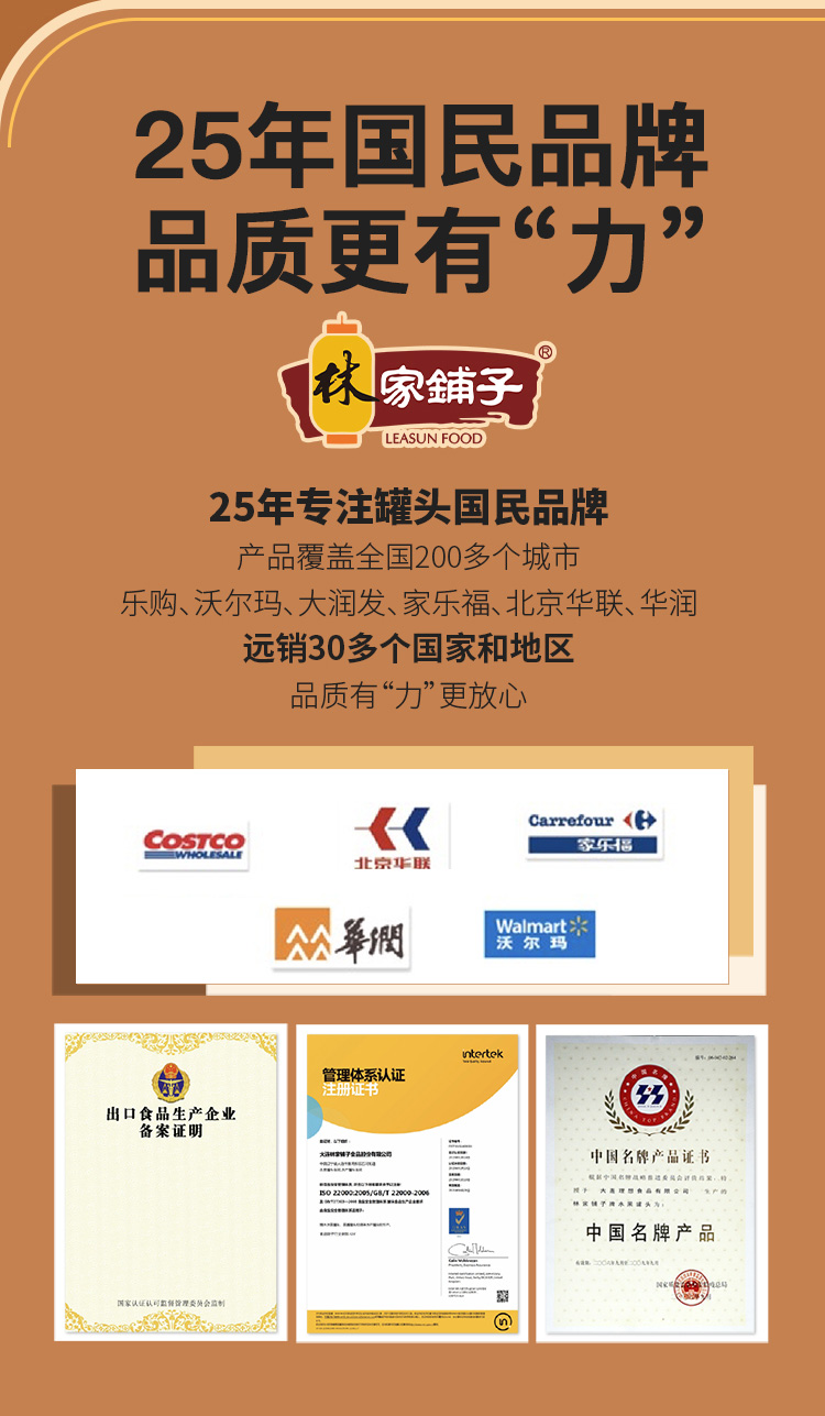 大连林家铺子食品股份有限公司成立于1996年,是中国知名及东北地区最大的罐头生产商、出口商。公司坚持“赋予产品以文化,做世界上最好的罐头”,不断最求高品质打造成年轻人也爱吃的国民零食