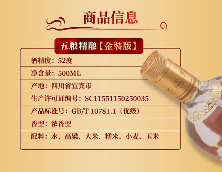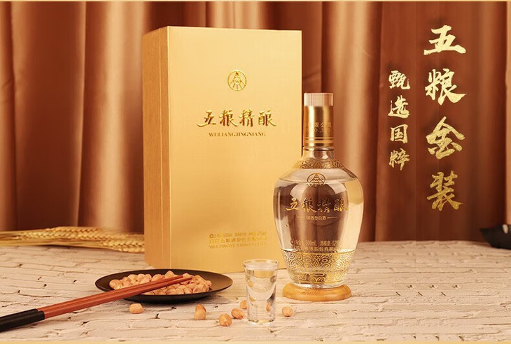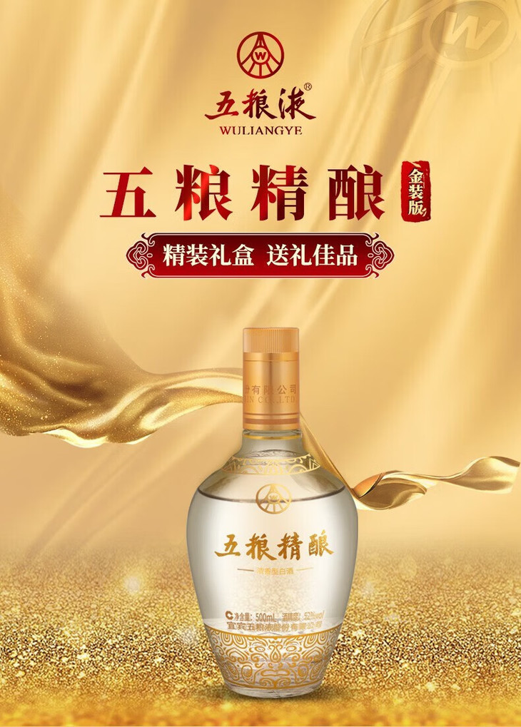 五粮液股份 五粮精酿 拉丝金 浓香型白酒 52度 500ml*1瓶