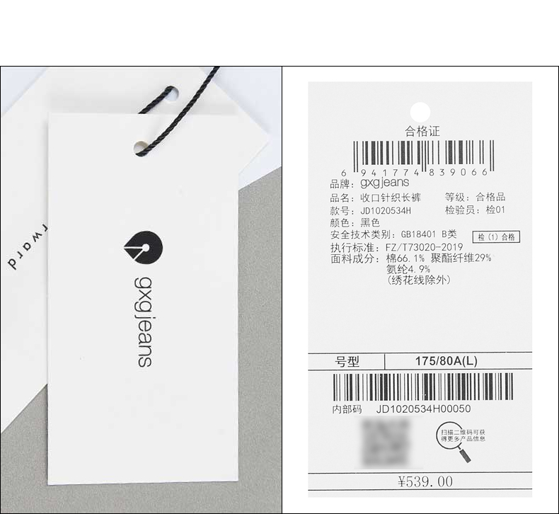 gxgjeans男装秋季休闲裤束脚运动长裤潮流卫裤