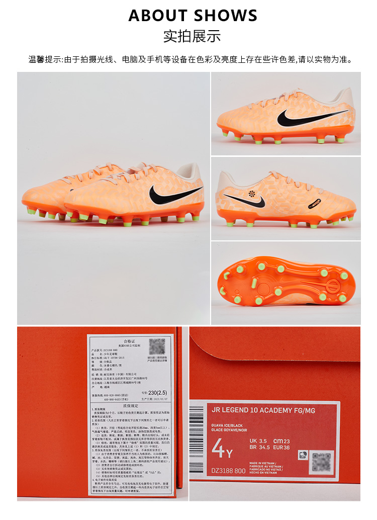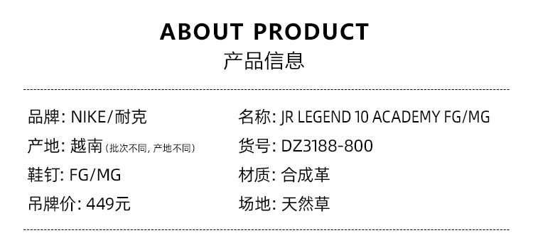 SFS耐克Nike正品传奇10混钉FG/AG儿童天然草低帮足球鞋DZ3188-800