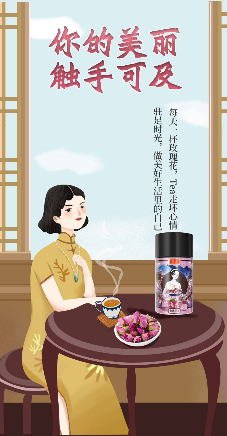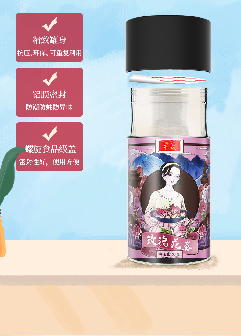 庄民 玫瑰花茶 香味浓郁 精选好货 干花茶叶花草茶50g/罐