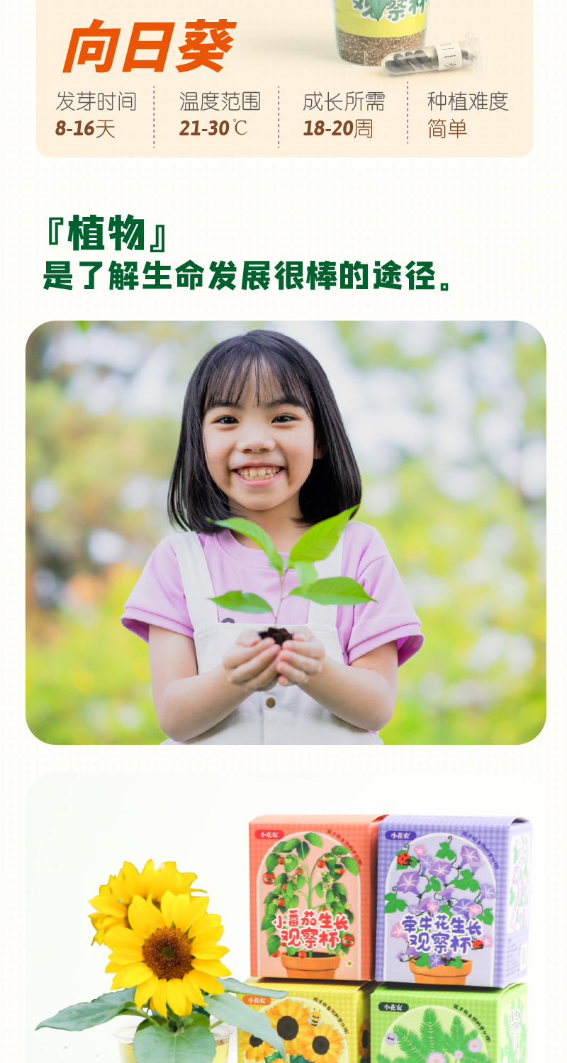 小花农植物观察杯儿童学生益智科教玩具蔬果植物花卉观察