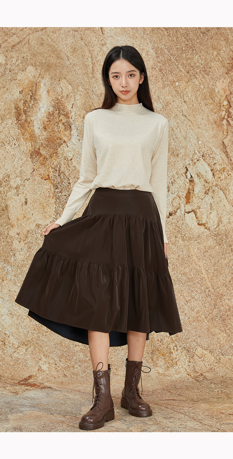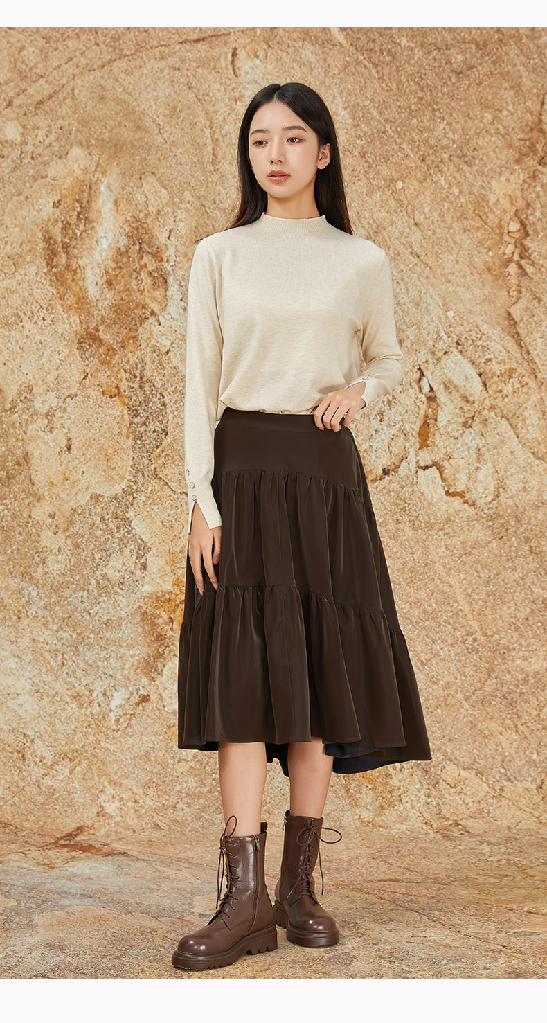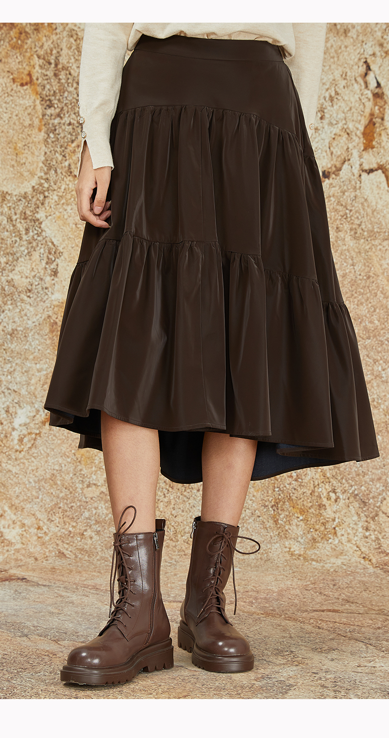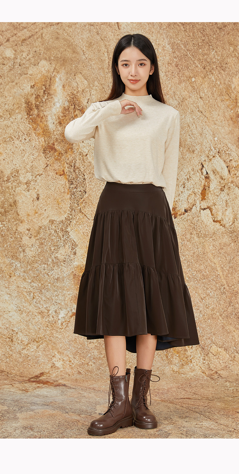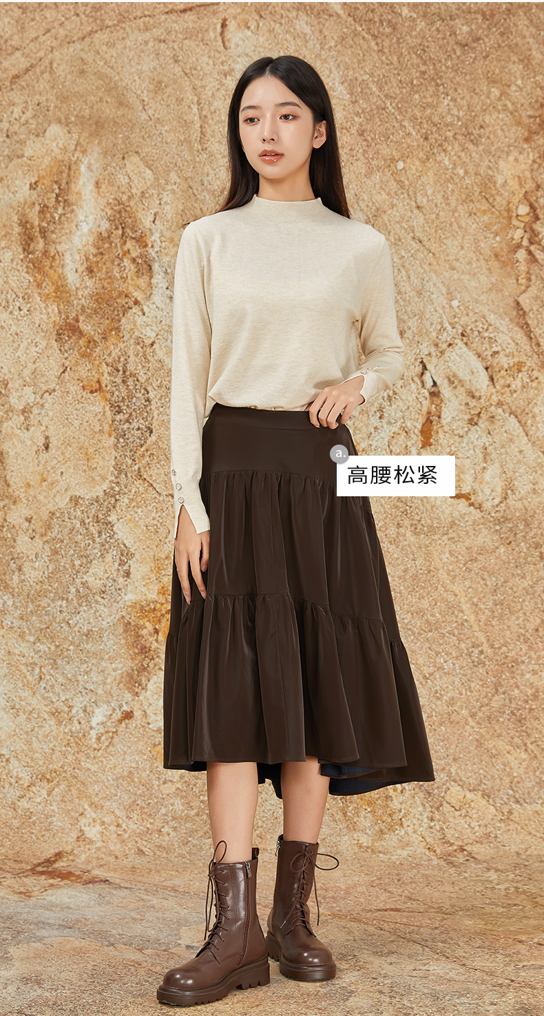 NUTS商场同款秋冬季复古高腰A字显瘦百搭长款半身褶裙女344061092