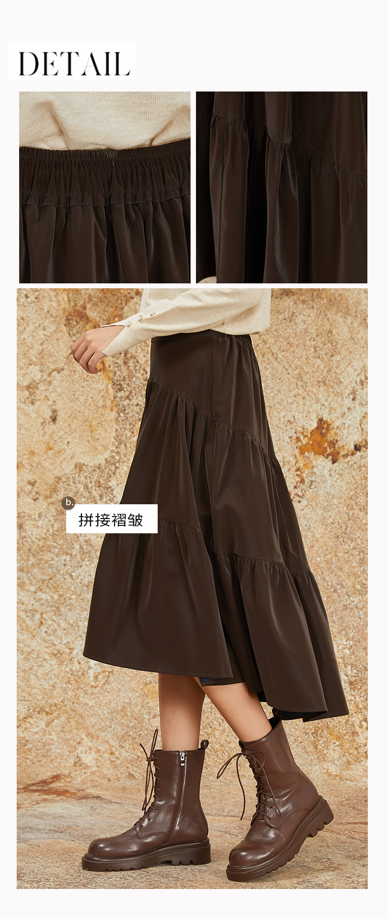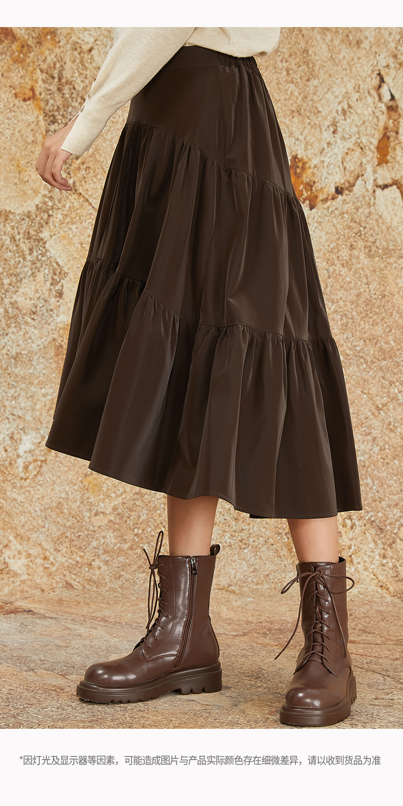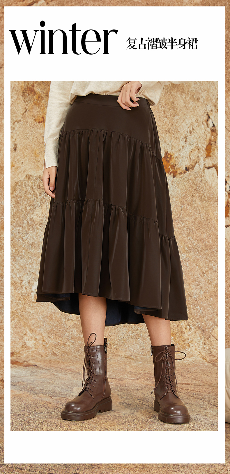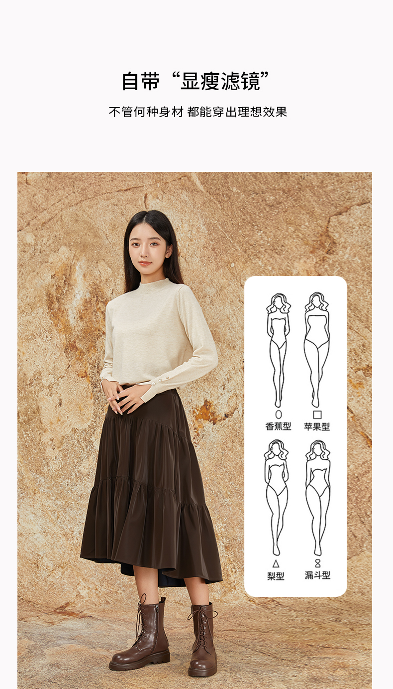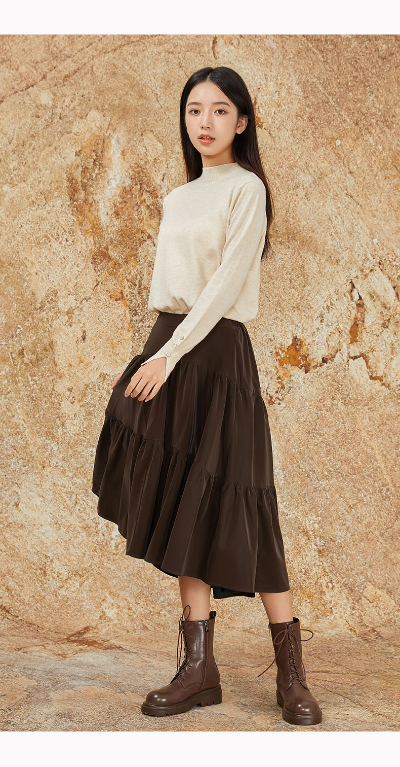 NUTS商场同款秋冬季复古高腰A字显瘦百搭长款半身褶裙女344061092