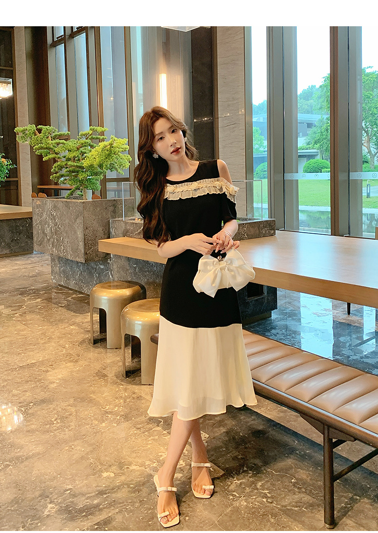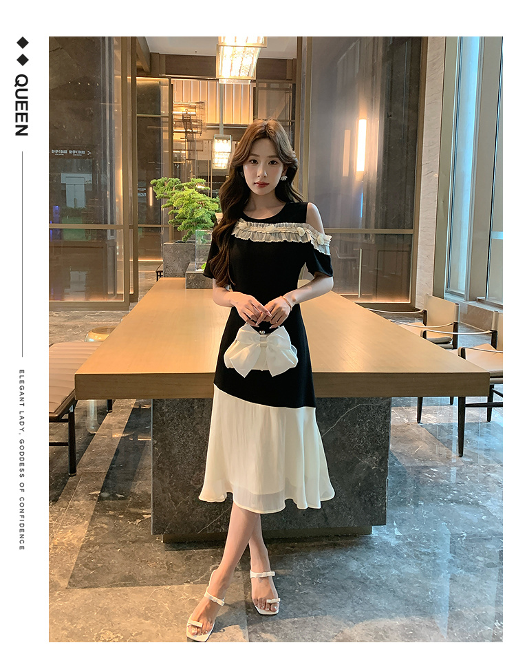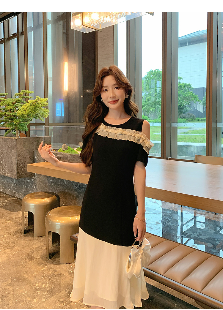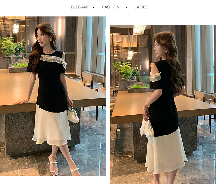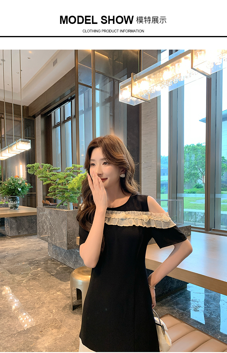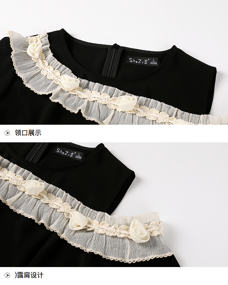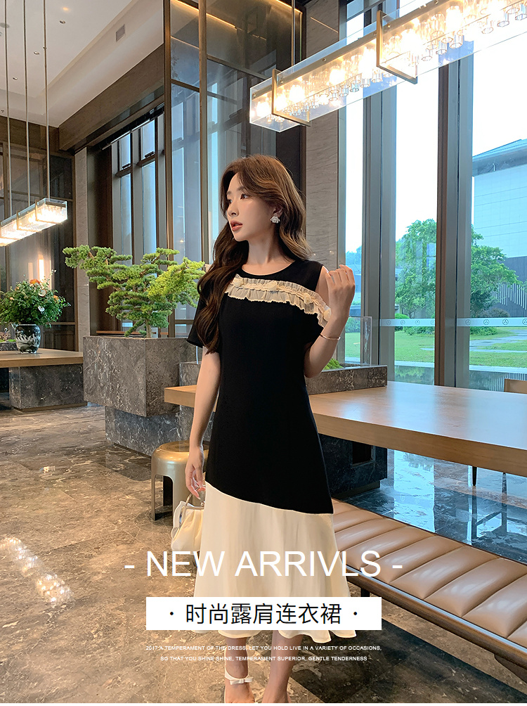 奢姿大码女装2025夏季减龄花边拼接设计连衣裙胖妹妹时尚露肩裙子9952890448