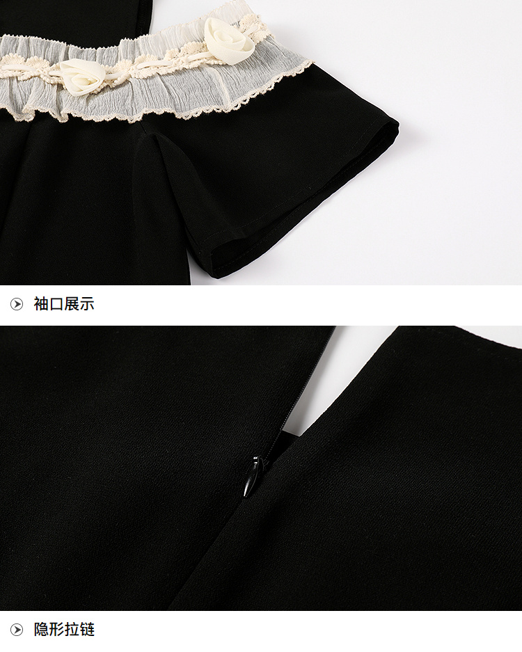 奢姿大码女装2026夏季木耳边拼接翻领连衣裙胖妹妹时尚千金风裙子9962872182