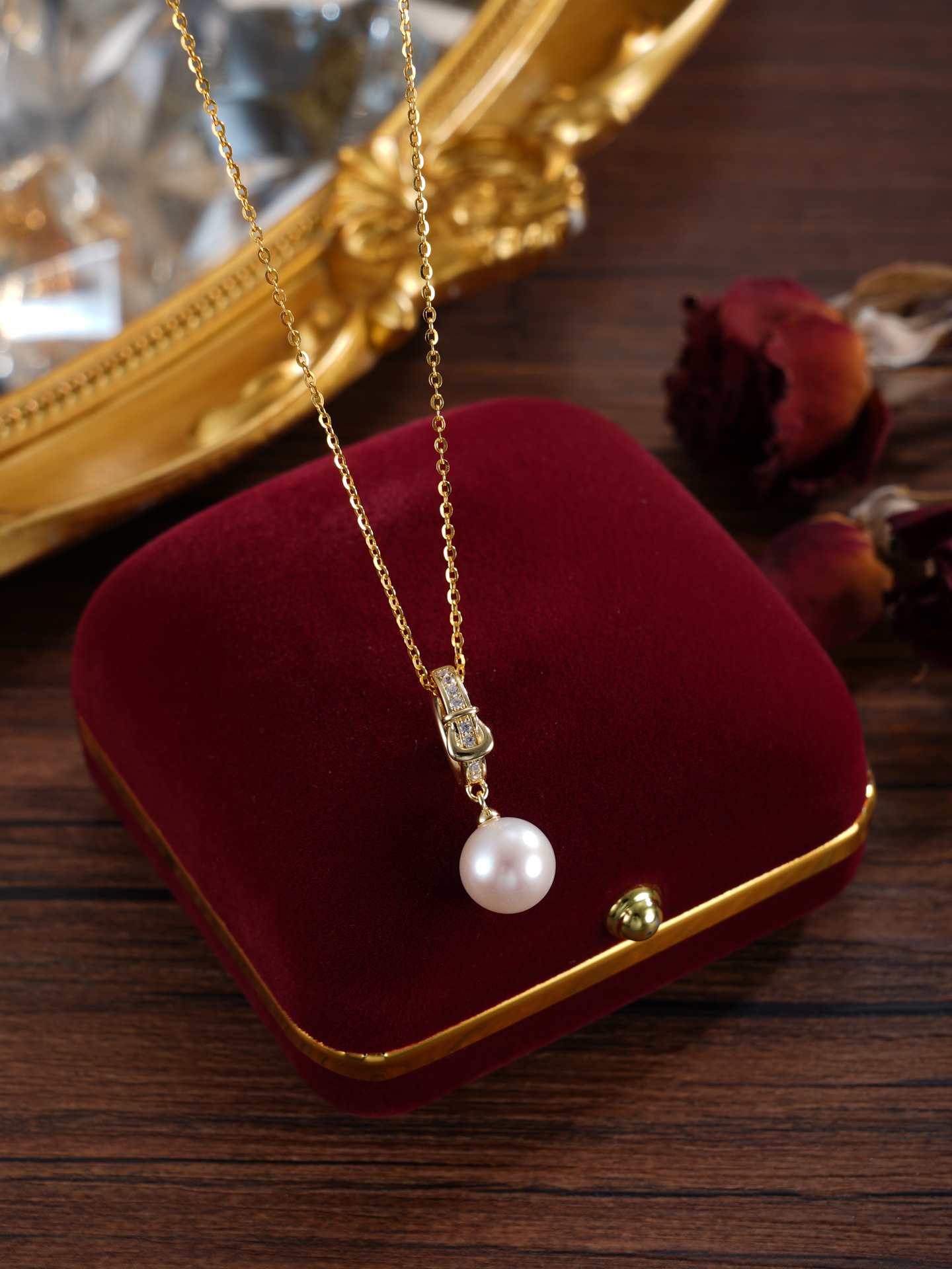 子佩集【羁绊之扣】银S925珍珠惜王妃吊坠【PM2109-XF】8.8mm珠镀金皮带扣吊球(不含链)2601