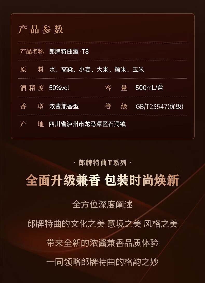 50度郎酒郎牌特曲 T8兼香型1*500ML白酒