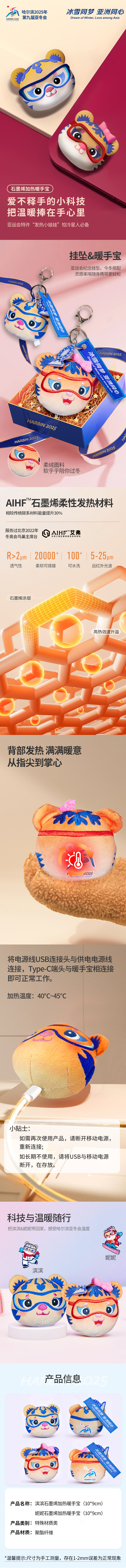 哈尔滨2025年亚冬会吉祥物滨滨妮妮石墨烯加热暖手宝 妮妮石墨烯加热暖手宝