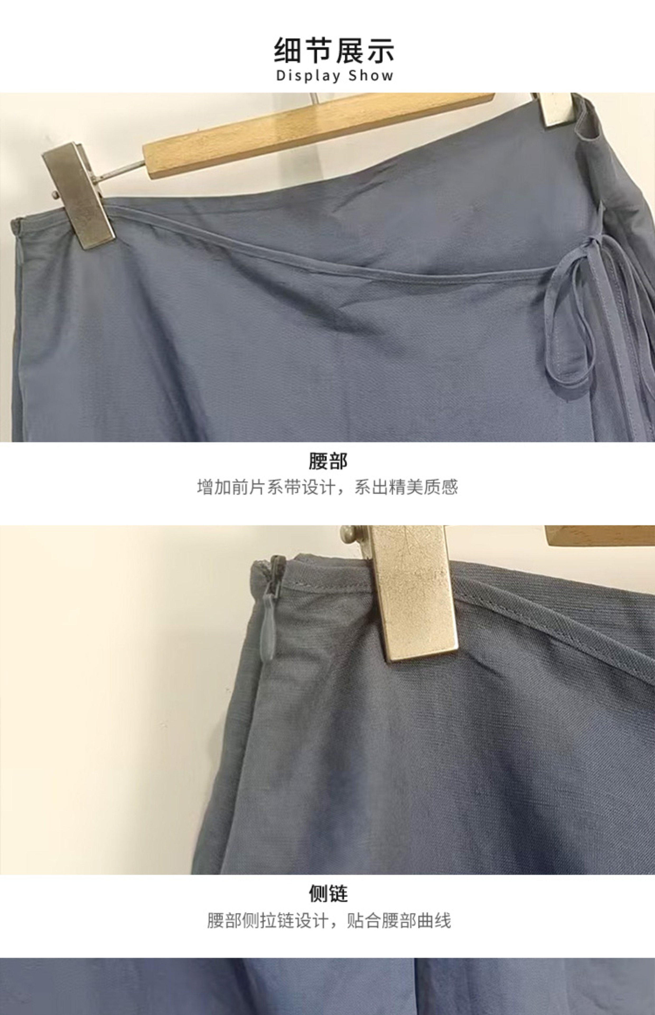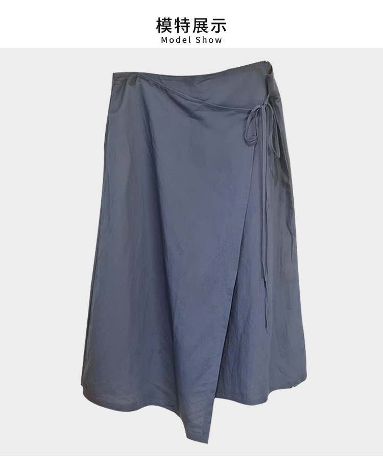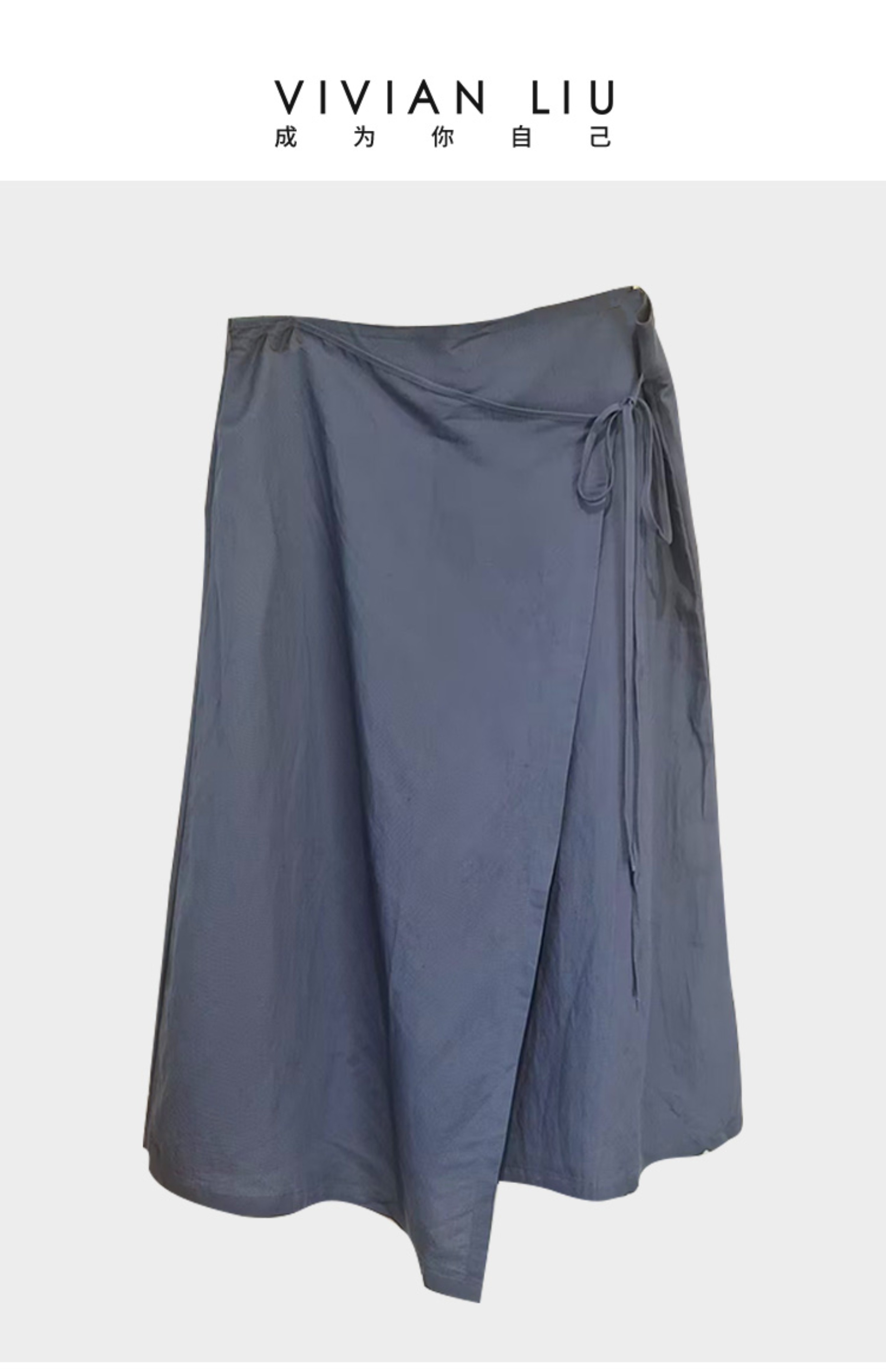 VIVIAN LIU R2424002新款时尚侧拉链前片系带不规则下摆半裙