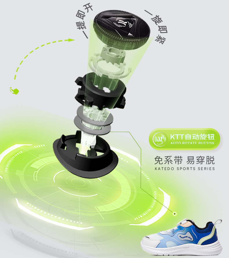 卡特兔旋转纽扣童鞋男童运动鞋2023秋款儿童篮球鞋女童跑步鞋