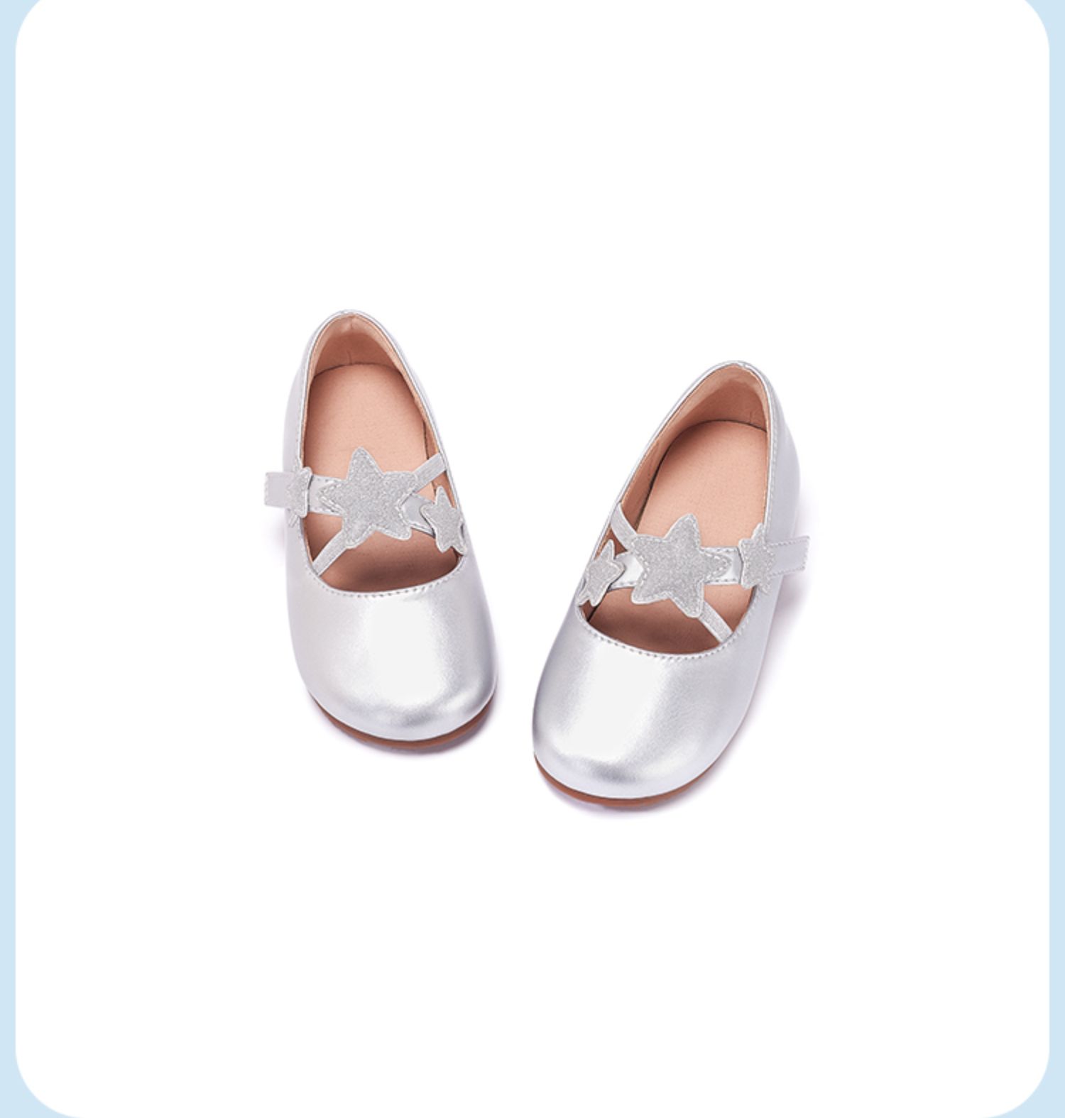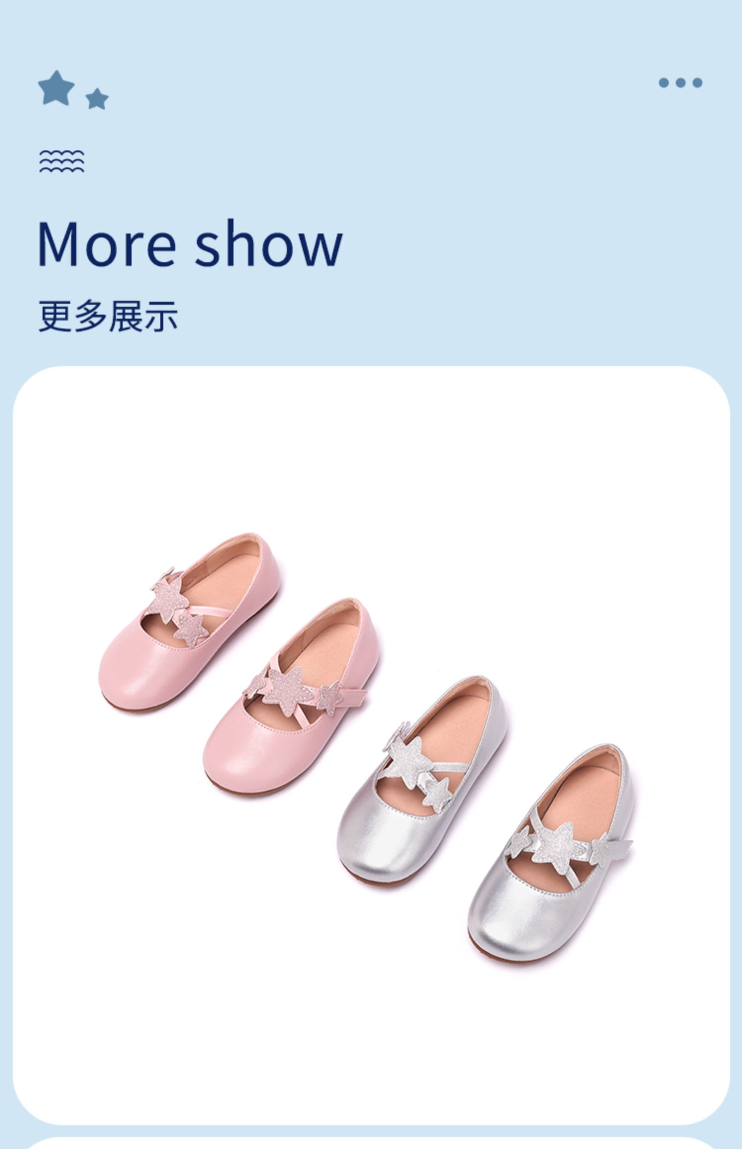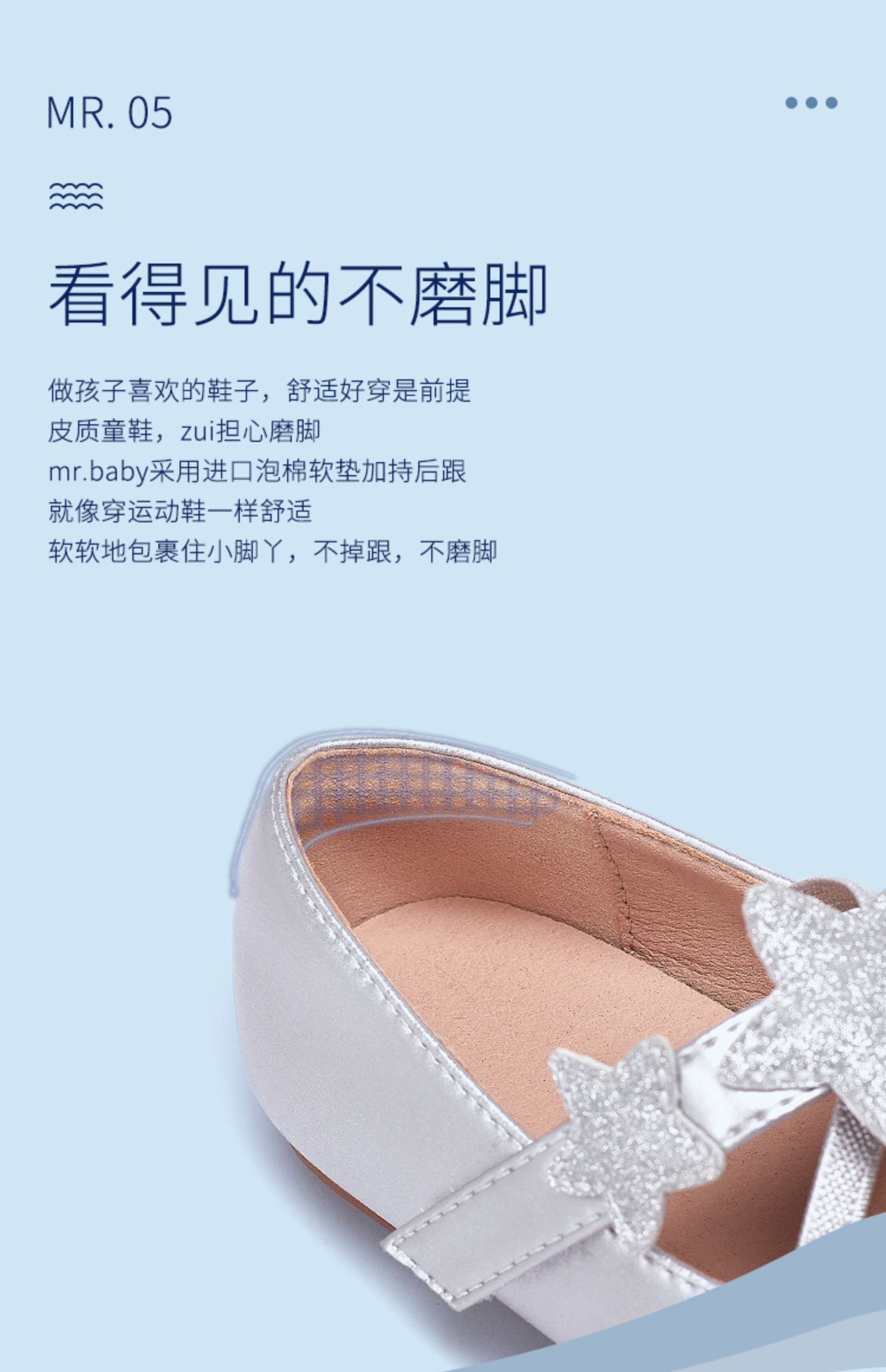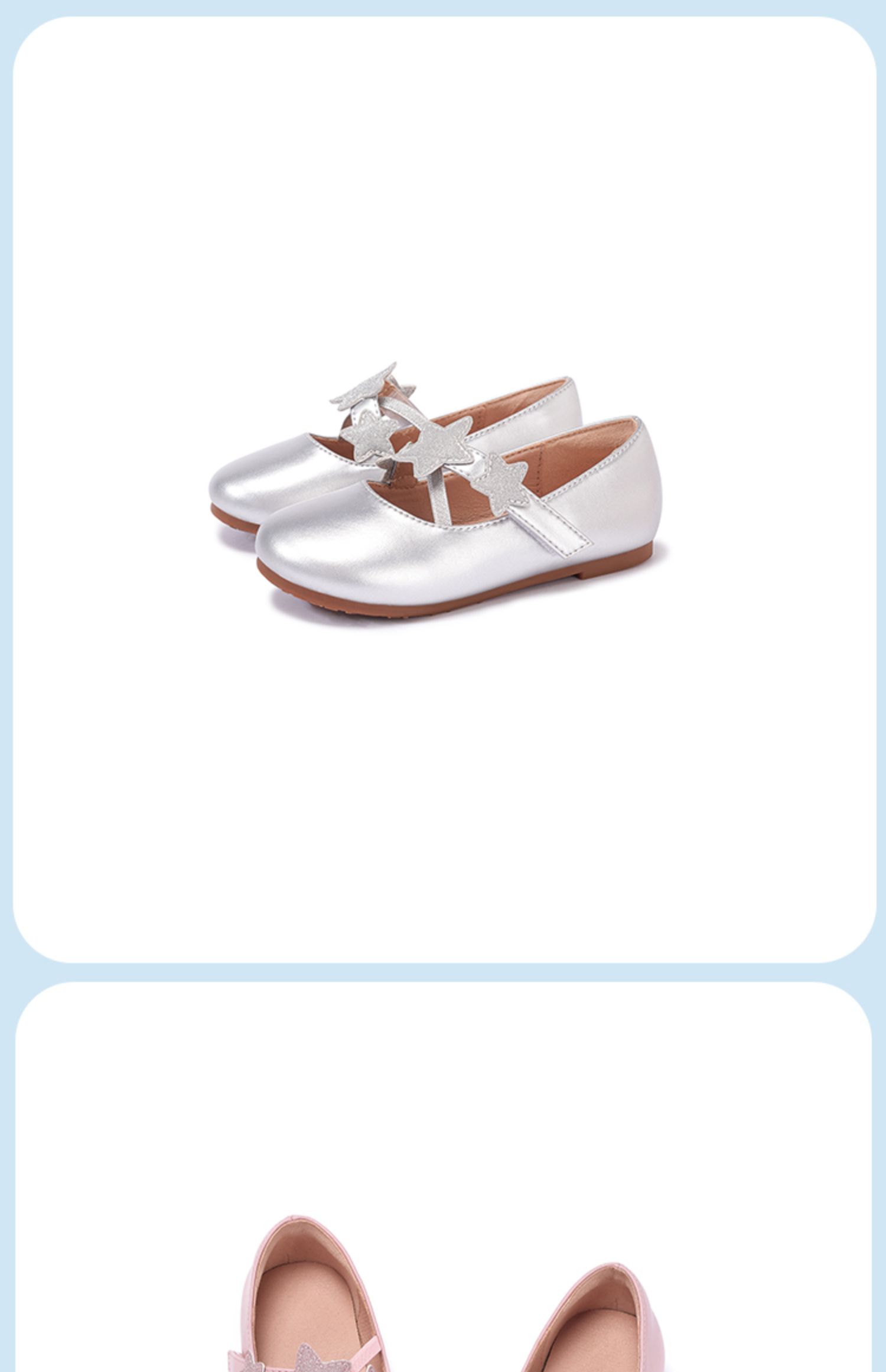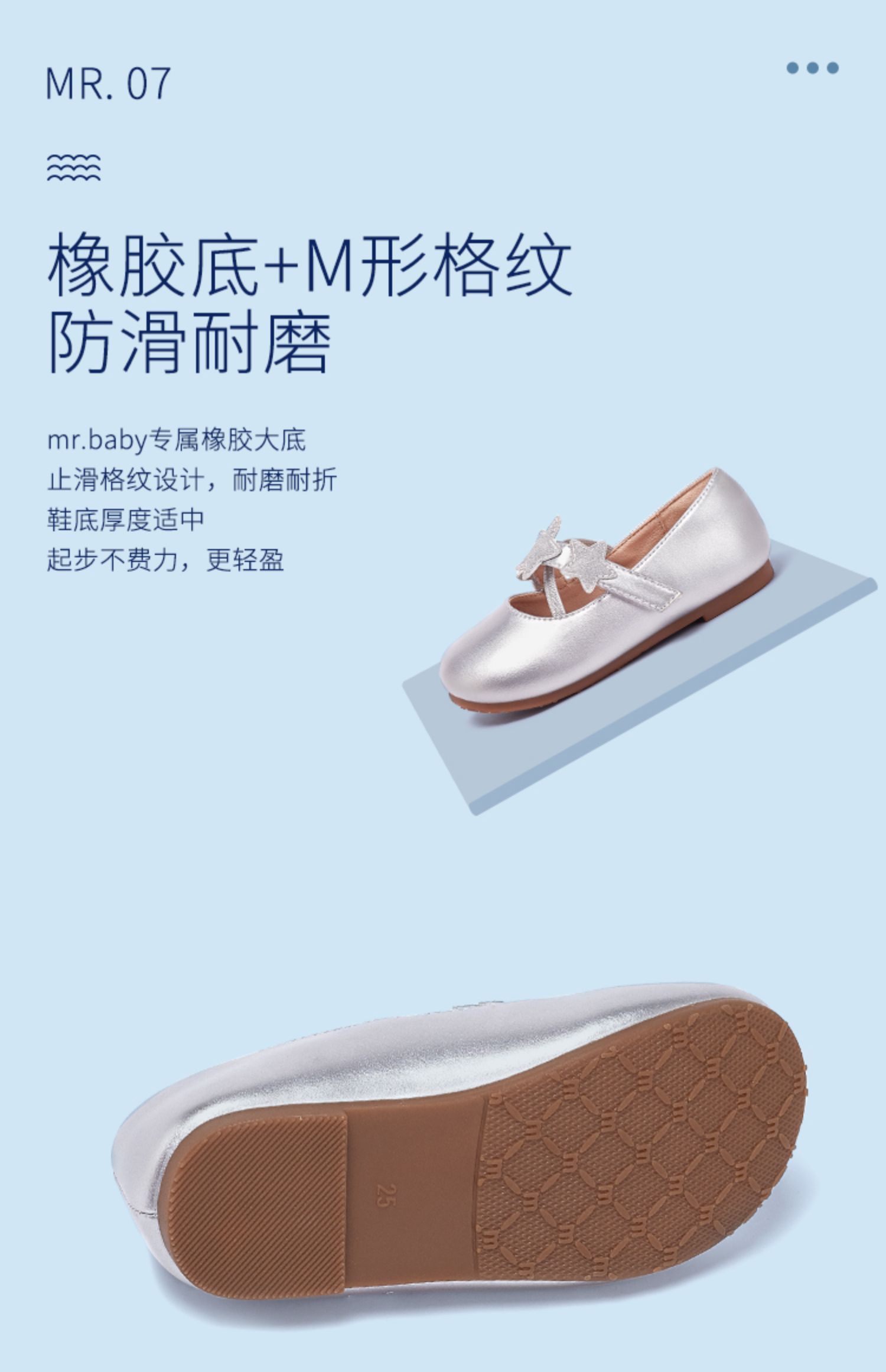 mrbaby女童皮鞋 2021春秋新款纯色星星魔术贴演出鞋 软底小公主鞋