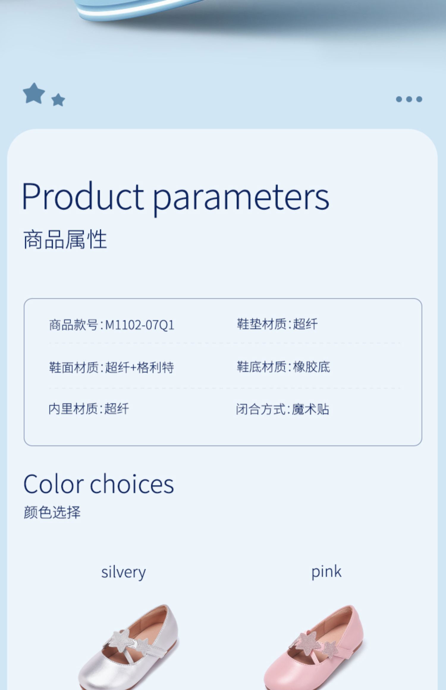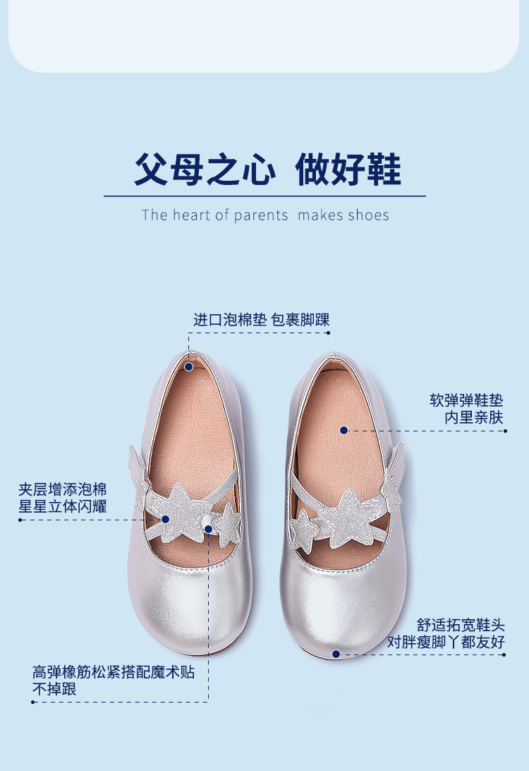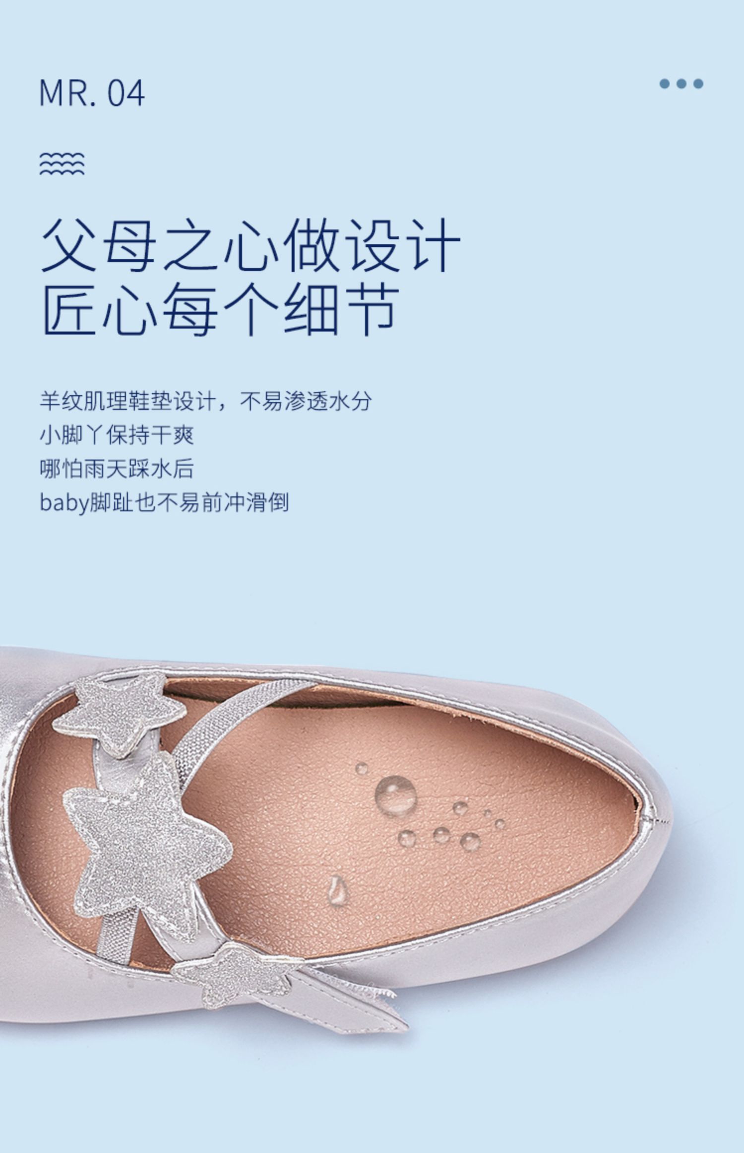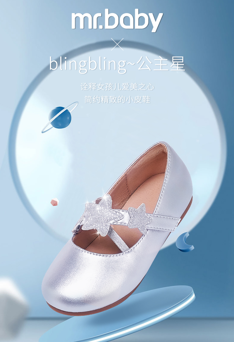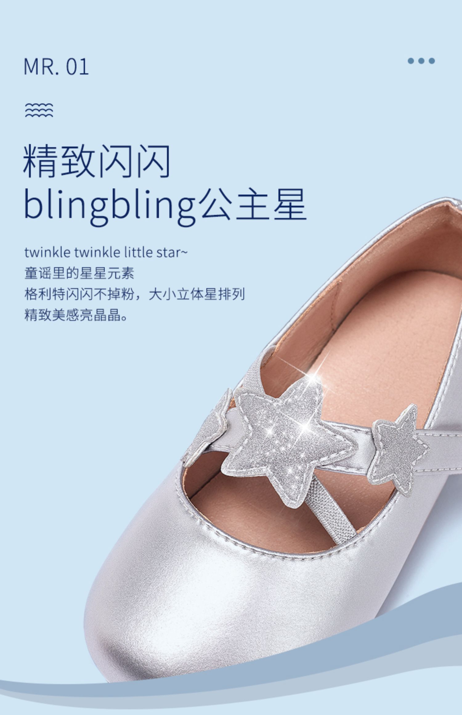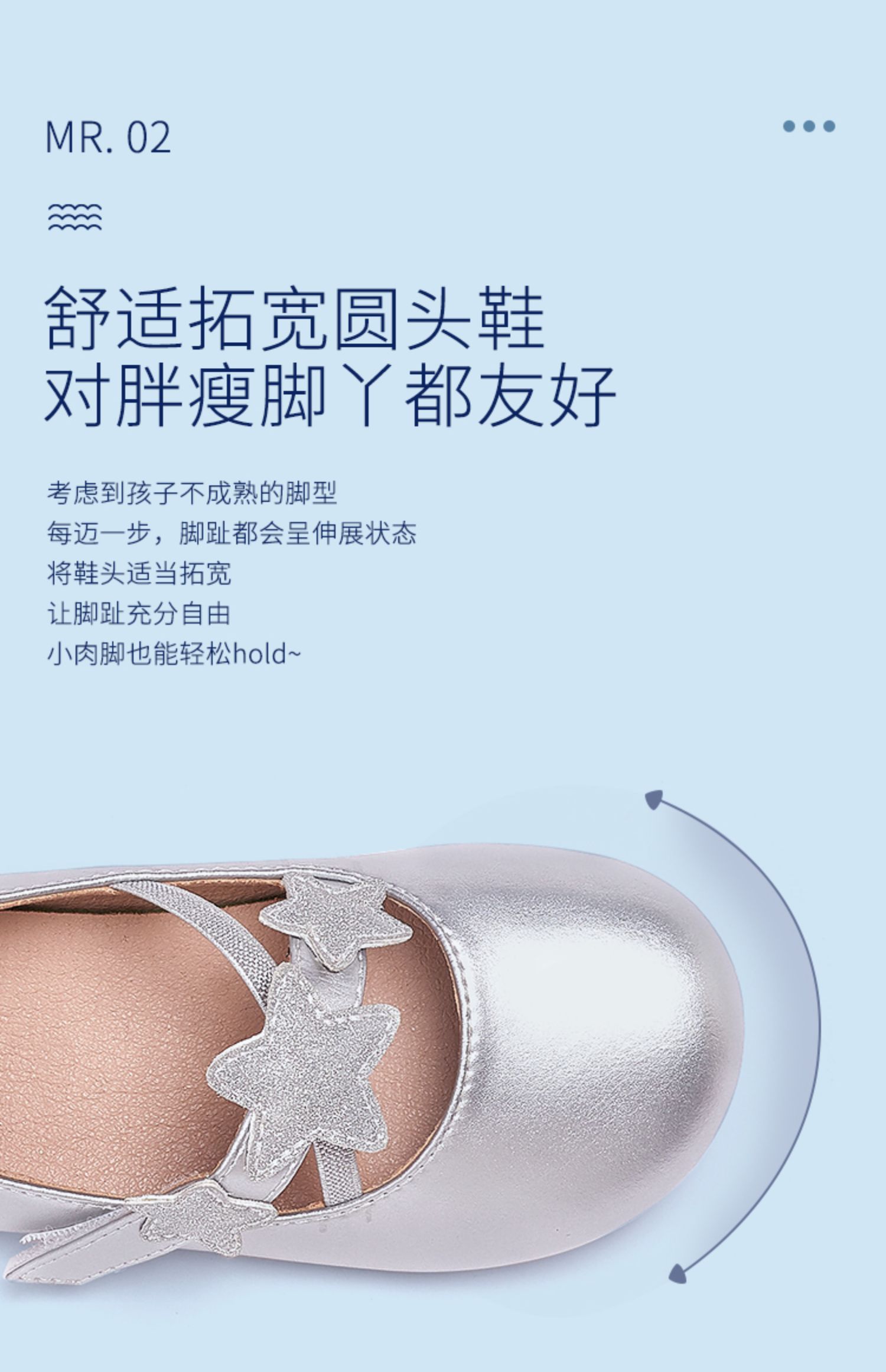 mrbaby女童皮鞋 2021春秋新款纯色星星魔术贴演出鞋 软底小公主鞋